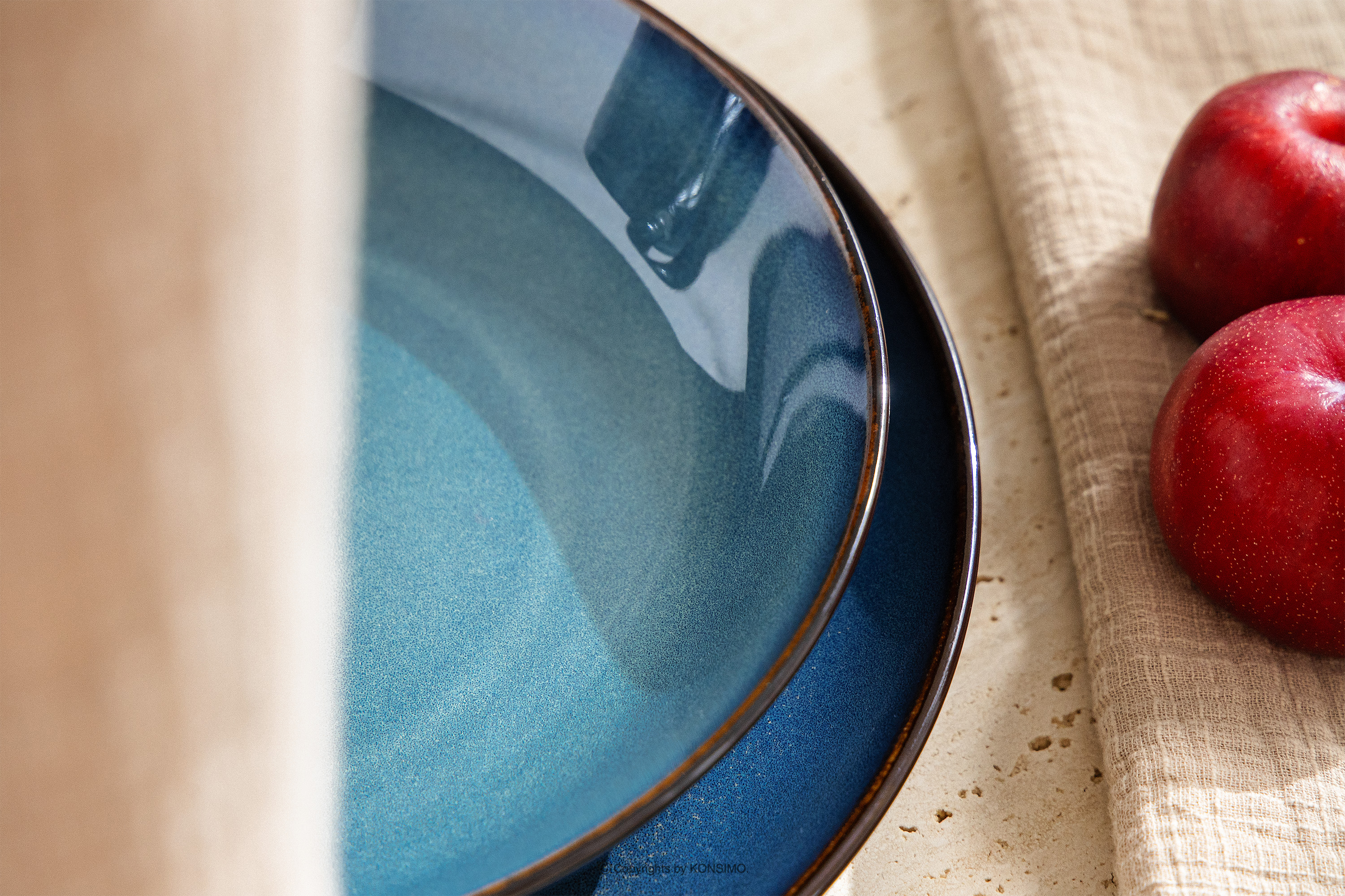 Tafelservice für 6 Personen (25 tlg.) reaktive Glasur blau/schwarz matt eignen sich sowohl für den Alltag als auch für festliche Dinner und Familienfeiern. Die charakteristischen Farbübergänge, die zarten Lichtreflexe und die Tiefe der Schattierungen verleihen ihnen einen einzigartigen Charakter. Reaktives Glas ist ein Material, das bei hohen Temperaturen einzigartige Farbeffekte erzeugt.
