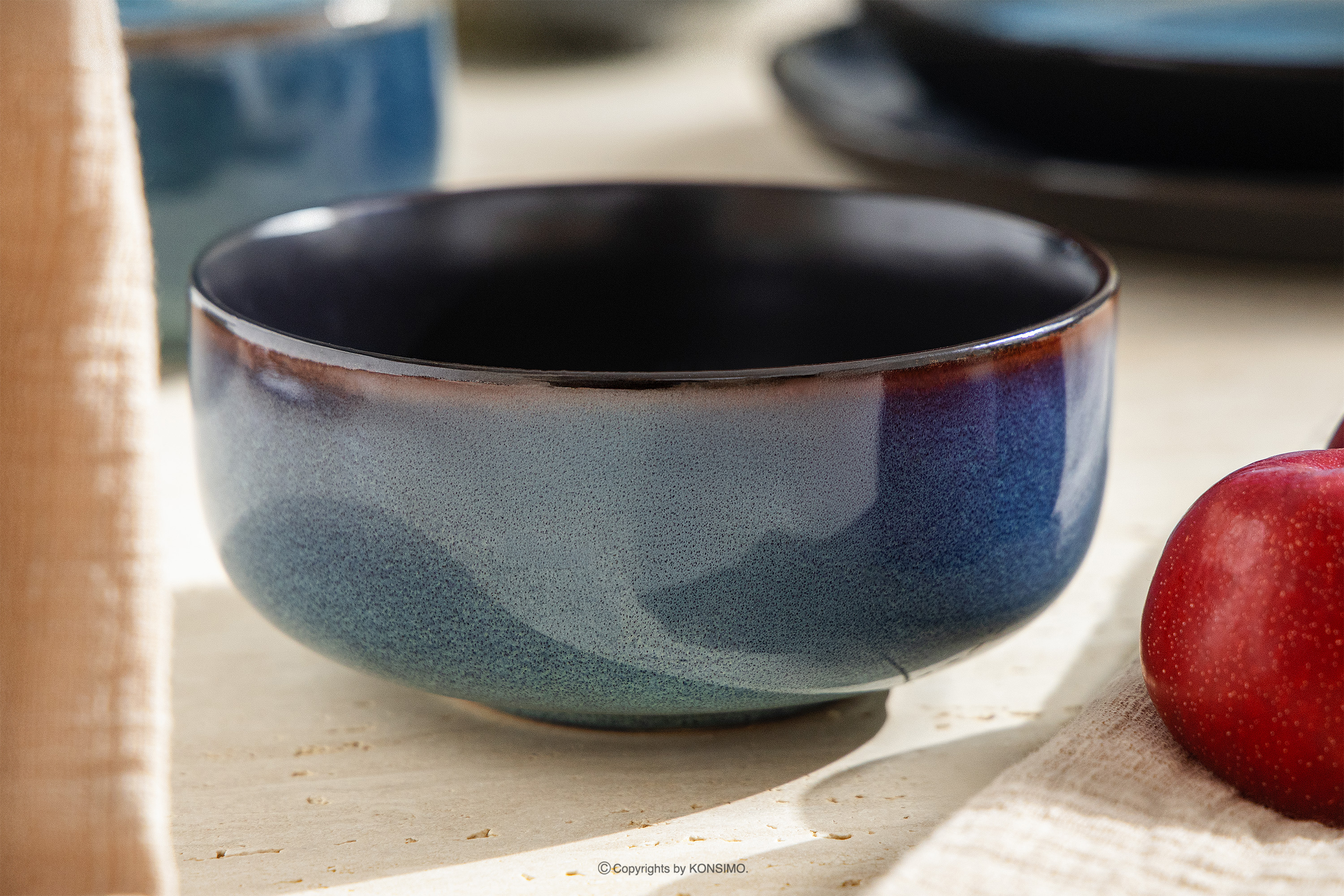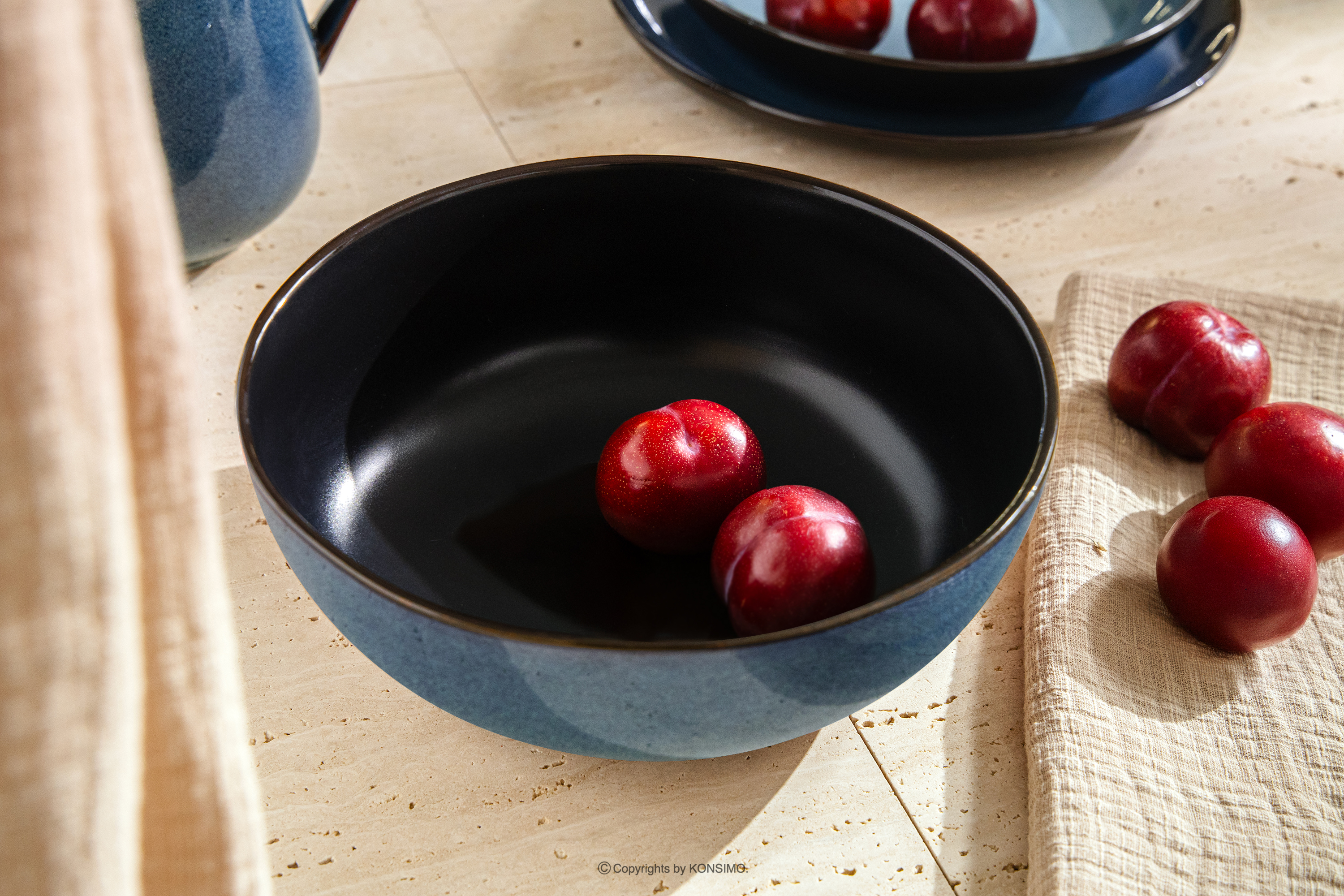 BALI Tafelservice für 6 Personen (25 tlg.) reaktive Glasur blau/schwarz matt