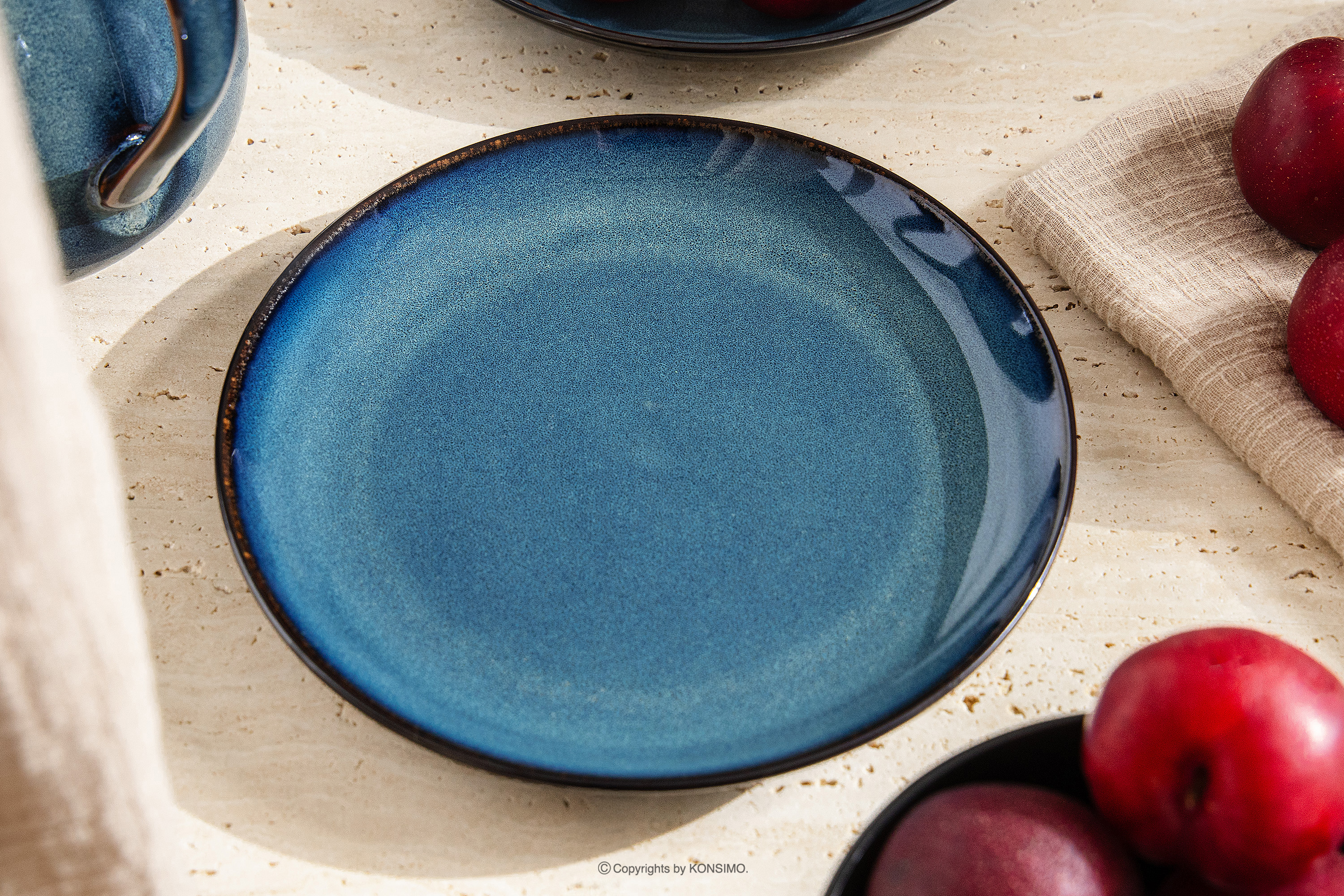 BALI Espresso-Kaffee-Set 6 Personen (18 tlg.) Reaktivglasur blau/schwarz matt