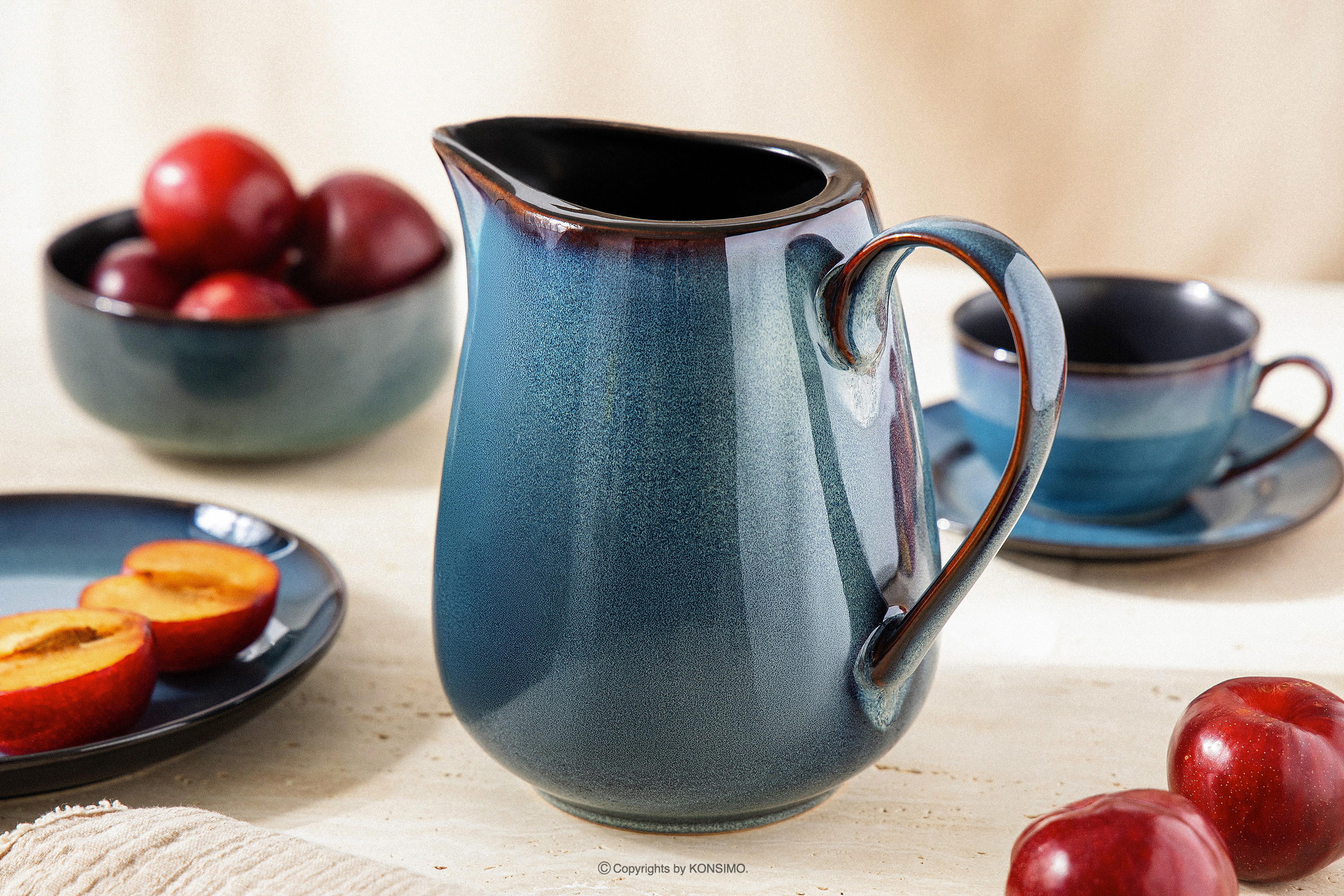 BALI Teeservice 6 Personen (13 tlg.) Reaktivglasur blau/schwarz matt