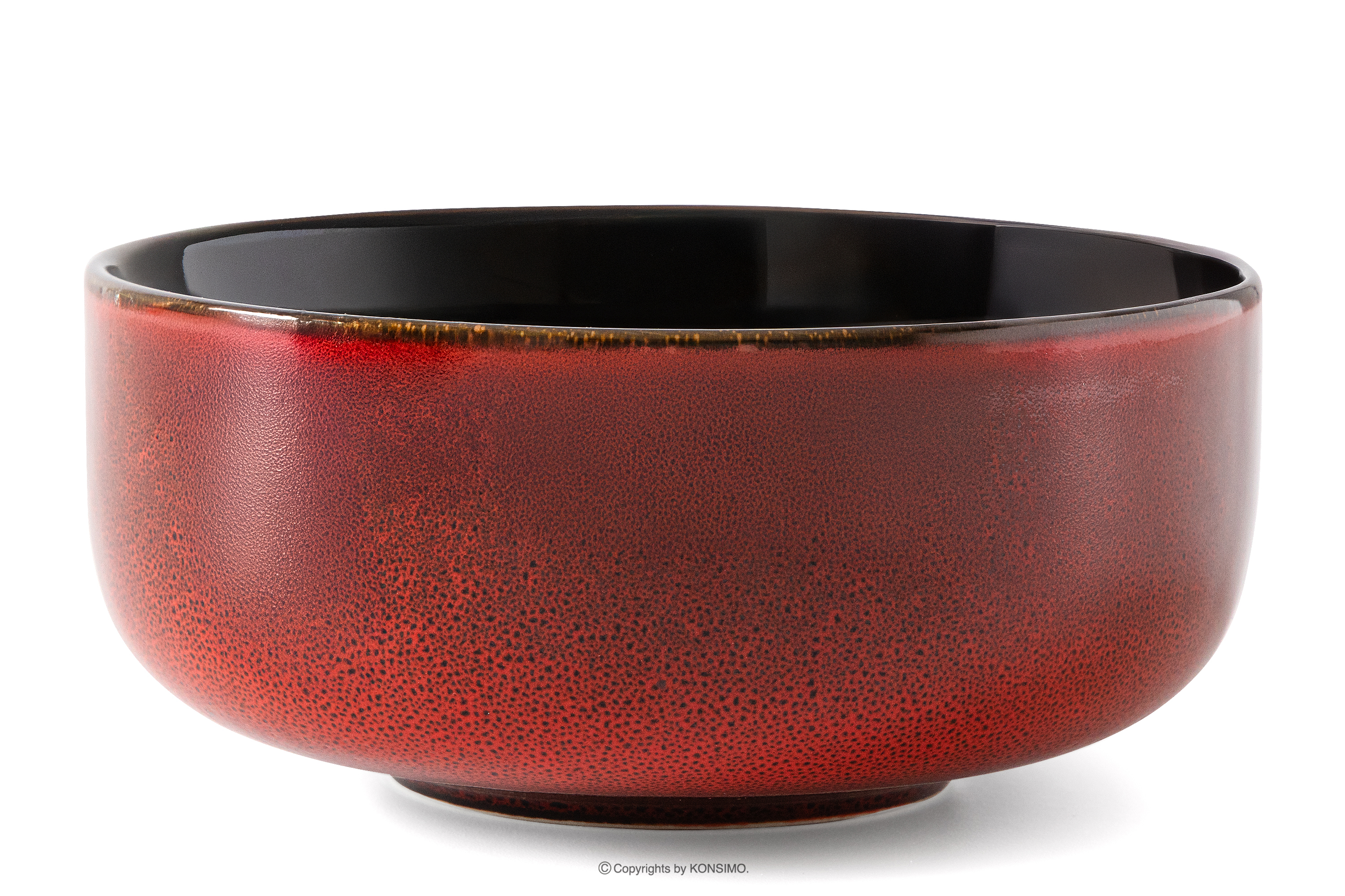 Schale Keramik / reaktive Glasur rot/schwarz glänzend 6 tlg. eignen sich sowohl für den Alltag als auch für festliche Dinner und Familienfeiern. Die charakteristischen Farbübergänge, die zarten Lichtreflexe und die Tiefe der Schattierungen verleihen ihnen einen einzigartigen Charakter. Reaktives Glas ist ein Material, das bei hohen Temperaturen einzigartige Farbeffekte erzeugt. Jedes Stück hat ein einzigartiges Aussehen - kein Geschirr ist identisch.