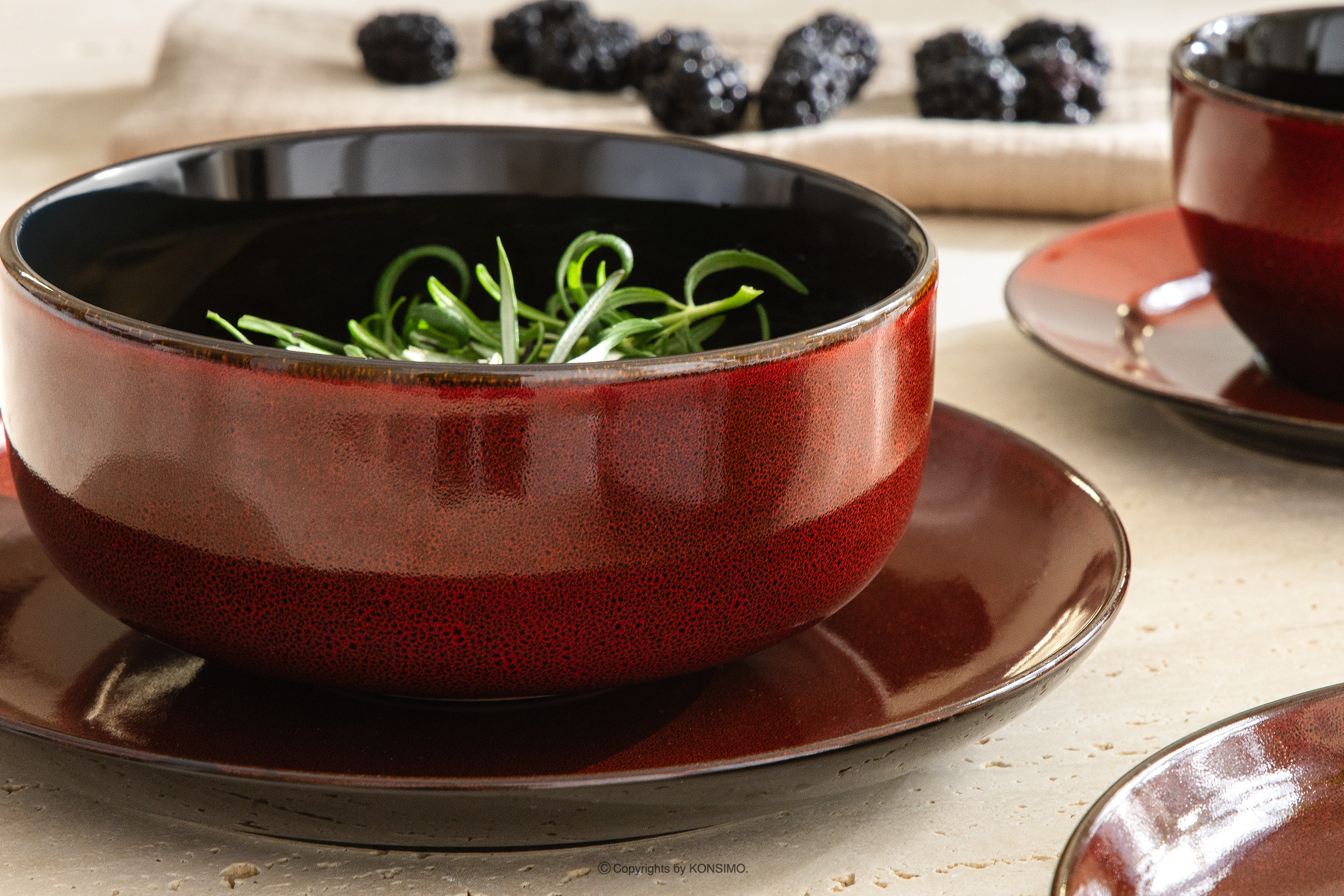 GAMBIA Schale Keramik / reaktive Glasur rot/schwarz glänzend 6 tlg.