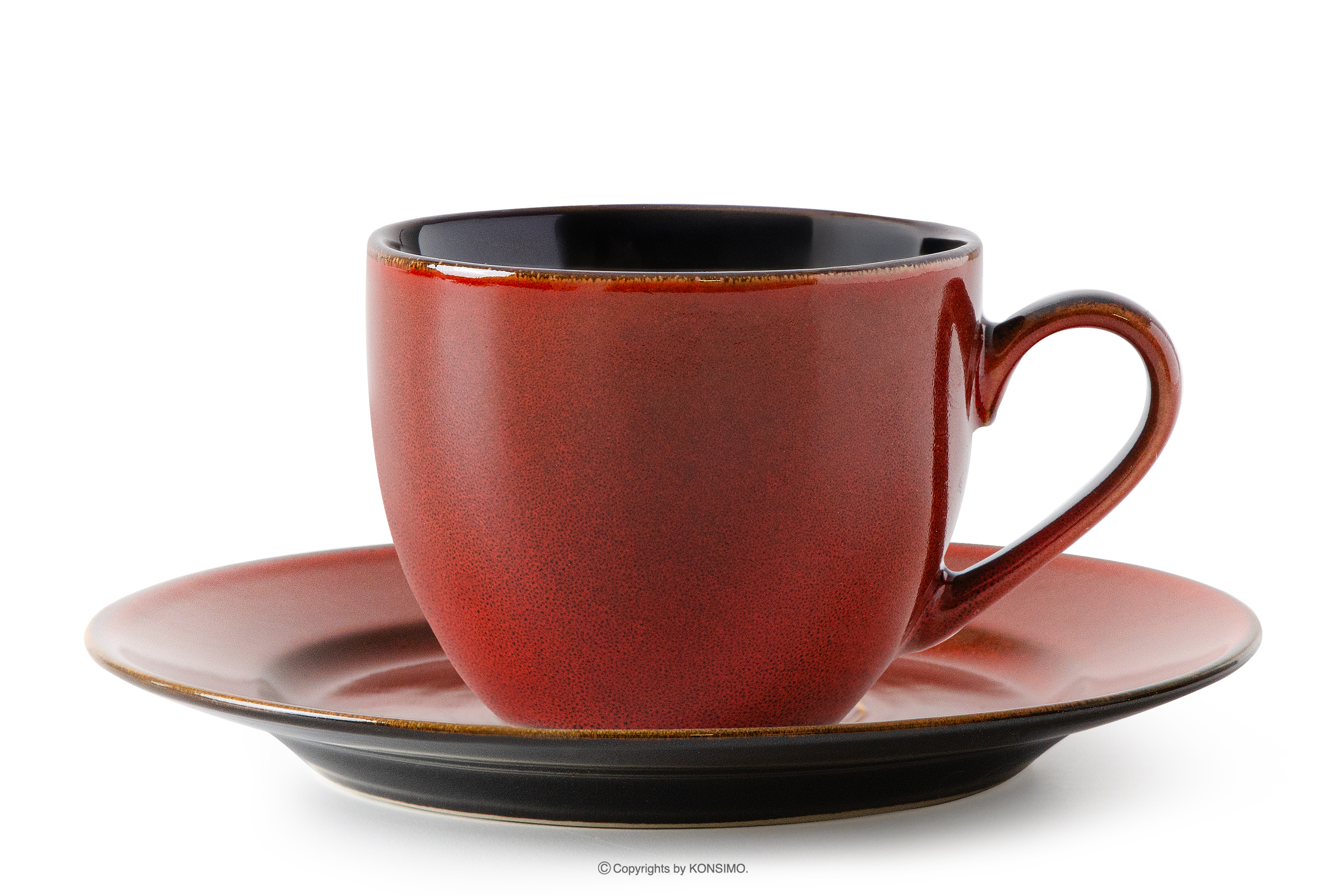 GAMBIA Espresso-Kaffee-Set Keramik / reaktive Glasur rot/schwarz glänzend 6-Personen (18 tlg.)