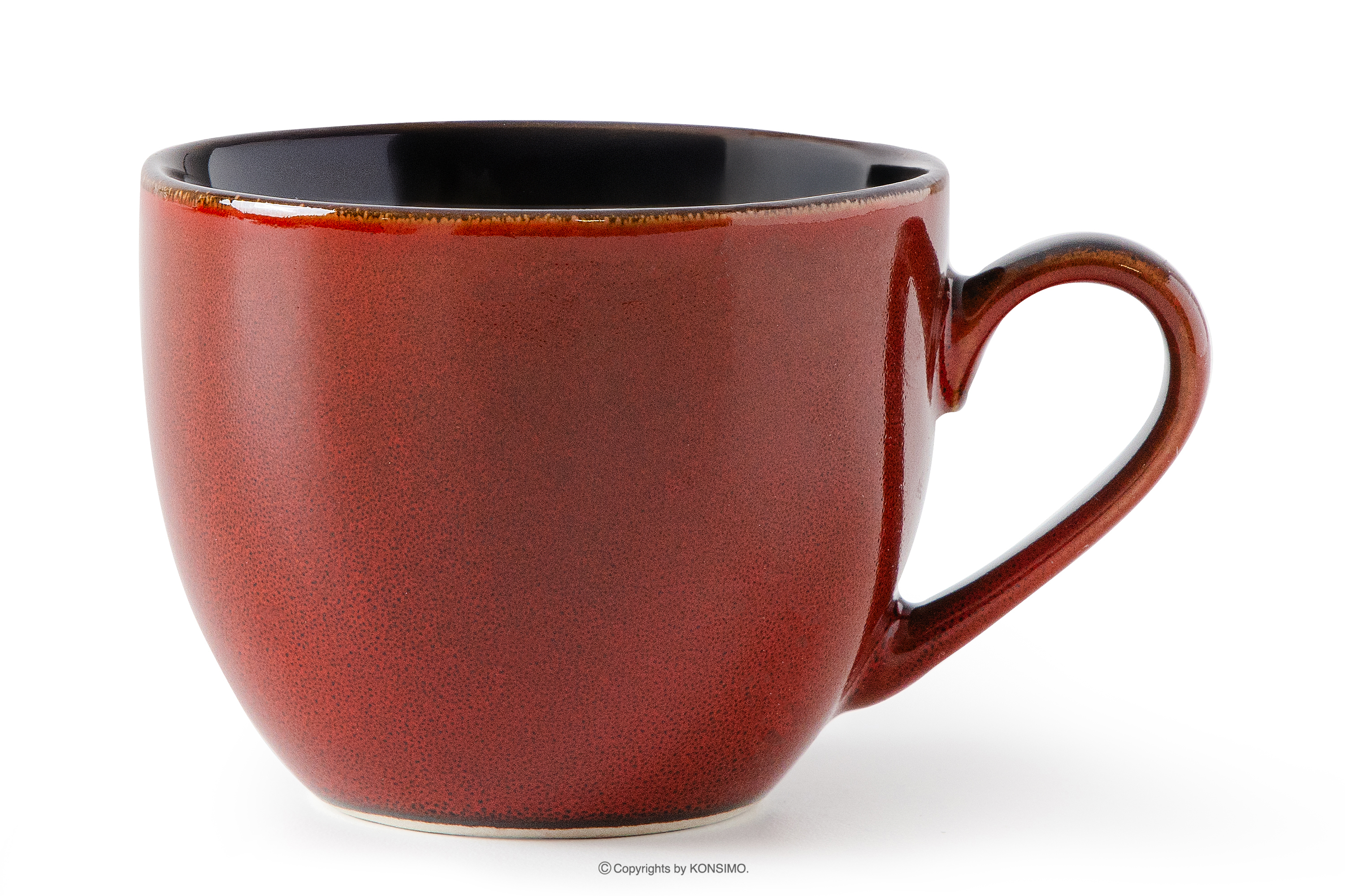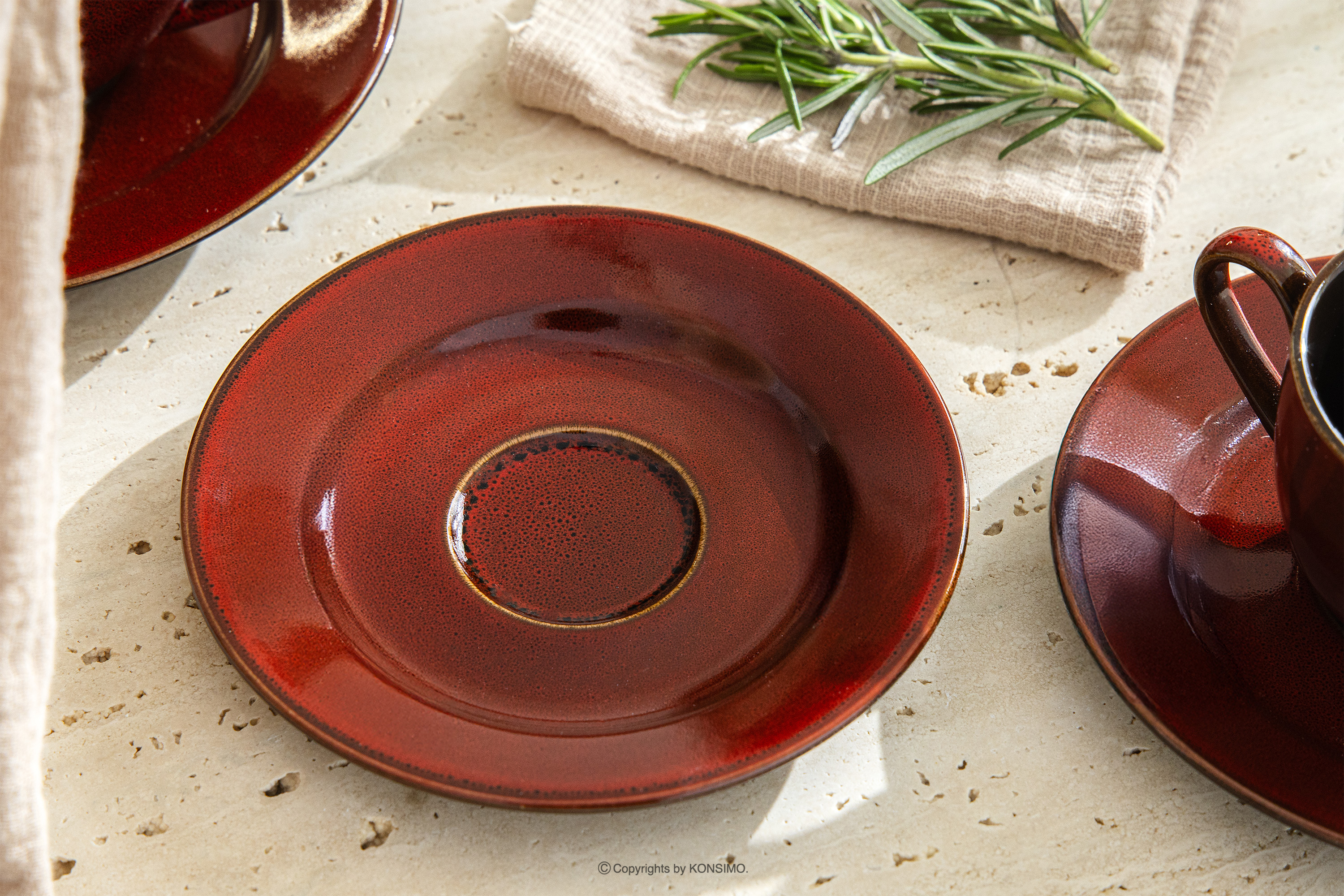 Espresso-Kaffee-Set Keramik / reaktive Glasur rot/schwarz glänzend 6-Personen (18 tlg.) eignen sich sowohl für den Alltag als auch für festliche Dinner und Familienfeiern. Die charakteristischen Farbübergänge, die zarten Lichtreflexe und die Tiefe der Schattierungen verleihen ihnen einen einzigartigen Charakter. Reaktives Glas ist ein Material, das bei hohen Temperaturen einzigartige Farbeffekte erzeugt.
