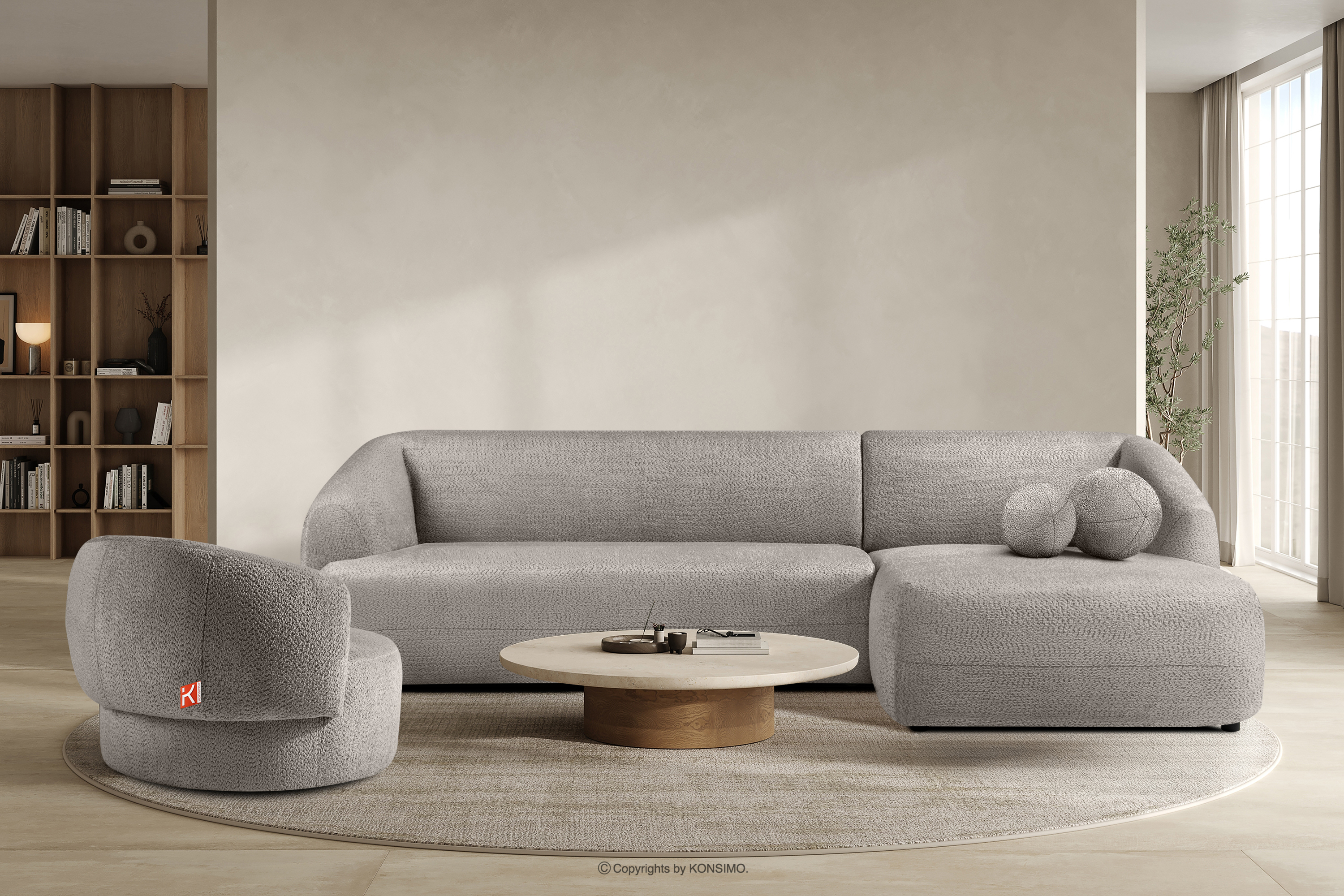 VIRA Ecksofa für das Wohnzimmer Chenille-Stoff rechts kühles Braun