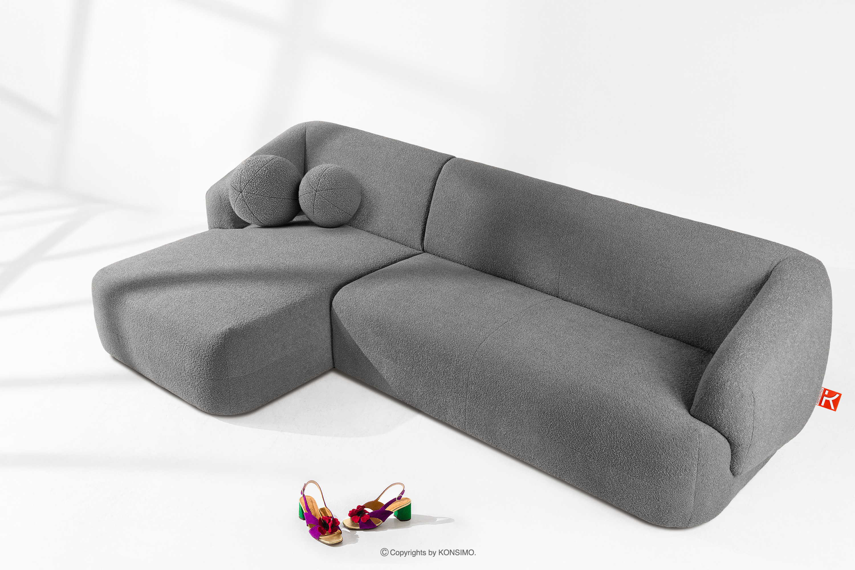 für das Produkt Ecksofa Japandi Bouclé-Stoff links grau