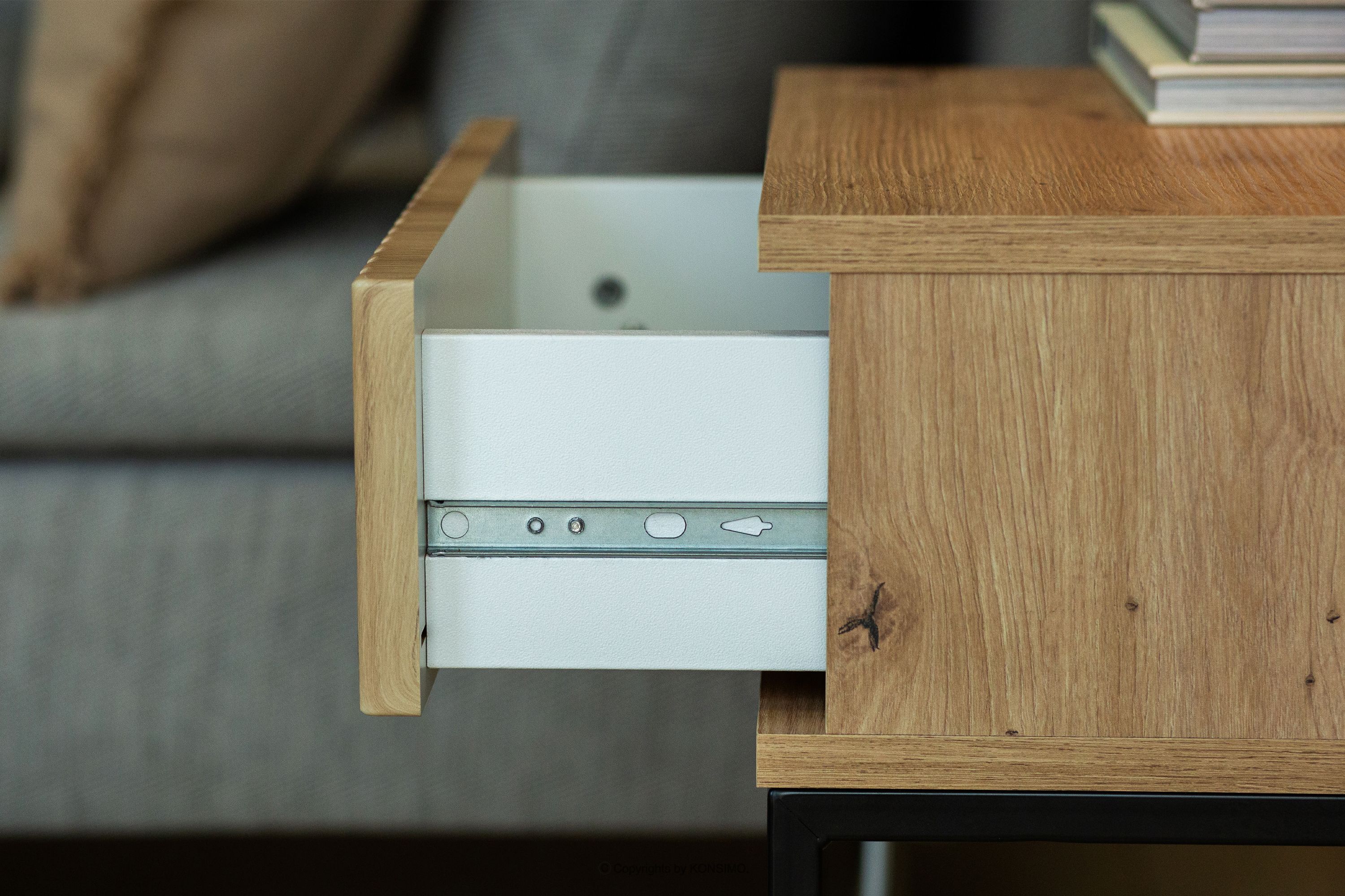 Esstische mit Schublade aus moderner Eiche artisan sind eine Kombination aus Funktionalität, minimalistischem Design und höchster Verarbeitungsqualität. Sie fügen sich perfekt in die aktuellen Einrichtungstrends ein und bieten praktische Lösungen in eleganter Form. Dank der Verwendung von langlebigen Materialien werden diese Tische auch den Erwartungen der anspruchsvollsten Benutzer gerecht. Der minimalistische Look geht Hand in Hand mit der Funktionalität - die Tische sind mit einer geräumigen Schublade ausgestattet, in der alle notwendigen Kleinigkeiten wie Bücher, Brillen oder ein Handy-Ladegerät Platz finden.