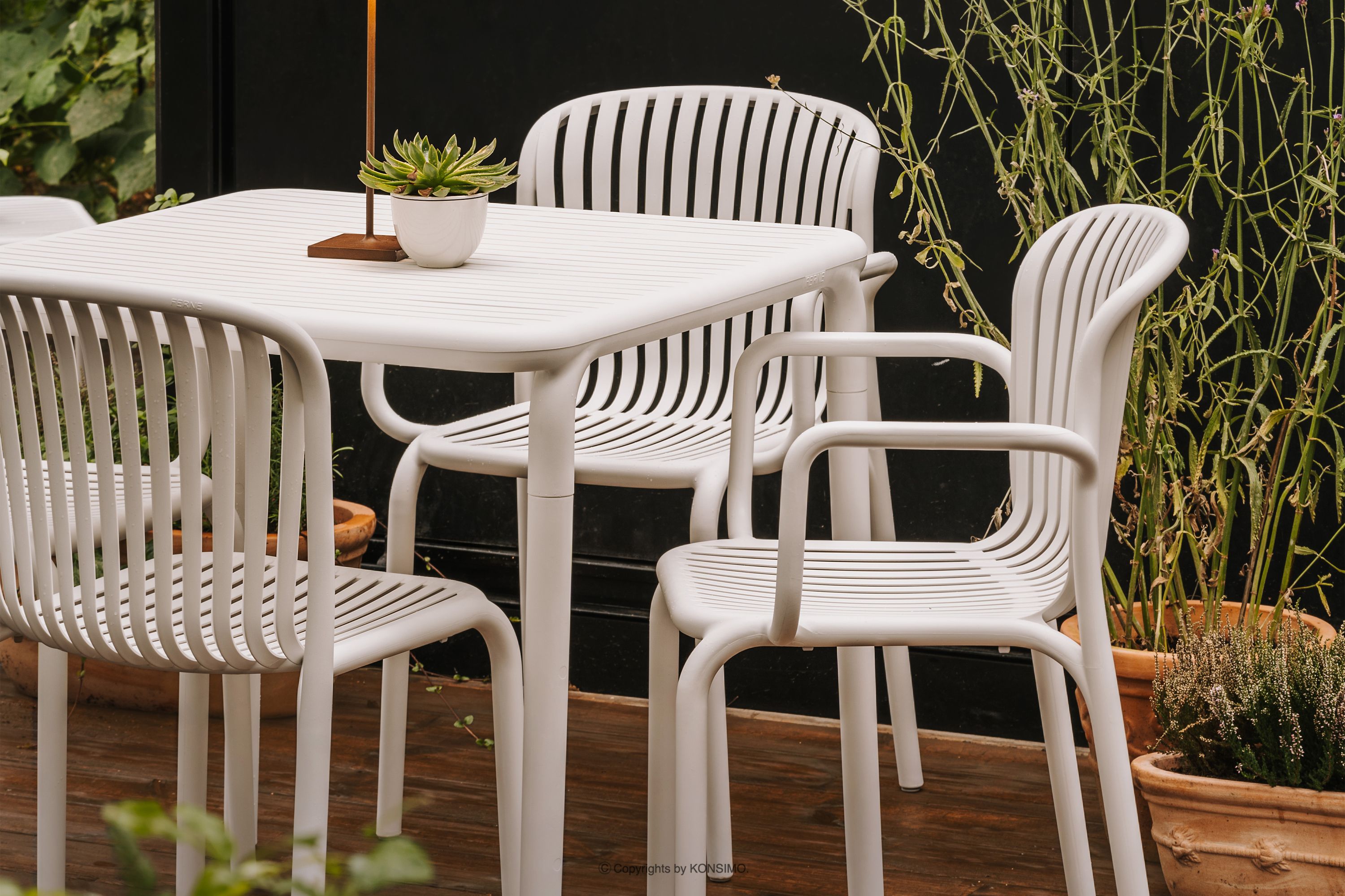 Gartentisch Polypropylen mit Glasfaser weiß es verbindet minimalistische Ästhetik mit einzigartiger Funktionalität. Hergestellt aus hochwertigem Kunststoff – einer speziellen Polypropylenmischung mit Glasfaserverstärkung – garantiert es unvergleichliche Langlebigkeit und Widerstandsfähigkeit gegen wechselnde Witterungsbedingungen. Die innovative Konstruktion jedes Elements verhindert die Ansammlung von Regenwasser, sodass die Möbel auch nach starken Regenfällen schnell trocknen.