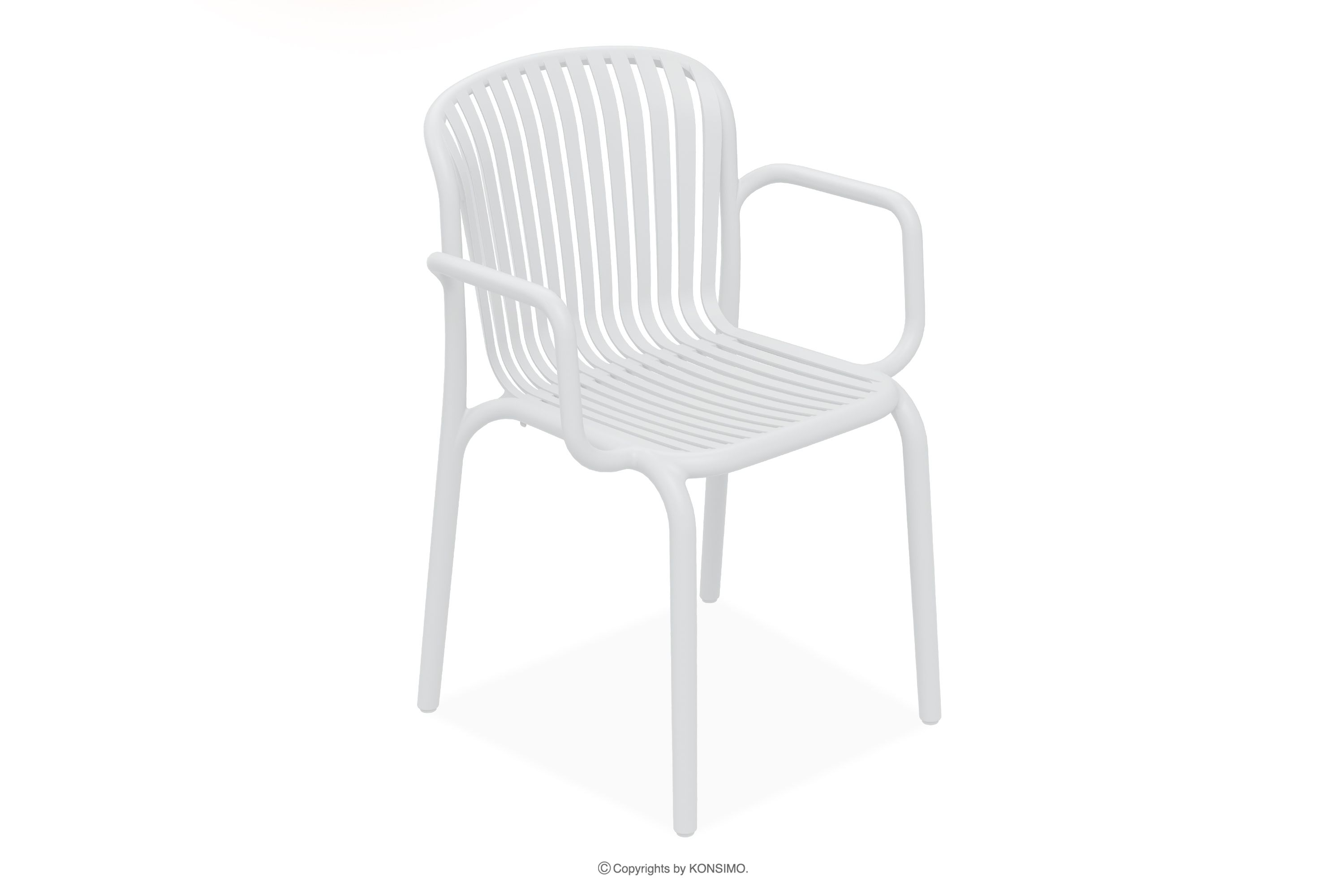 Gartenstuhl mit Armlehnen Polypropylen mit Glasfaser 4 tlg. weiß es verbindet minimalistische Ästhetik mit einzigartiger Funktionalität. Hergestellt aus hochwertigem Kunststoff – einer speziellen Polypropylenmischung mit Glasfaserverstärkung – garantiert es unvergleichliche Langlebigkeit und Widerstandsfähigkeit gegen wechselnde Witterungsbedingungen. Die innovative Konstruktion jedes Elements verhindert die Ansammlung von Regenwasser, sodass die Möbel auch nach starken Regenfällen schnell trocknen.