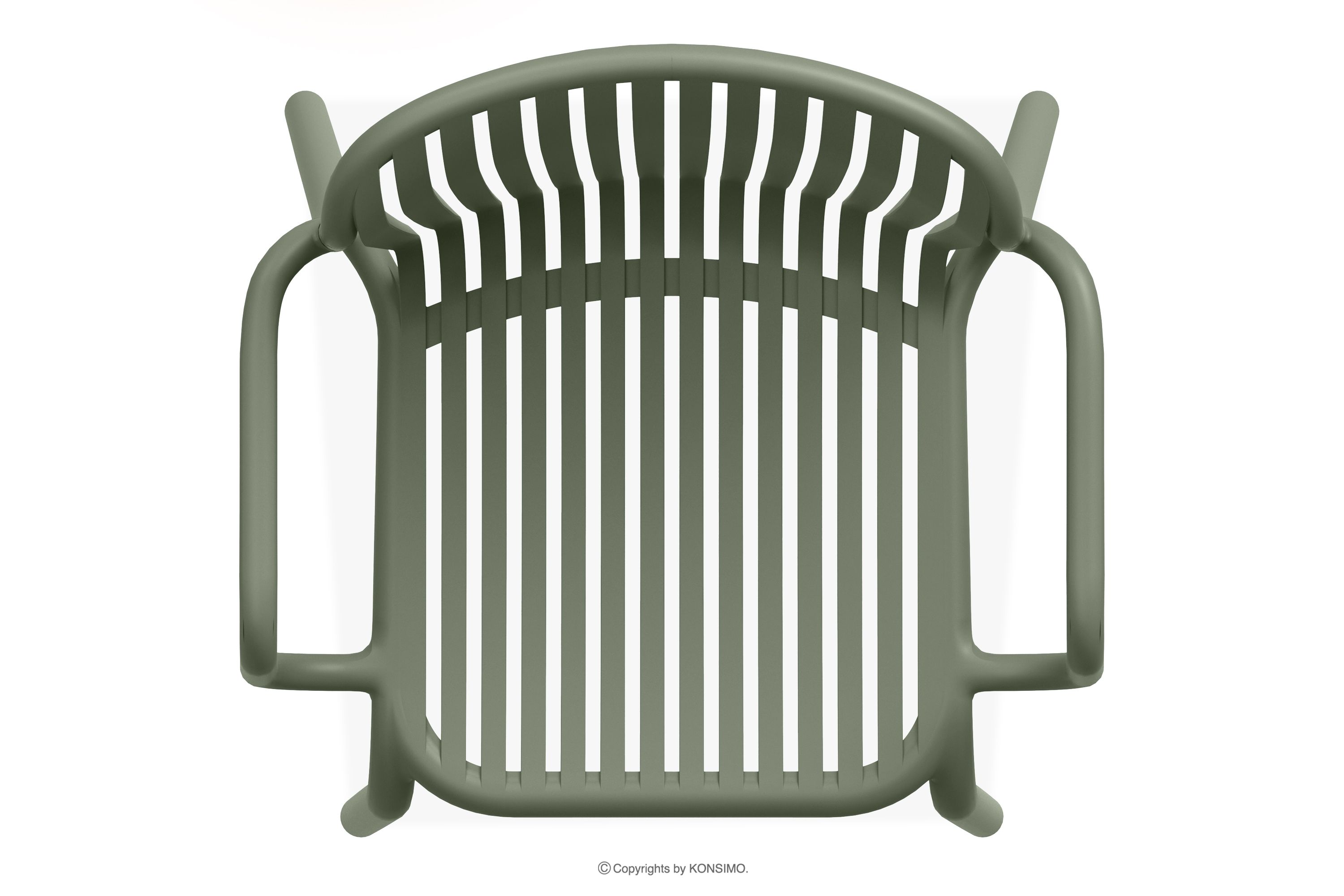 Set aus Stühlen und Esstisch für die Terrasse aus Polypropylen mit Glasfaser olivgrün 4 Personen es verbindet minimalistische Ästhetik mit einzigartiger Funktionalität. Hergestellt aus hochwertigem Kunststoff – einer speziellen Polypropylenmischung mit Glasfaserverstärkung – garantiert es unvergleichliche Langlebigkeit und Widerstandsfähigkeit gegen wechselnde Witterungsbedingungen. Die innovative Konstruktion jedes Elements verhindert die Ansammlung von Regenwasser, sodass die Möbel auch nach starken Regenfällen schnell trocknen.