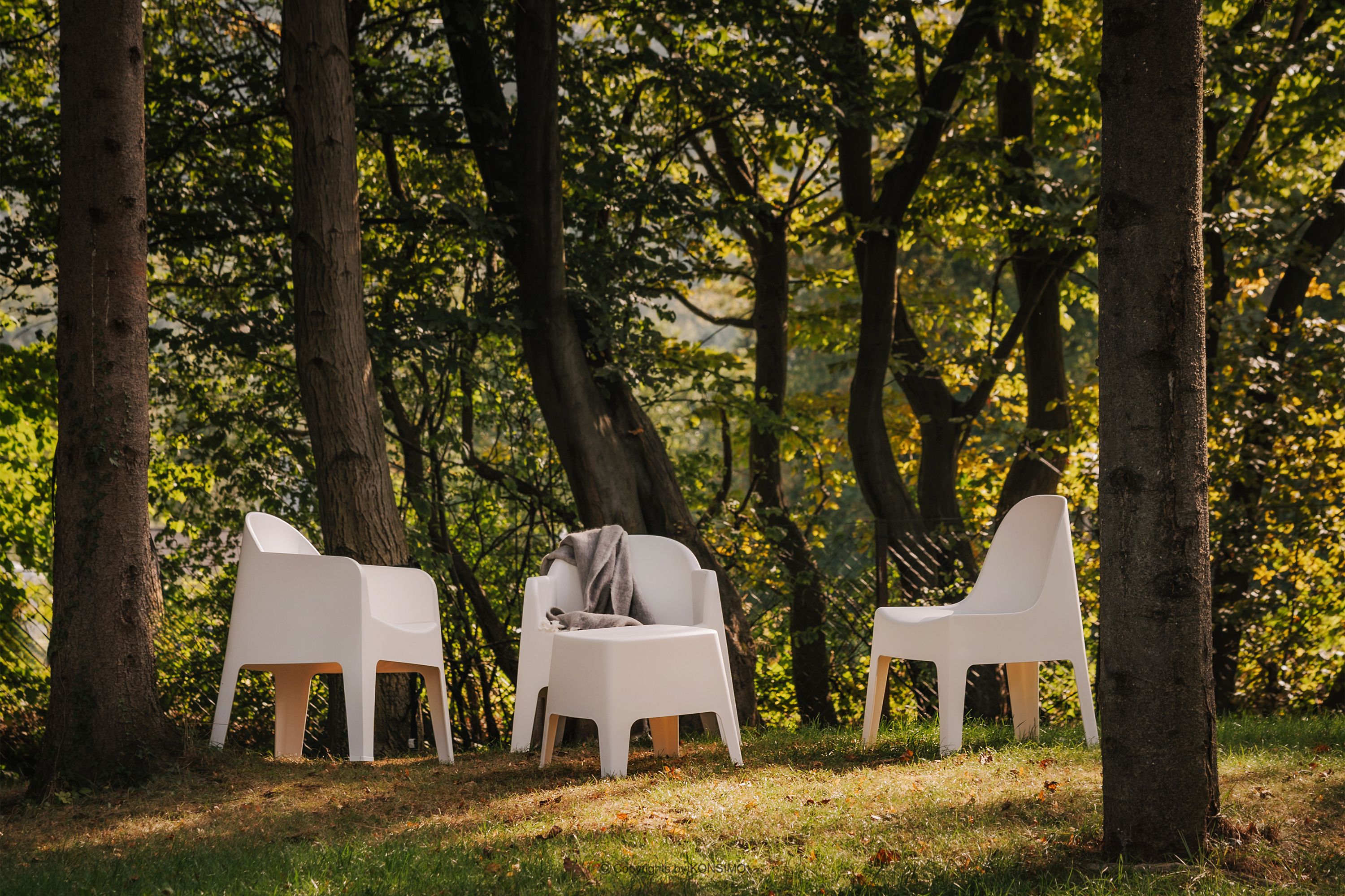 Moderne Gartenmöbel Polypropylen 2 Personen weiß ist ein umfassendes Angebot an modernen Gartenmöbeln, das die Art und Weise, wie wir den Außenbereich wahrnehmen, revolutioniert. Es besteht aus hochwertigem Polypropylen und verbindet modernes Design mit außergewöhnlicher Strapazierfähigkeit und Funktionalität. Einer der wichtigsten Vorteile ist die einfache Pflege. Das Gestell aus hochwertigem Kunststoff kann mit einem feuchten Tuch gereinigt werden, ohne dass spezielle Reinigungsmittel erforderlich sind.