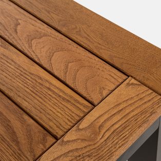 Das Hauptmerkmal der Kollektion ist ihre erstklassige Widerstandsfähigkeit gegen äußere Einflüsse. Die Möbel behalten ihre Stabilität und Ästhetik trotz schwankender Temperaturen, Feuchtigkeit oder intensiver Nutzung. Die Gestelle sind fest verschweißt, was eine komplizierte Montage überflüssig macht und die Haltbarkeit der Konstruktion erhöht. Das Ganze bildet eine stabile, sichere und solide Konstruktion, die sofort einsatzbereit ist. Für die Herstellung der Möbel wurde ausschließlich hochwertiges europäisches Massivholz aus Robinie verwendet – eine der härtesten und widerstandsfähigsten Holzarten, die im Außenmöbelbau verwendet werden. Dieses Holz übertrifft Eiche und Buche in seiner Härte und ist somit ideal für den langjährigen Einsatz im Außenbereich. Seine natürliche, edle Struktur verleiht den Möbeln einen einzigartigen Charakter und unterstreicht ihre Authentizität.