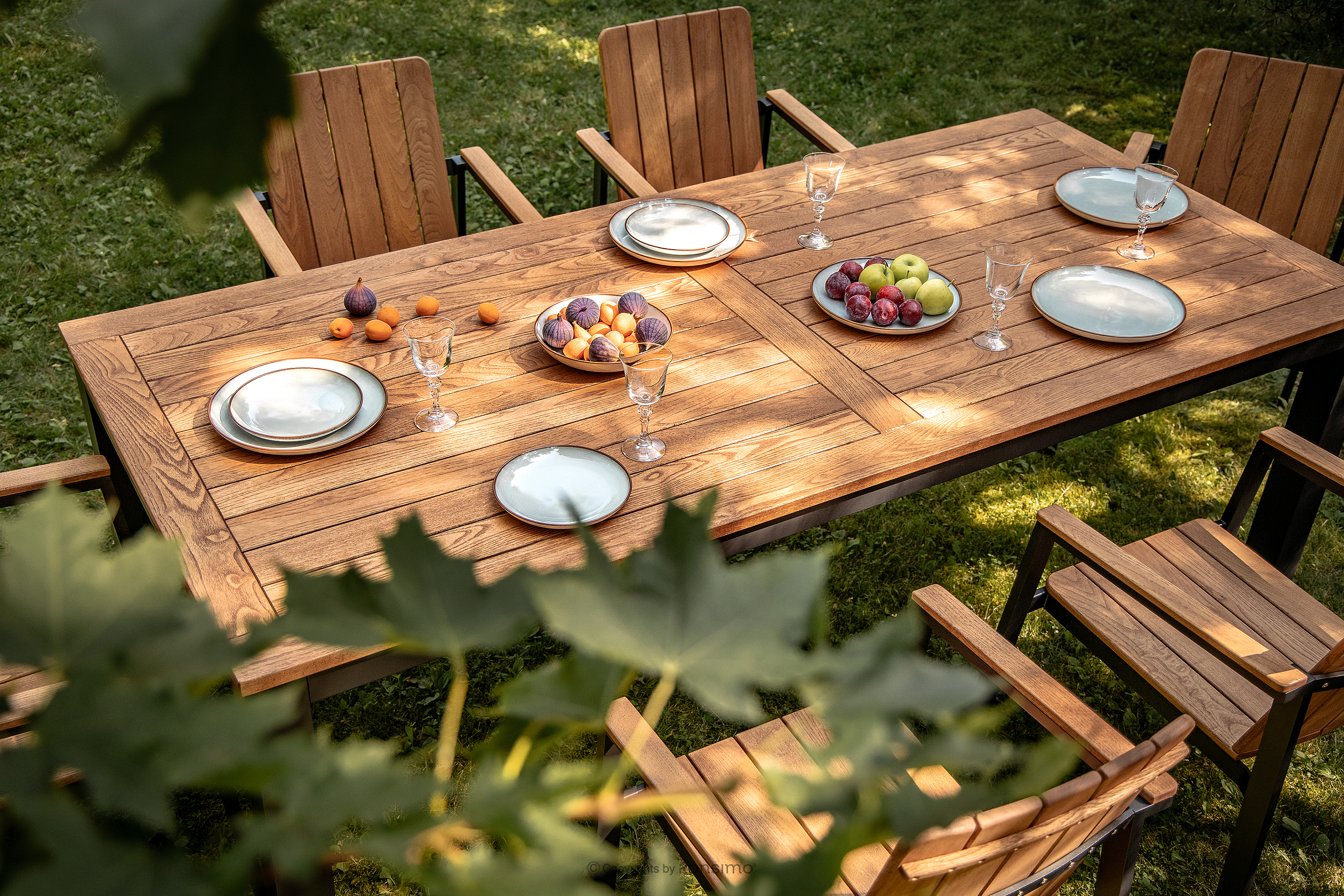 - Reinigung und Pflege: Um das ursprüngliche Aussehen der Möbel zu erhalten, empfehlen wir eine regelmäßige Pflege (1-3 Mal pro Saison, je nach Witterungsbedingungen) mit für Hartholz geeigneten Ölen für Außenmöbel