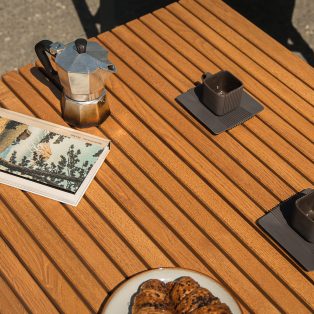 - Reinigung und Pflege: Um das ursprüngliche Aussehen der Möbel zu erhalten, empfehlen wir eine regelmäßige Pflege (1-3 Mal pro Saison, je nach Witterungsbedingungen) mit für Hartholz geeigneten Ölen für Außenmöbel