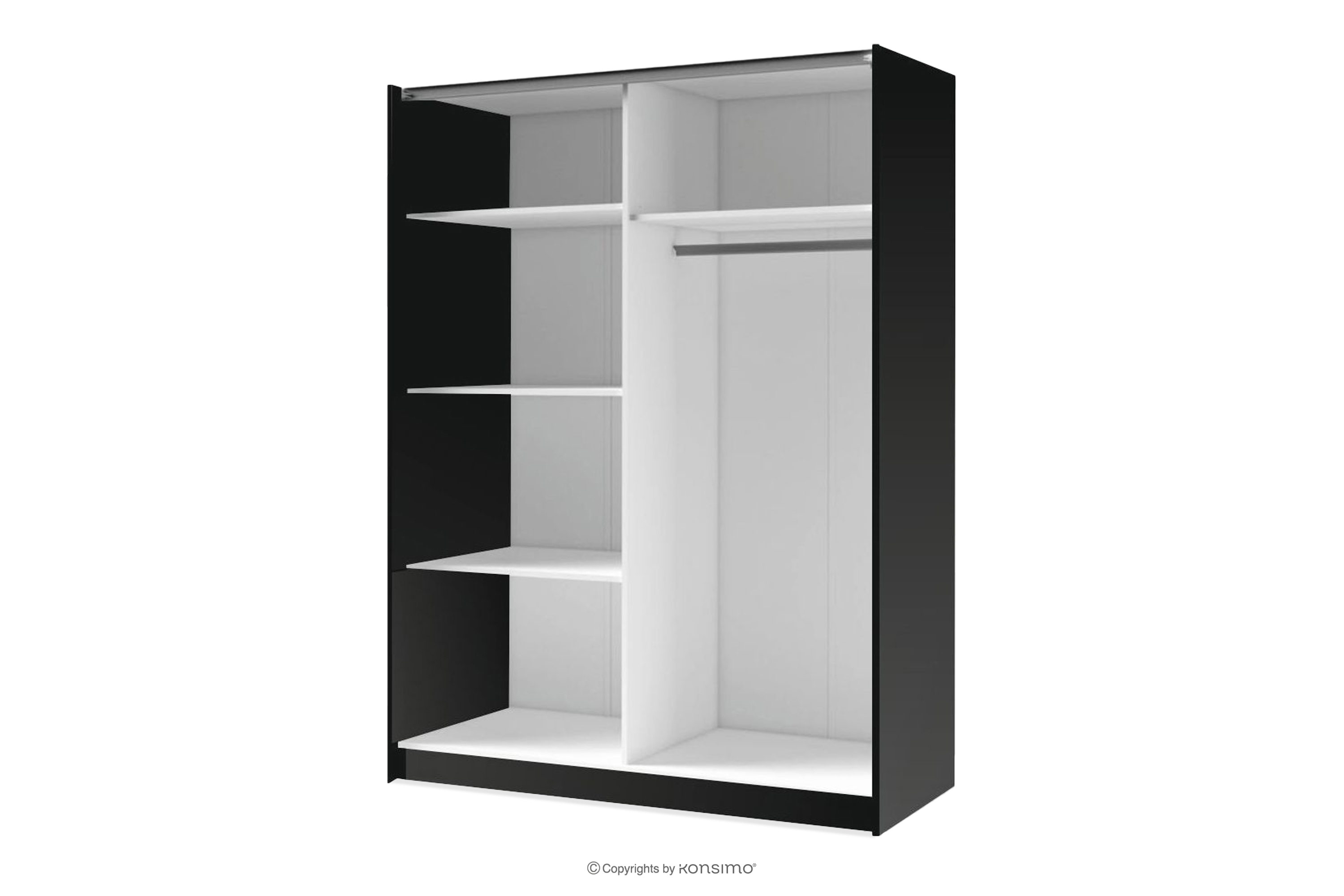 Schwebetürenschrank mit Lamellen und Spiegel schwarz/Eiche-Artisan ist eine Kombination aus Eleganz, Funktionalität und modernen technologischen Lösungen, die über Jahre hinweg für Komfort und ein ästhetisches Erscheinungsbild sorgen. Die Kleiderschränke sind mit einem oberen Schiebesystem ausgestattet, das vollständig in der Struktur verborgen ist, was die Ästhetik und den Bedienkomfort erhöht. Dank des Laufschienensystems gleiten die Türen sanft und machen die Schränke zur perfekten Lösung für Schlafzimmer, Wohnzimmer oder Flure.