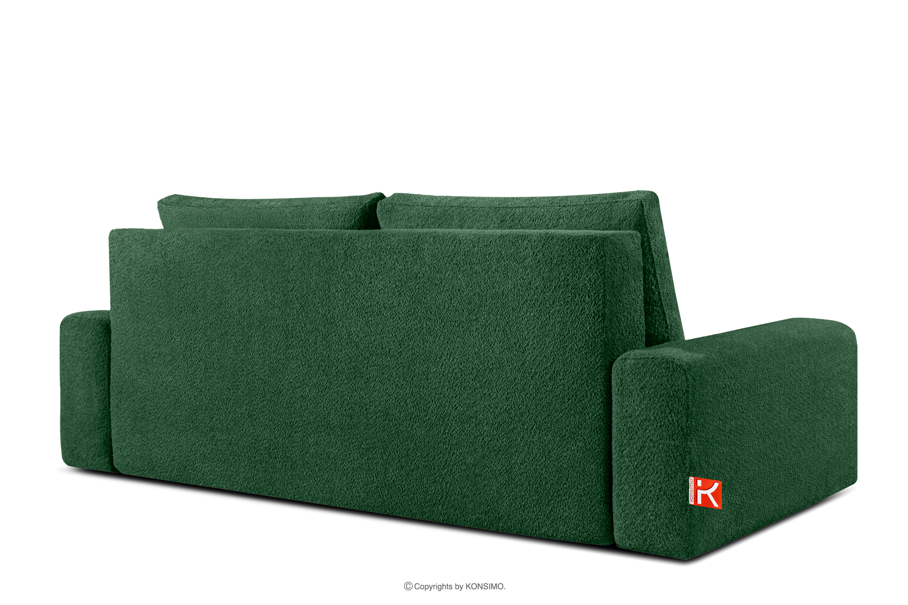 Dreisitzer-Sofa mit Kissen ausziehbar Bouclé-Stoff dunkelgrün ist der Inbegriff von modernem Komfort und Funktionalität, entworfen mit Blick auf eine zeitgemäße Innenausstattung und die Anforderungen des täglichen Gebrauchs. Das elegante, minimalistische Design harmoniert mit der durchdachten Konstruktion, die Ästhetik und Funktionalität vereint. Es ist mit einem Aufklappsystem vom Typ DL und einem Bettwäschebehälter ausgestattet und somit die perfekte Lösung für kleine Wohnungen oder Gästezimmer.