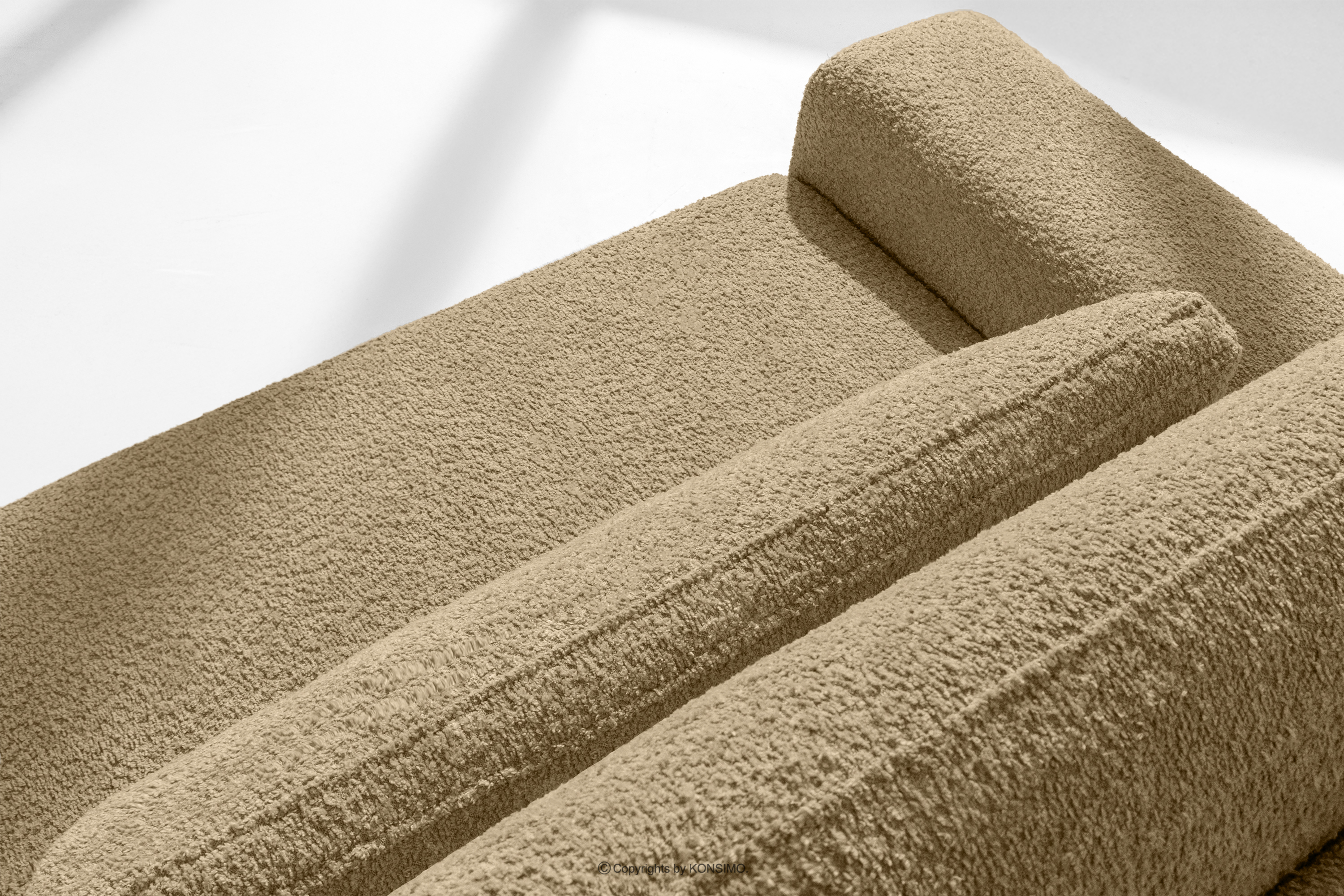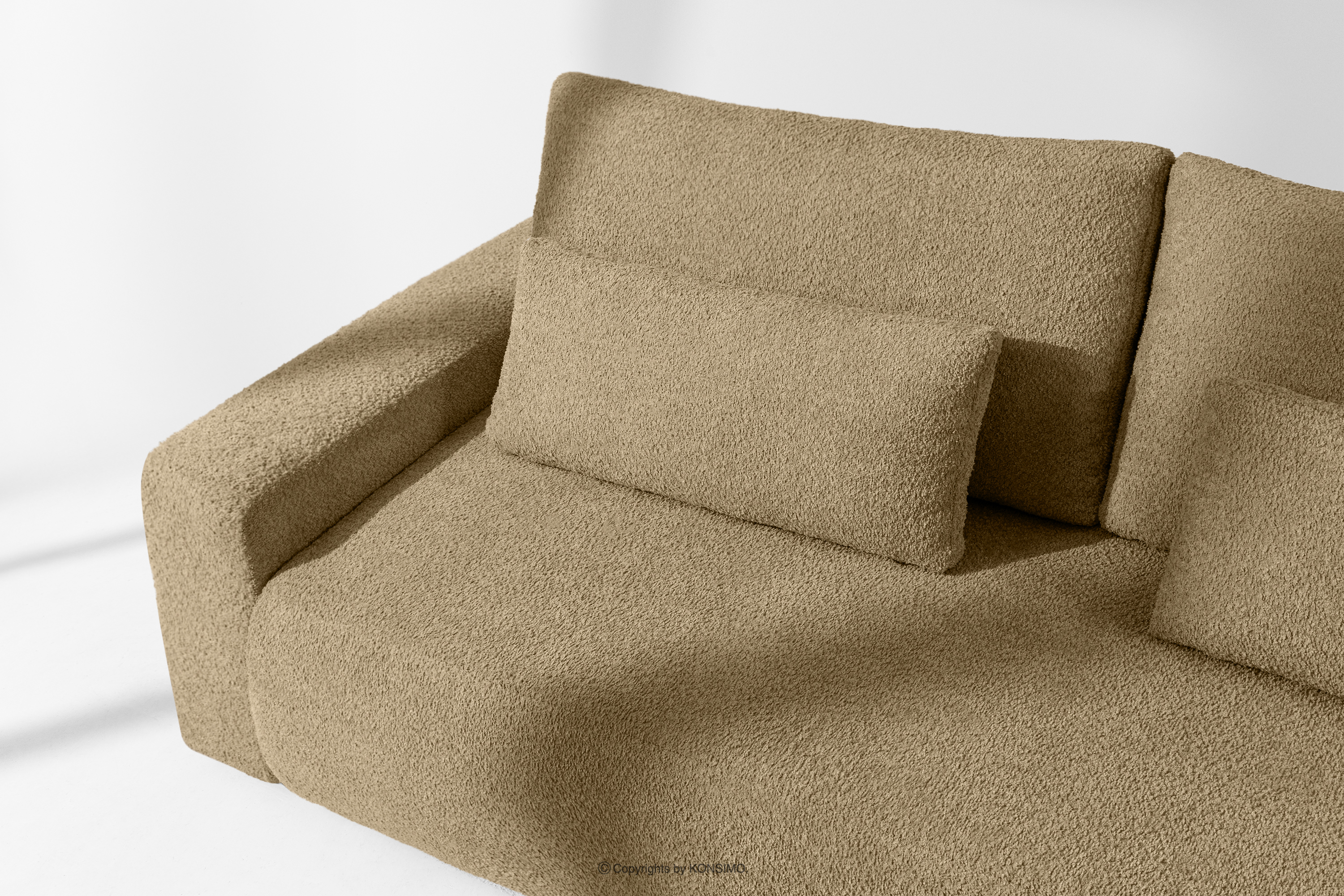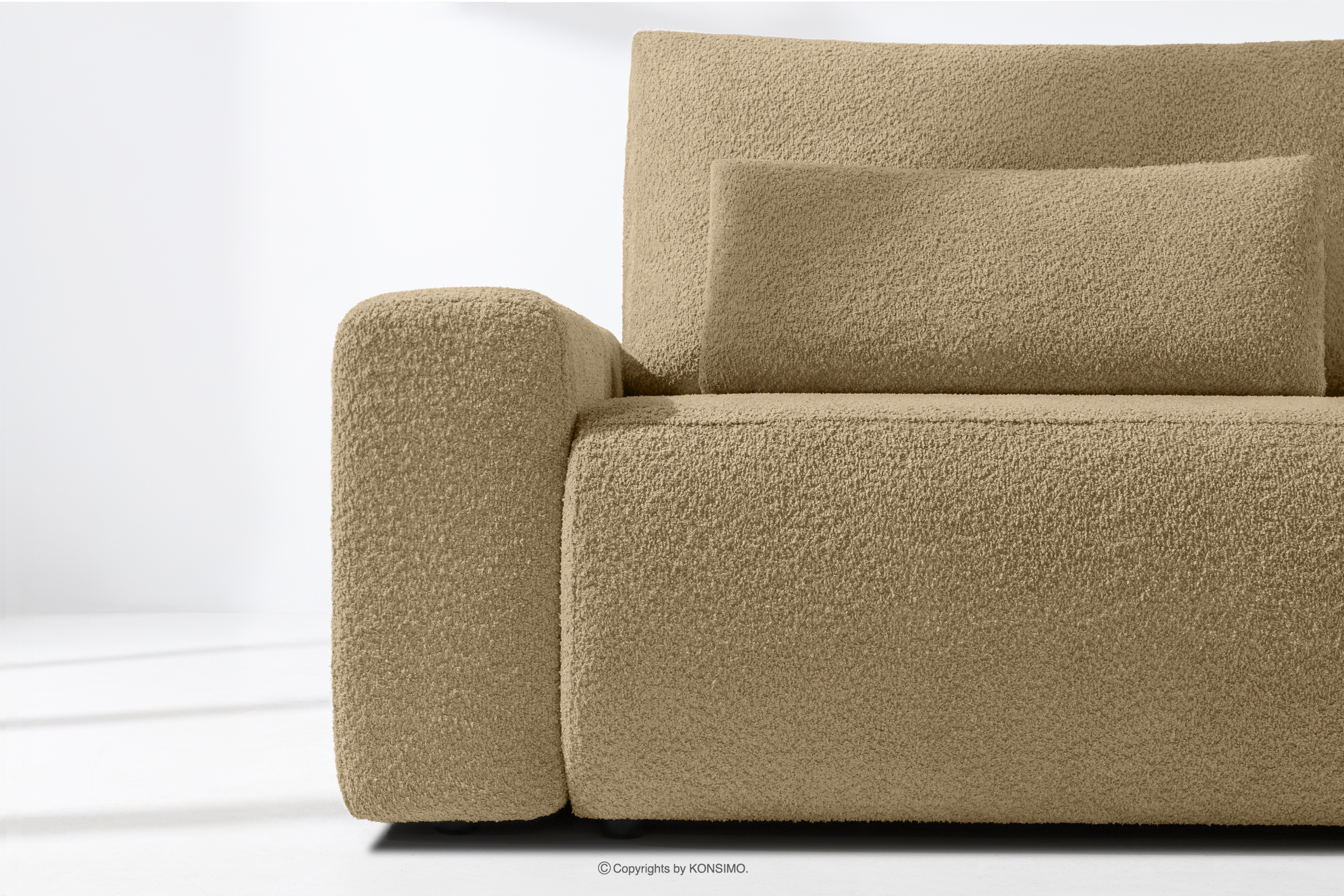 MOLLIS Mehr aus der Kollektion Ausziehbares Sofa mit Kissen Bouclé-Stoff dunkelbeige- Farbe dunkles Beige