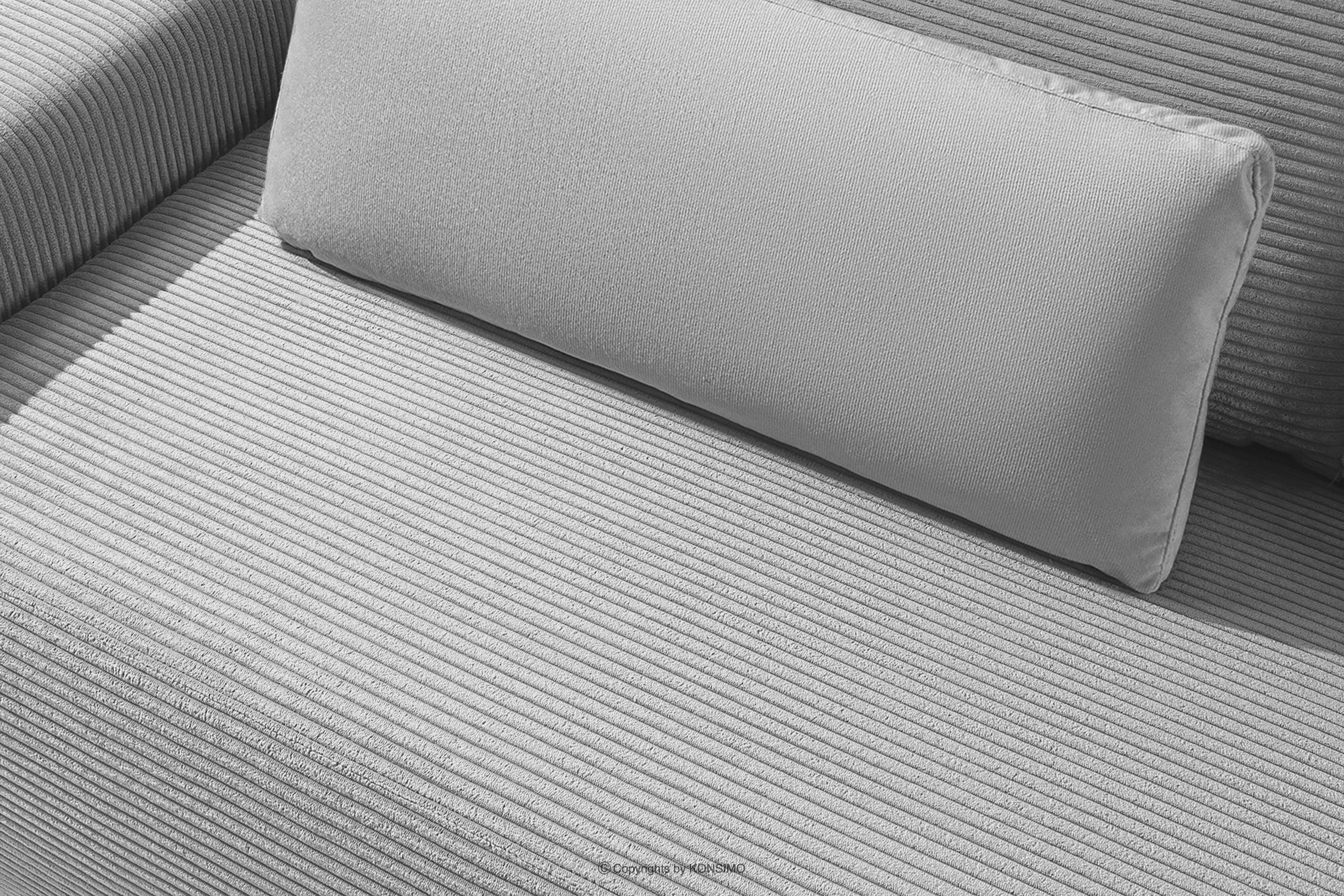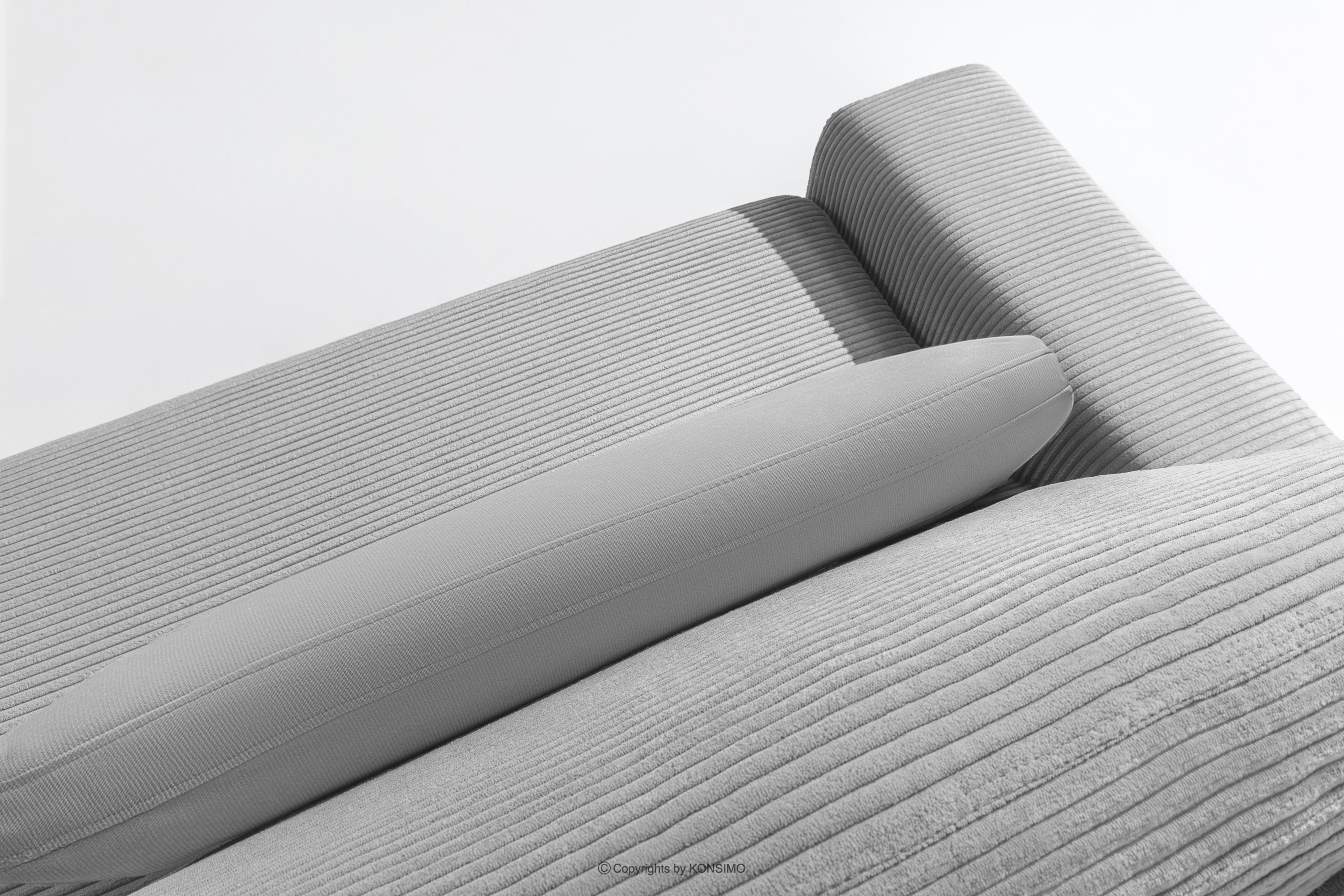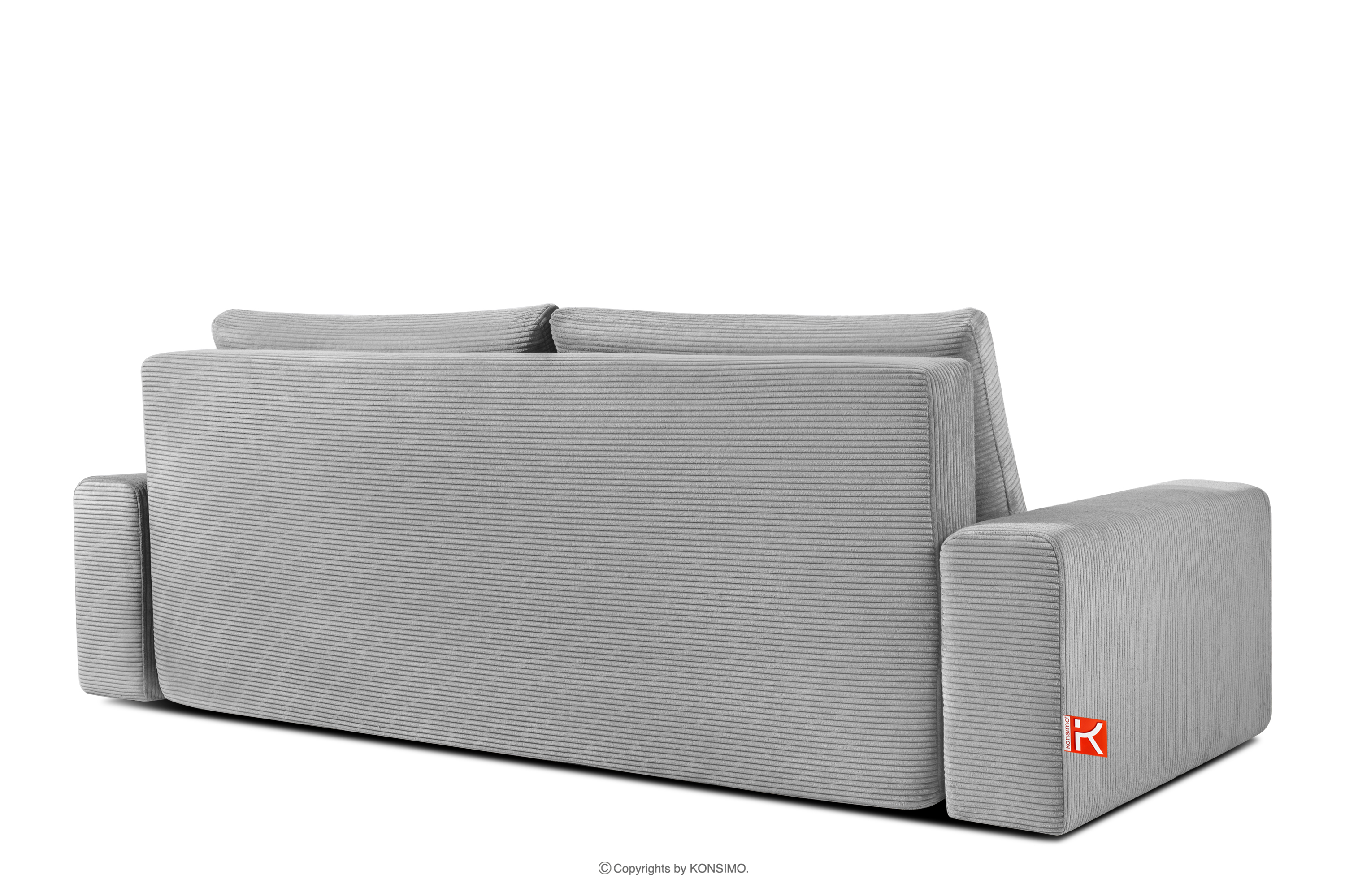 Ausziehbares Sofa mit Kissen Kordstoff / Velours hellgrau ist der Inbegriff von modernem Komfort und Funktionalität, entworfen mit Blick auf eine zeitgemäße Innenausstattung und die Anforderungen des täglichen Gebrauchs. Das elegante, minimalistische Design harmoniert mit der durchdachten Konstruktion, die Ästhetik und Funktionalität vereint. Es ist mit einem Aufklappsystem vom Typ DL und einem Bettwäschebehälter ausgestattet und somit die perfekte Lösung für kleine Wohnungen oder Gästezimmer.