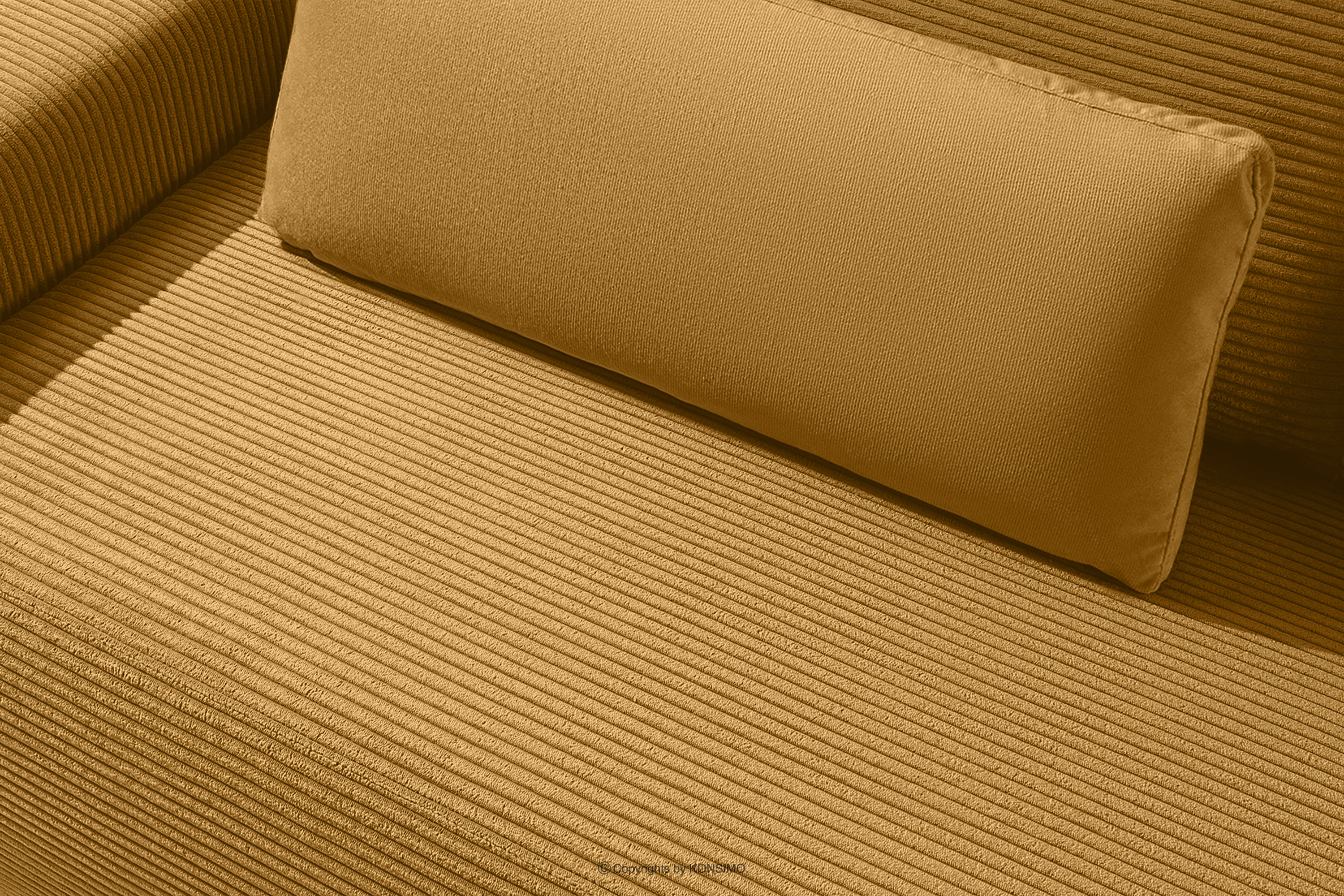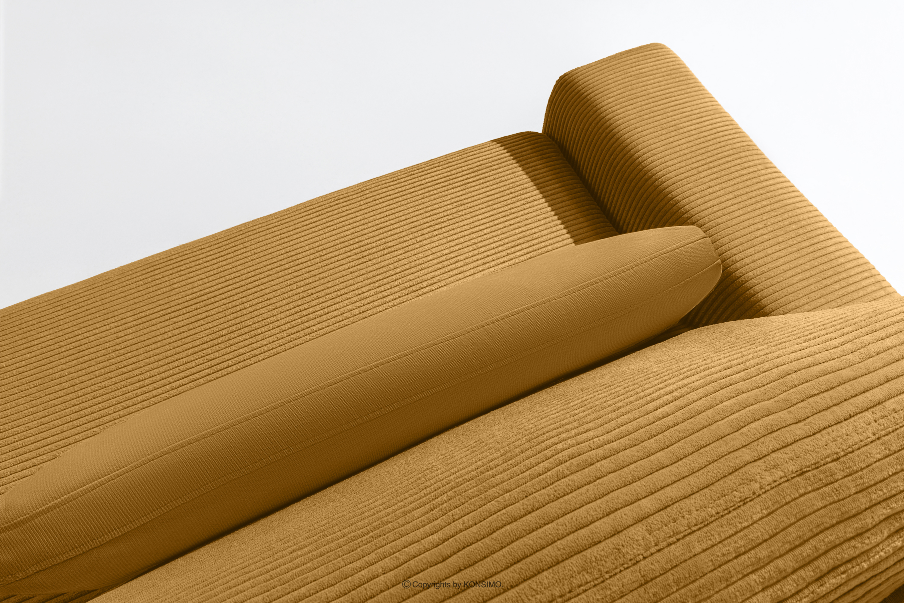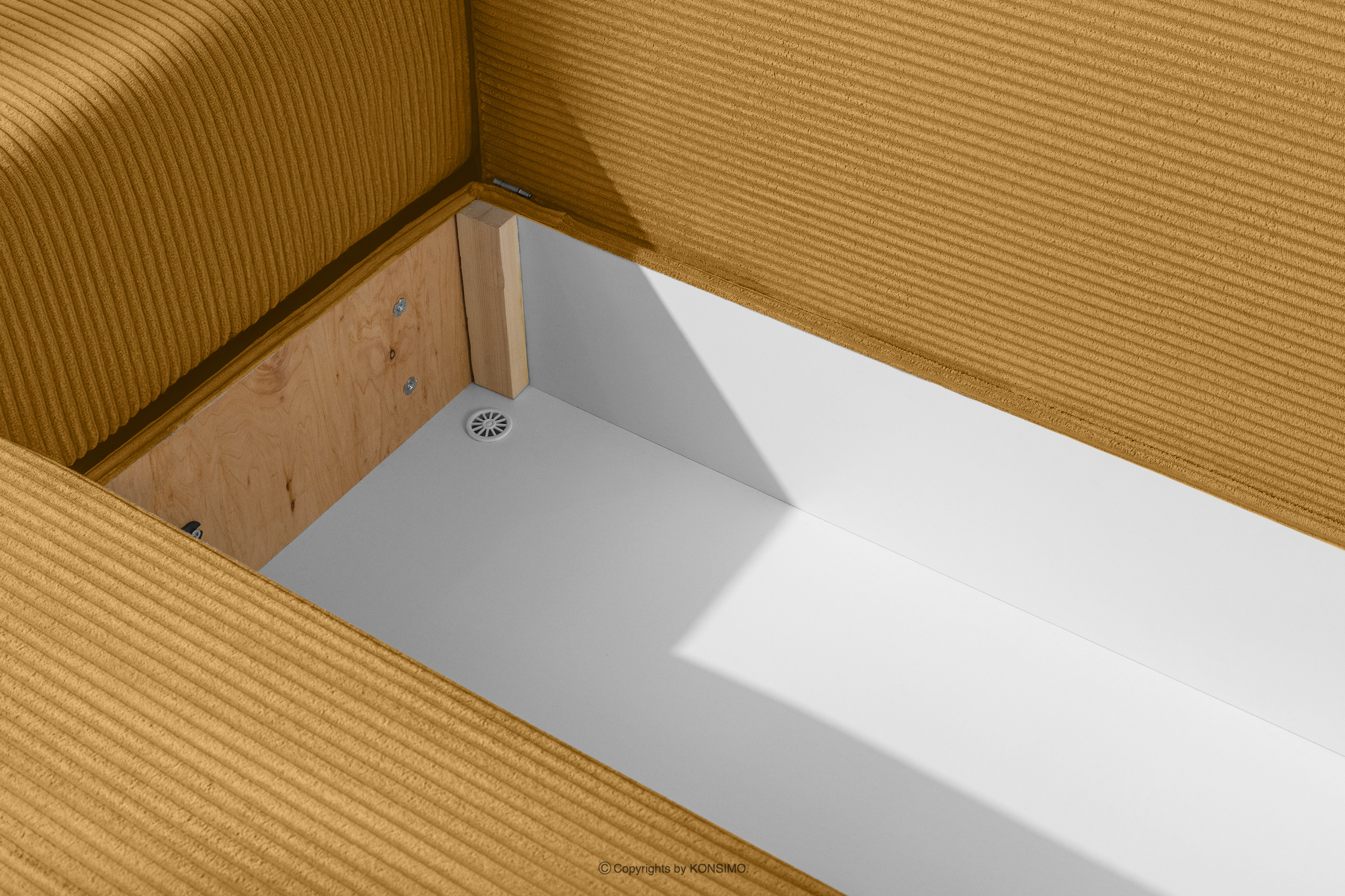 Dreisitzer-Sofa mit Kissen ausziehbar Kordstoff / Velours gelb ist der Inbegriff von modernem Komfort und Funktionalität, entworfen mit Blick auf eine zeitgemäße Innenausstattung und die Anforderungen des täglichen Gebrauchs. Das elegante, minimalistische Design harmoniert mit der durchdachten Konstruktion, die Ästhetik und Funktionalität vereint. Es ist mit einem Aufklappsystem vom Typ DL und einem Bettwäschebehälter ausgestattet und somit die perfekte Lösung für kleine Wohnungen oder Gästezimmer.