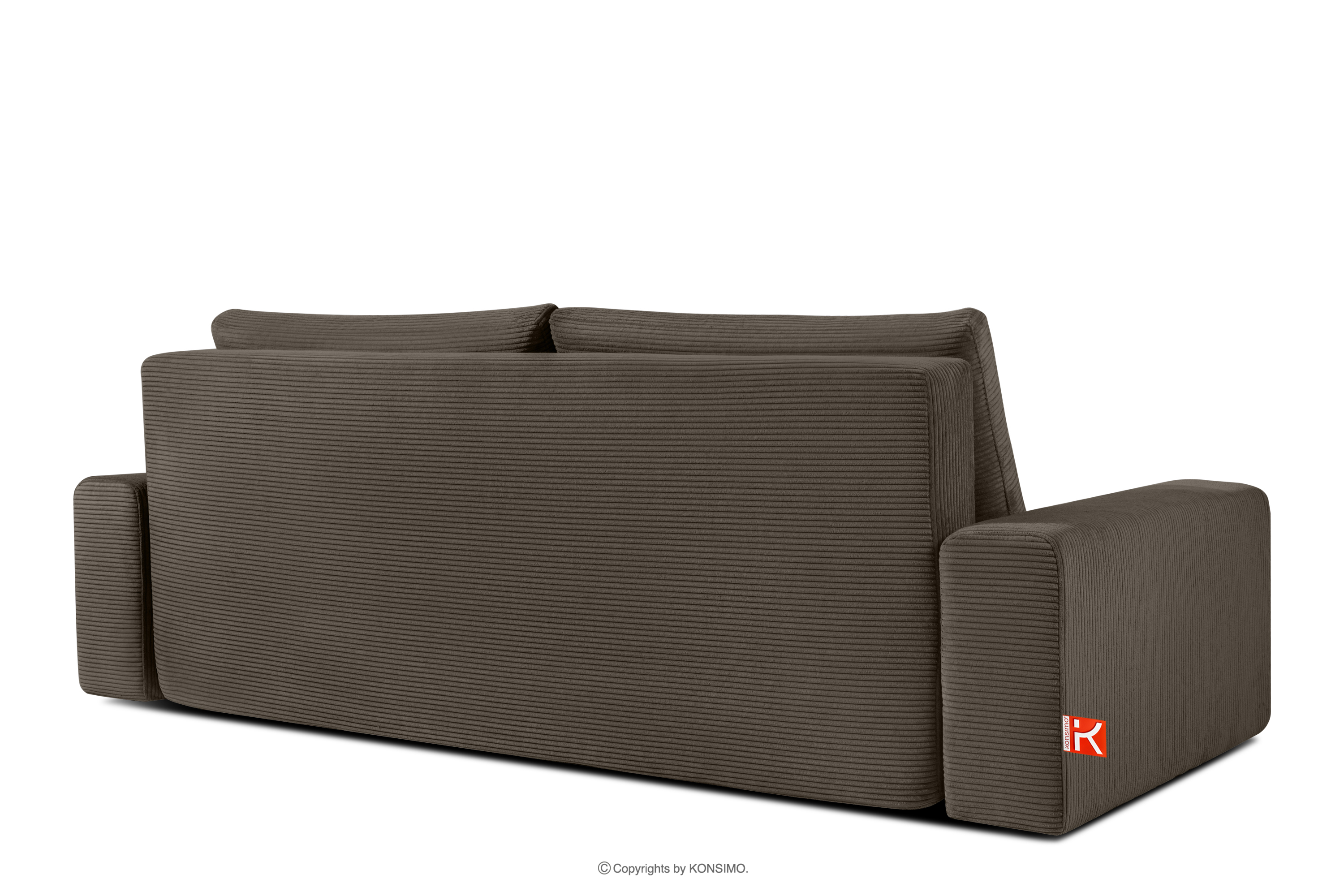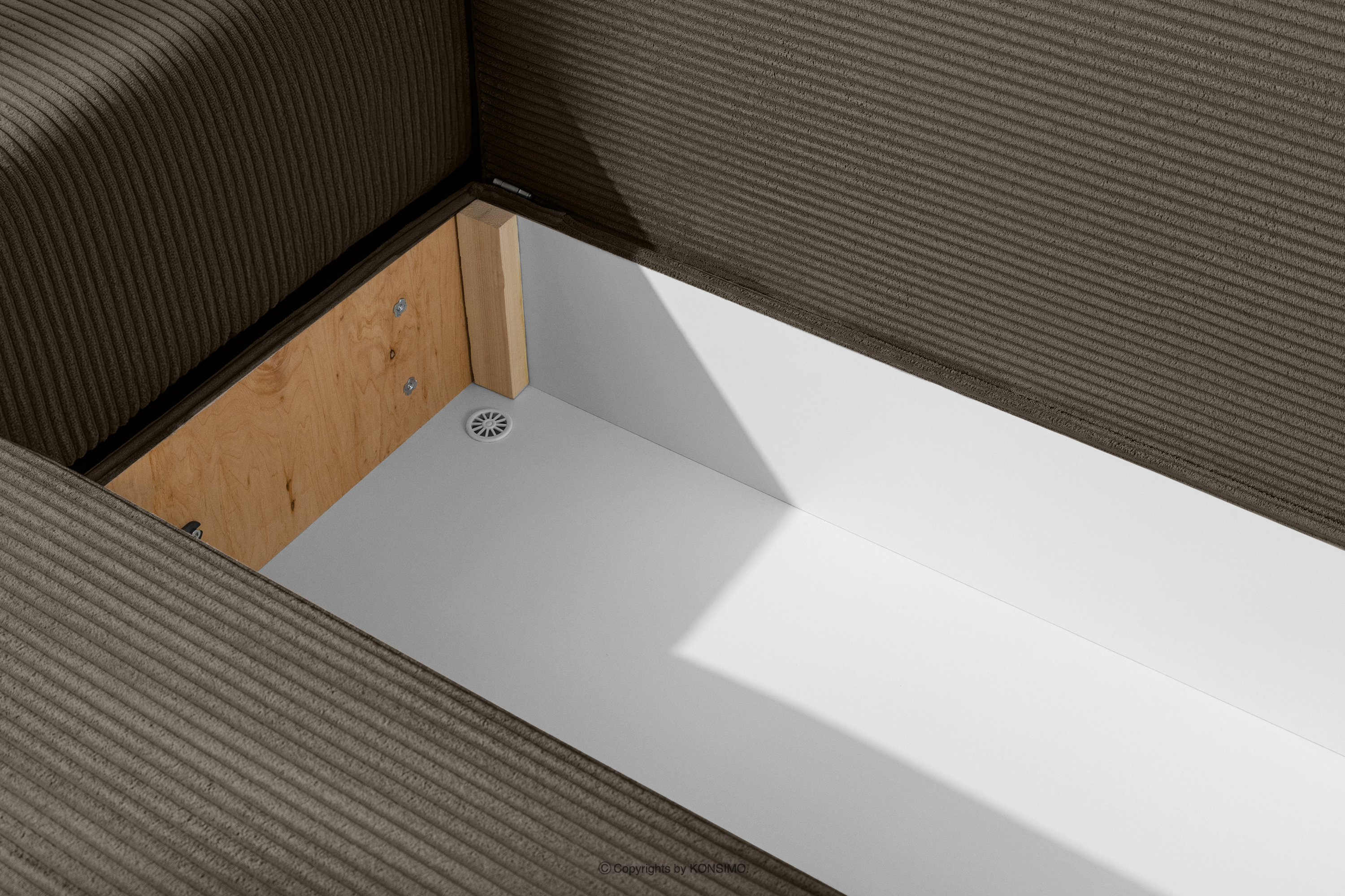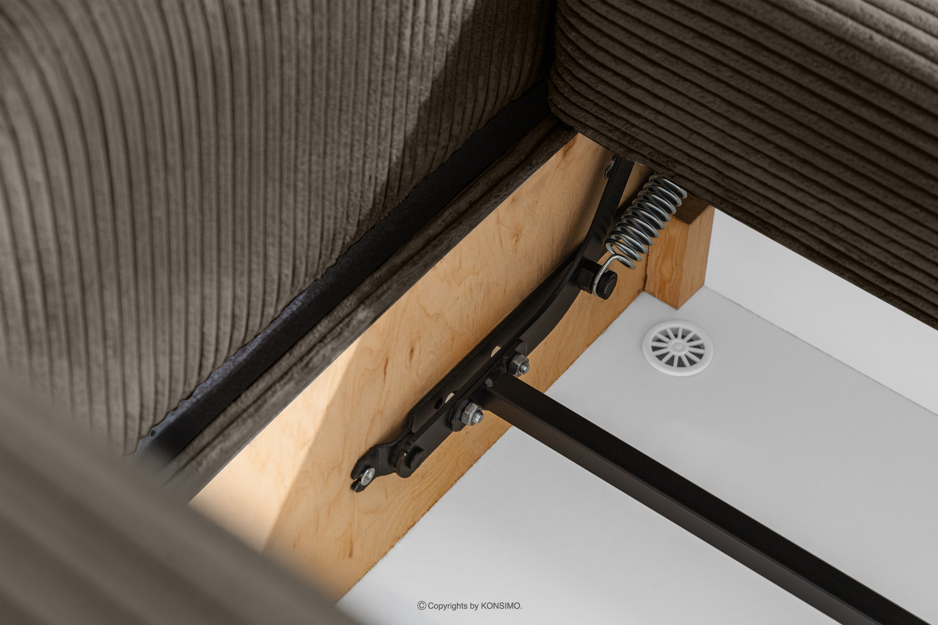ausziehbar mit Kissen Kordstoff / Velours braun ist der Inbegriff von modernem Komfort und Funktionalität, entworfen mit Blick auf eine zeitgemäße Innenausstattung und die Anforderungen des täglichen Gebrauchs. Das elegante, minimalistische Design harmoniert mit der durchdachten Konstruktion, die Ästhetik und Funktionalität vereint. Es ist mit einem Aufklappsystem vom Typ DL und einem Bettwäschebehälter ausgestattet und somit die perfekte Lösung für kleine Wohnungen oder Gästezimmer.