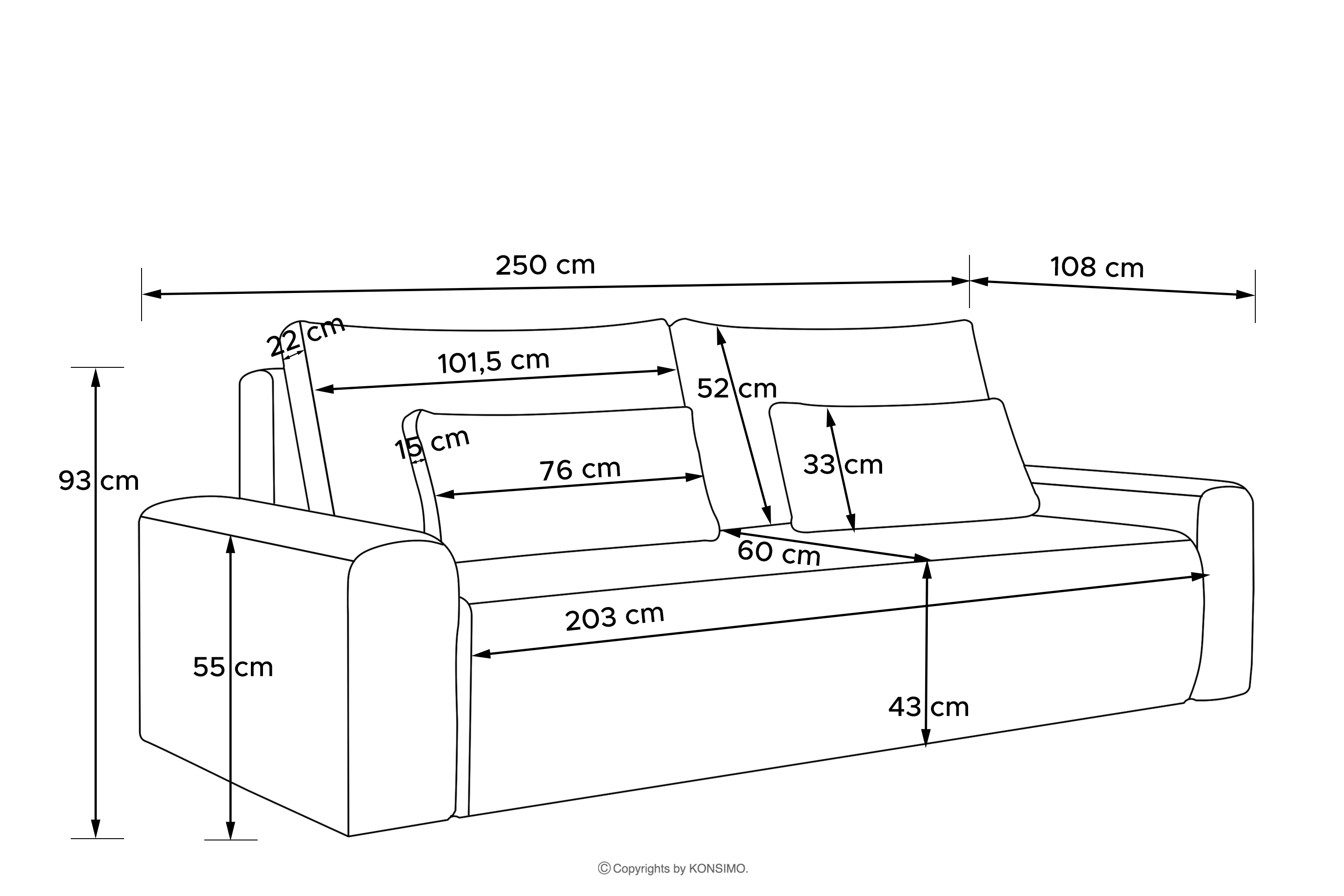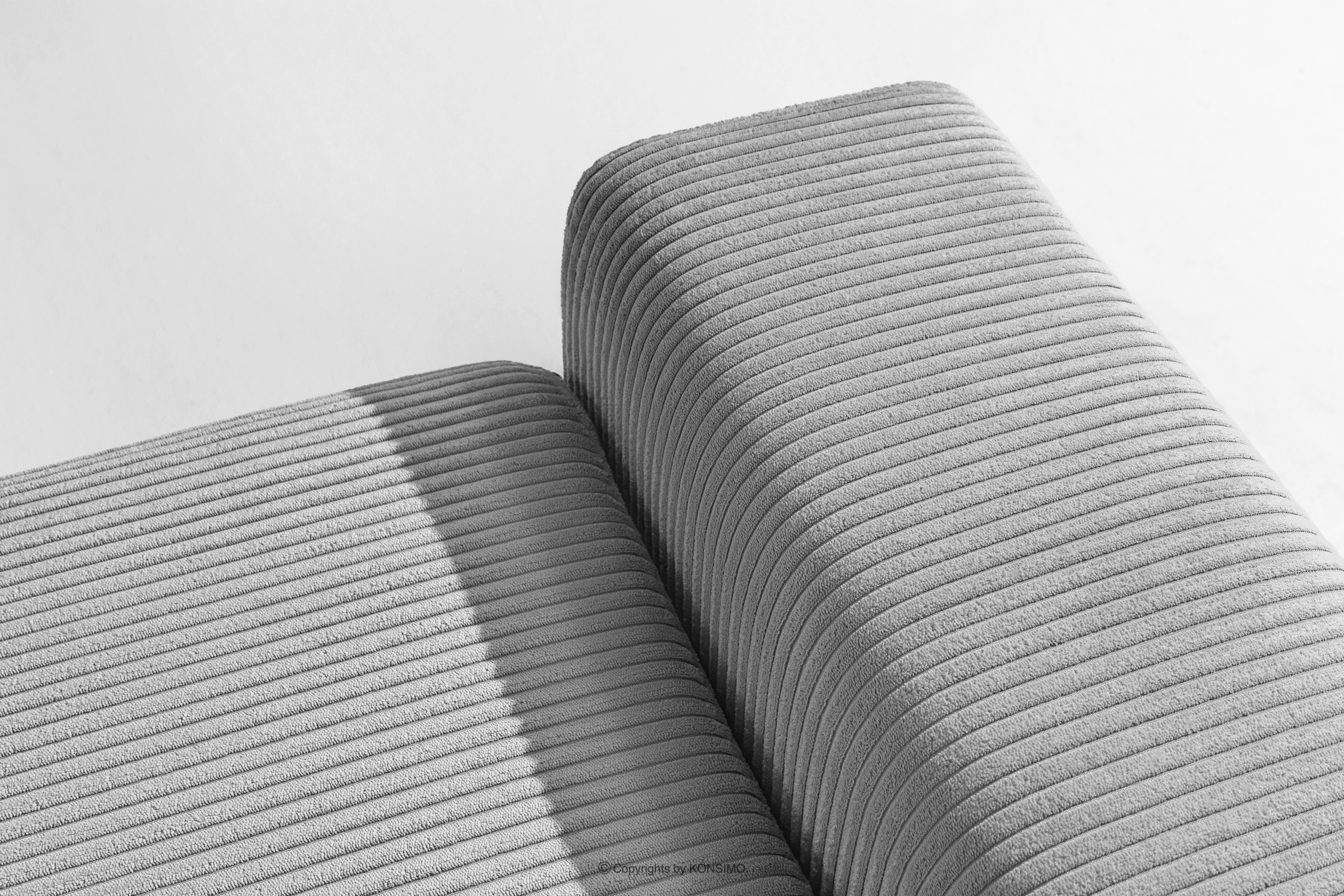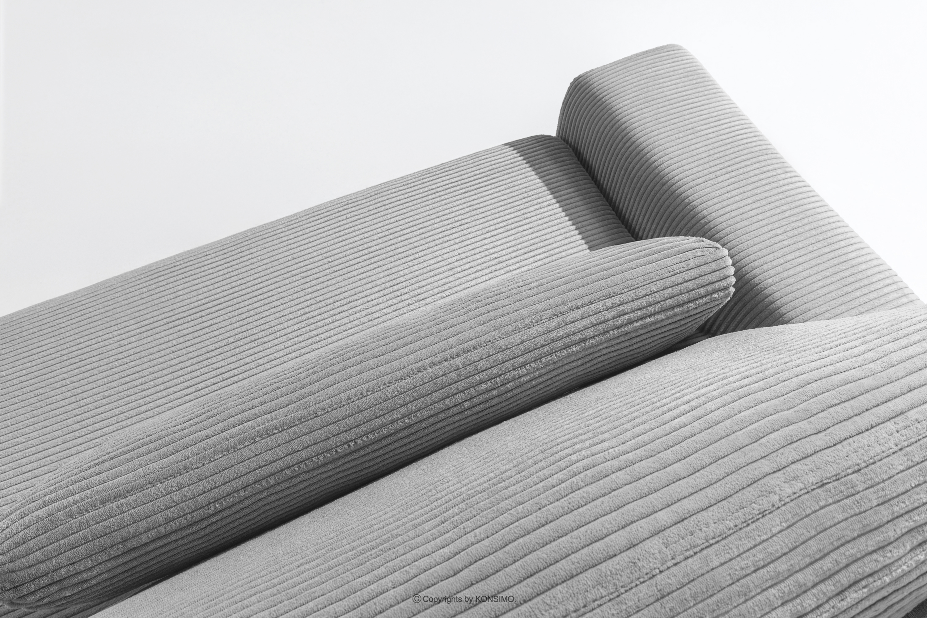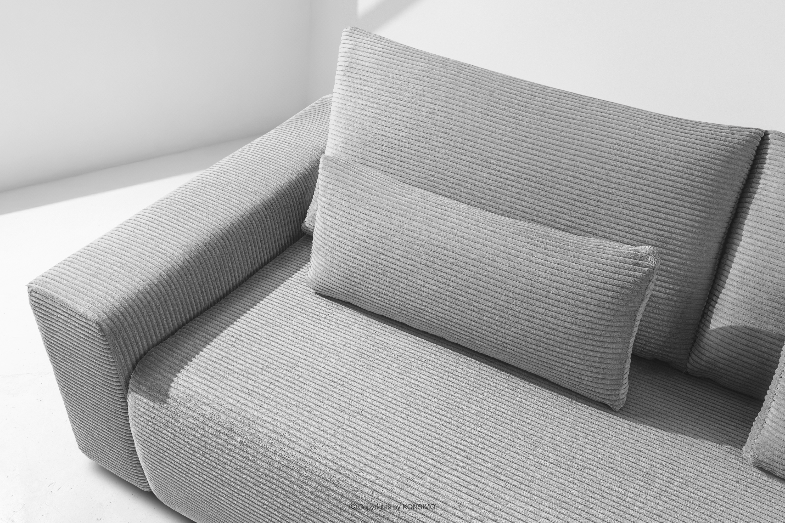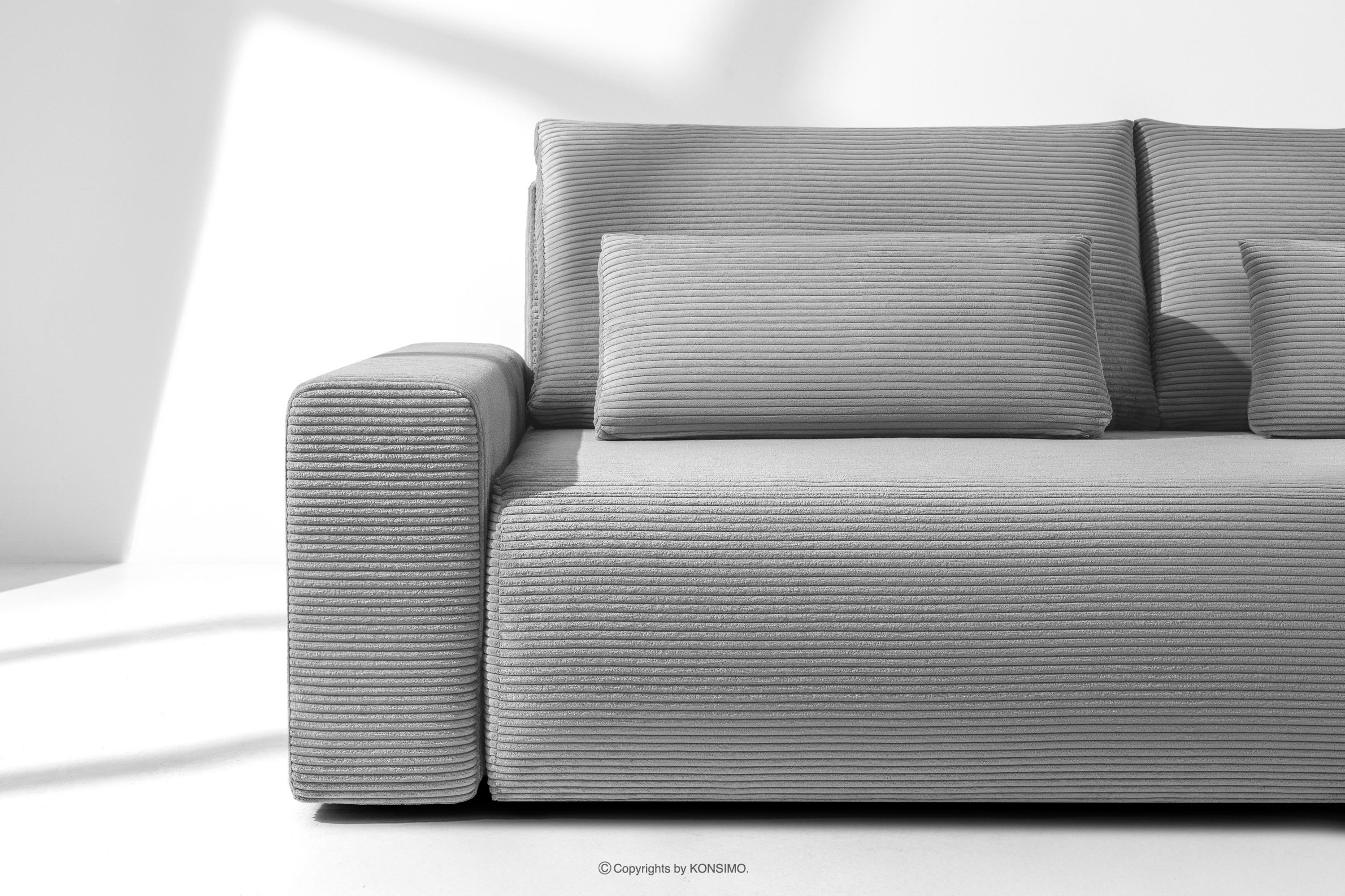 Ausziehbares Sofa mit Kissen Kordstoff-Stoff hellgrau ist der Inbegriff von modernem Komfort und Funktionalität, entworfen mit Blick auf eine zeitgemäße Innenausstattung und die Anforderungen des täglichen Gebrauchs. Das elegante, minimalistische Design harmoniert mit der durchdachten Konstruktion, die Ästhetik und Funktionalität vereint. Es ist mit einem Aufklappsystem vom Typ DL und einem Bettwäschebehälter ausgestattet und somit die perfekte Lösung für kleine Wohnungen oder Gästezimmer.