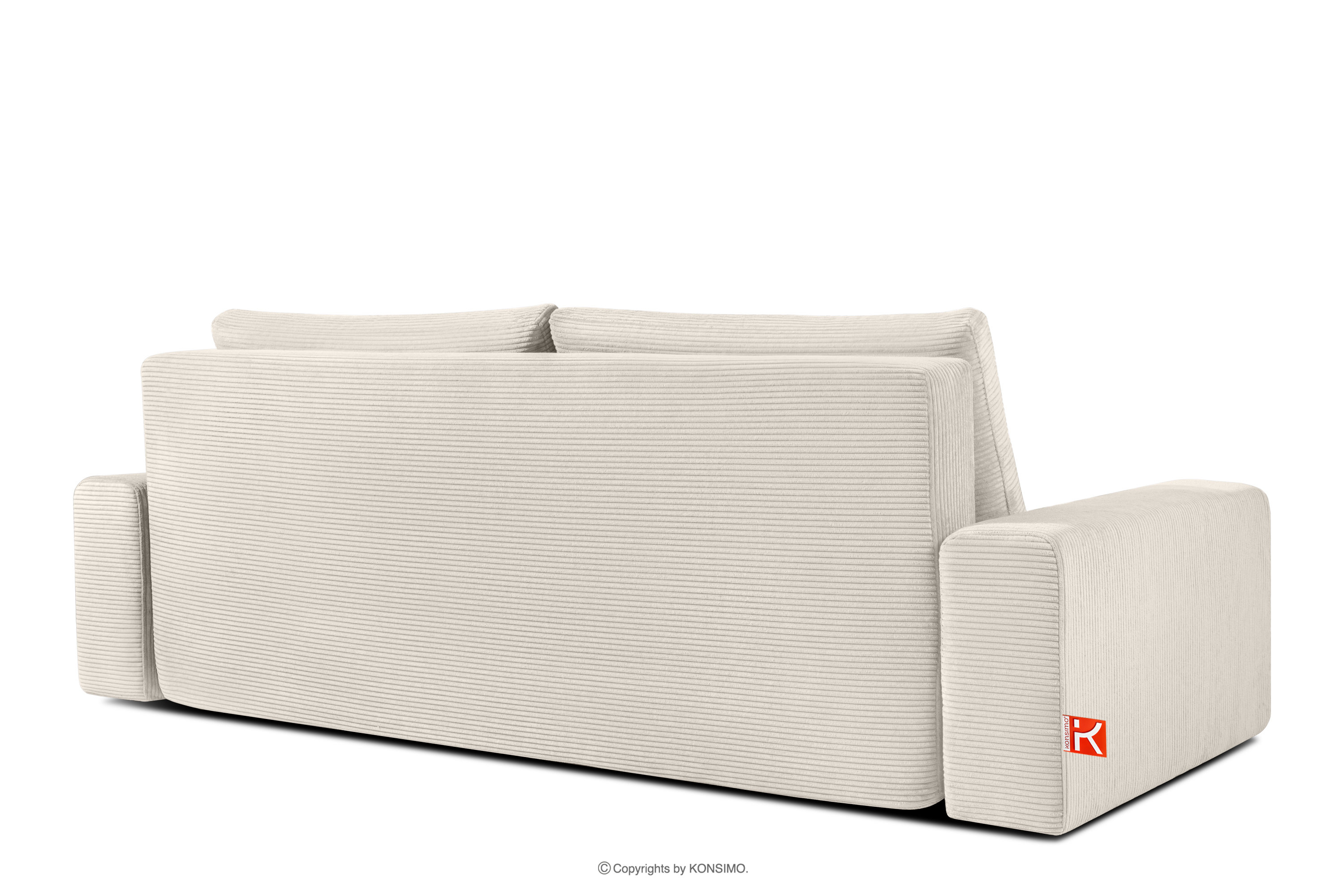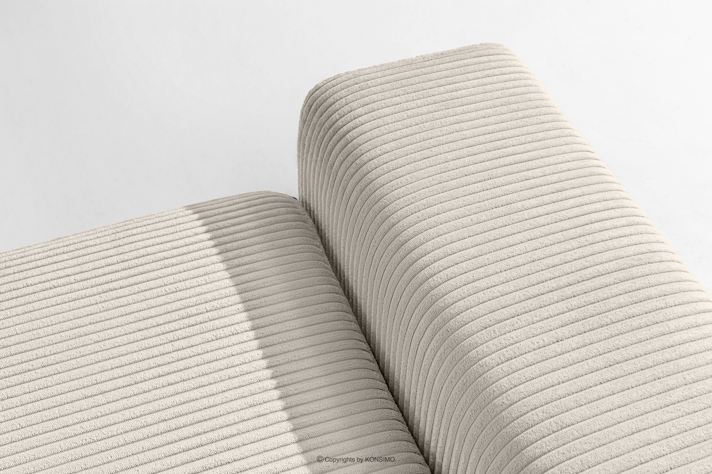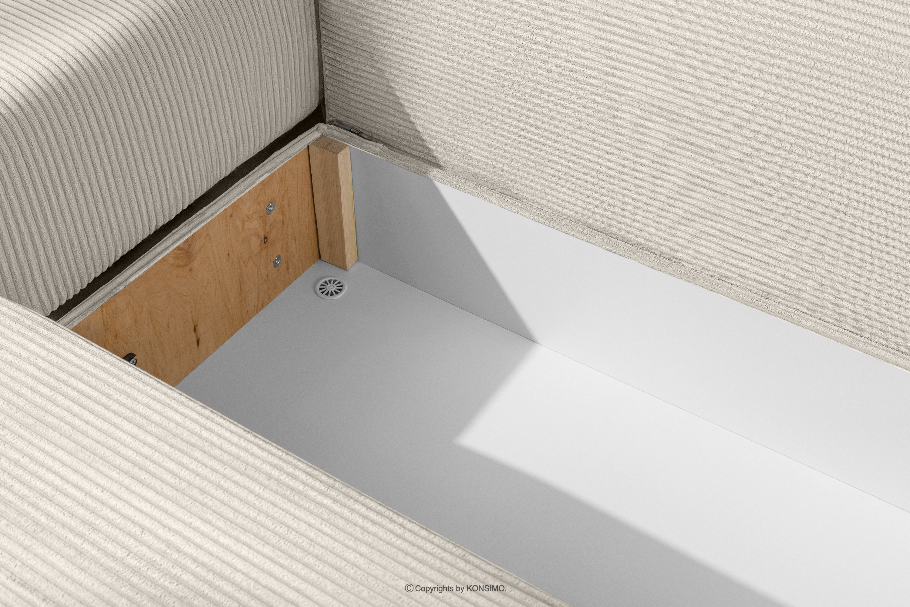Ausziehbares Sofa mit Kissen Kordstoff-Stoff creme ist der Inbegriff von modernem Komfort und Funktionalität, entworfen mit Blick auf eine zeitgemäße Innenausstattung und die Anforderungen des täglichen Gebrauchs. Das elegante, minimalistische Design harmoniert mit der durchdachten Konstruktion, die Ästhetik und Funktionalität vereint. Es ist mit einem Aufklappsystem vom Typ DL und einem Bettwäschebehälter ausgestattet und somit die perfekte Lösung für kleine Wohnungen oder Gästezimmer.