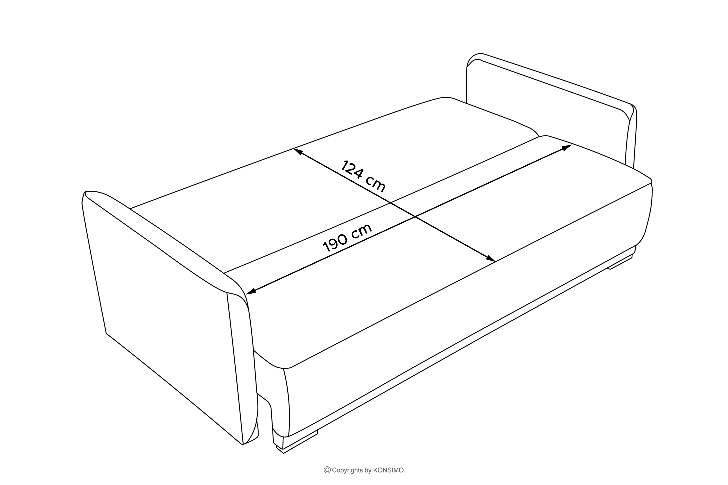 - Sitzfläche (cm): 190x43x57