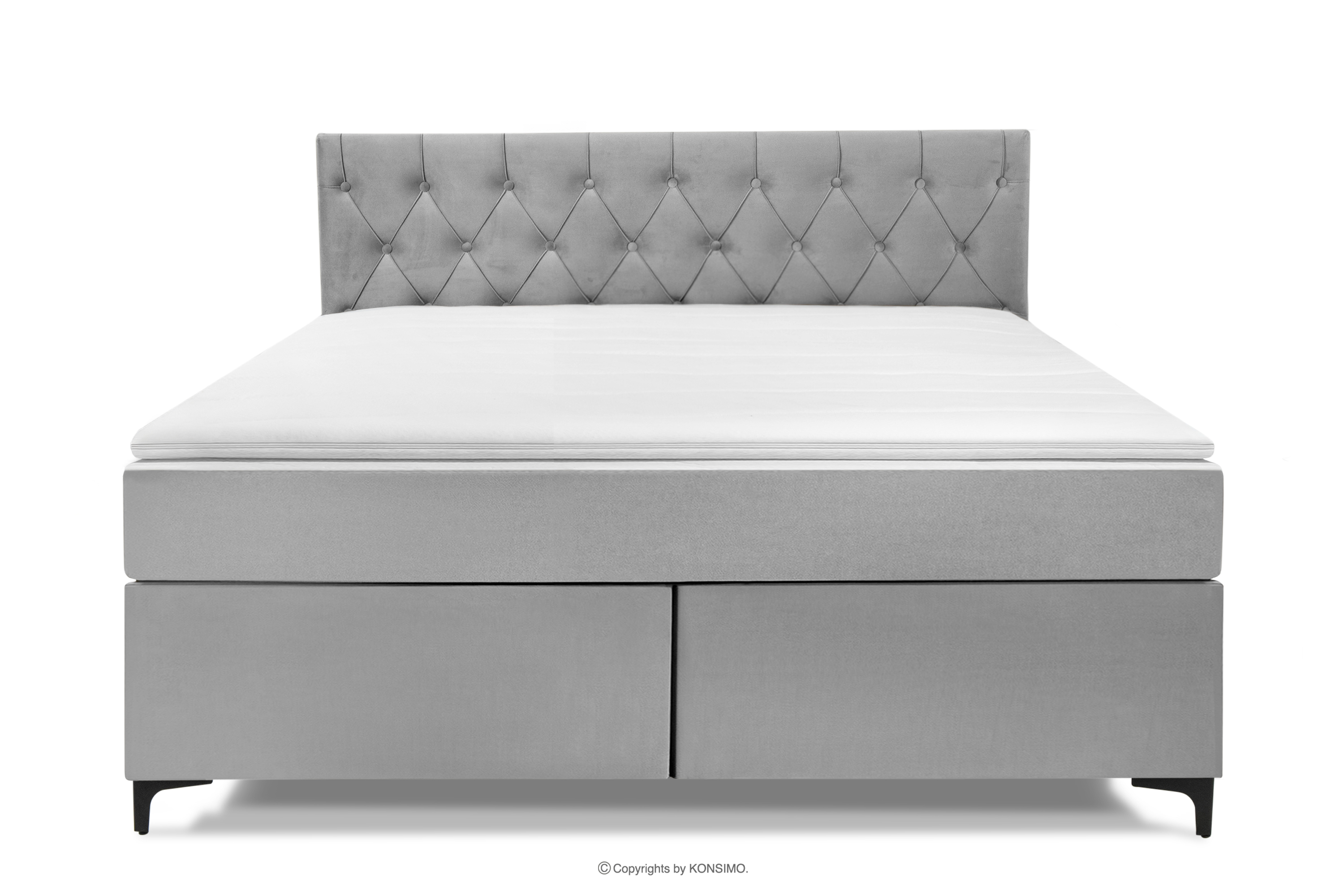 ARDEA Boxspringbett aus Veloursstoff mit Matratze und Topper 160 cm hellgrau