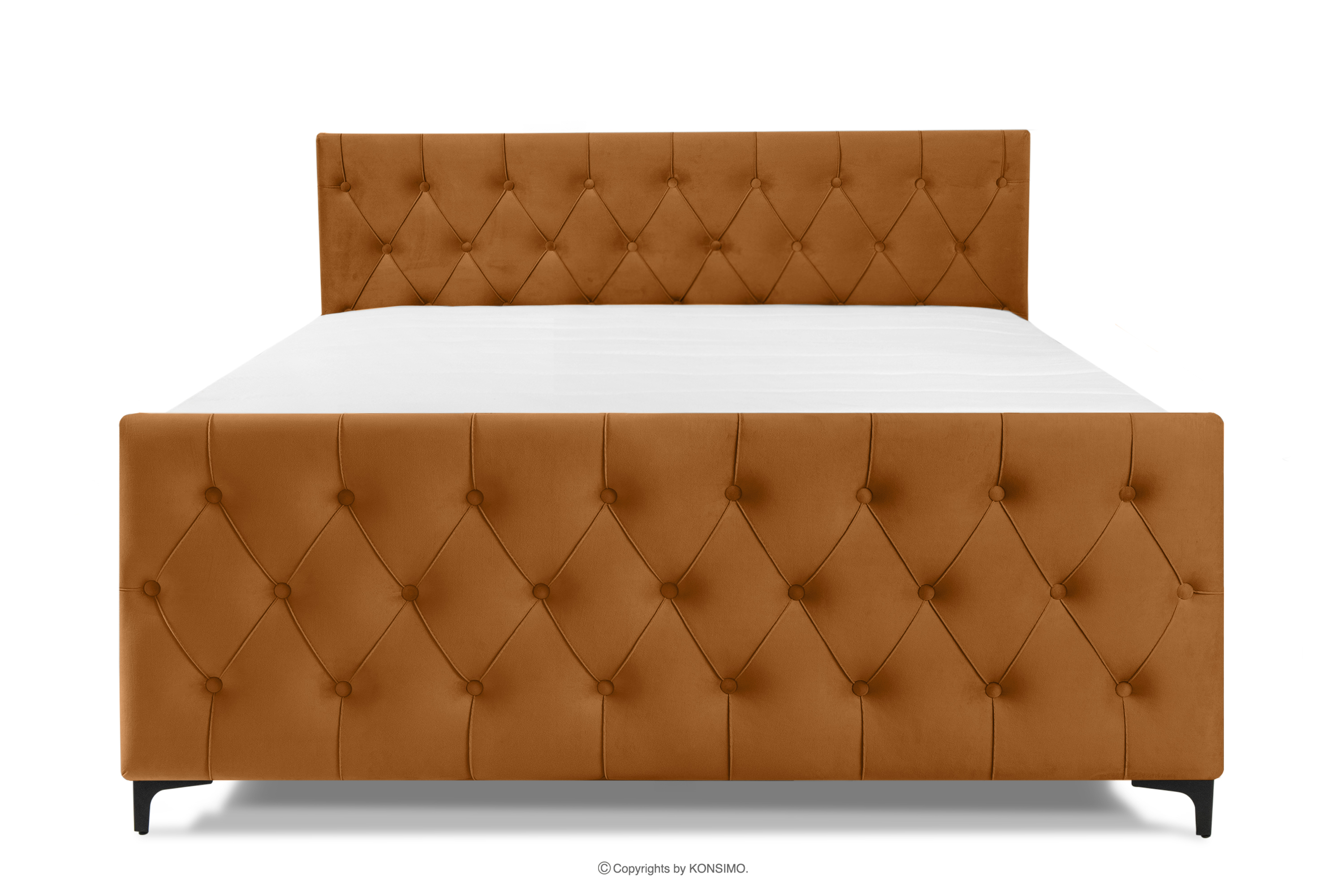 Das Bett wird von vier dekorativen, von außen sichtbaren Metallfüßen getragen, die ihm einen eleganten Touch verleihen, und vier zusätzlichen Kunststoffstützen unter der Box in Schwarz sorgen für Stabilität.