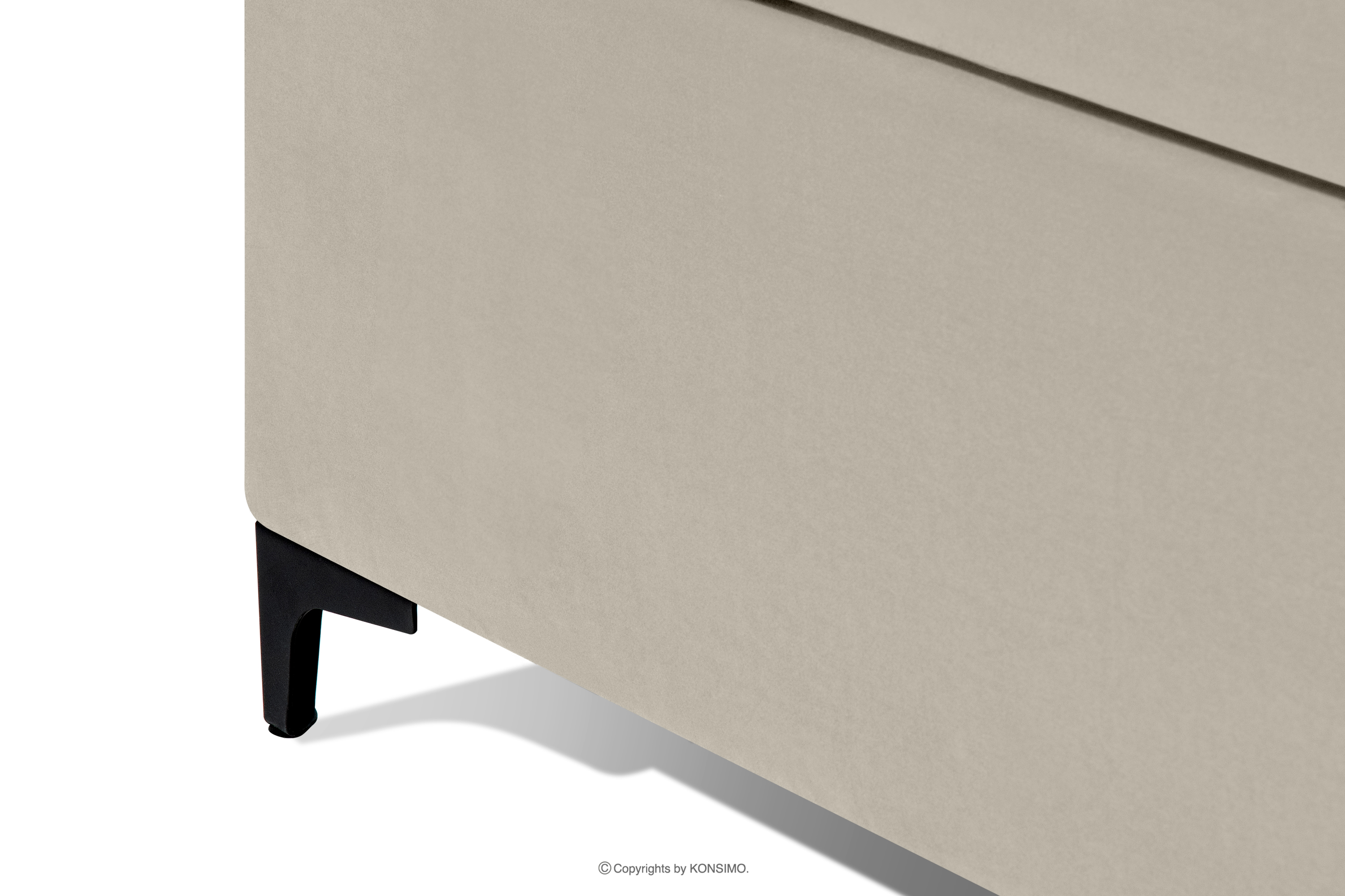 Das Bett wird von vier dekorativen, von außen sichtbaren Metallfüßen getragen, die ihm einen eleganten Touch verleihen, und vier zusätzlichen Kunststoffstützen unter der Box in Schwarz sorgen für Stabilität.