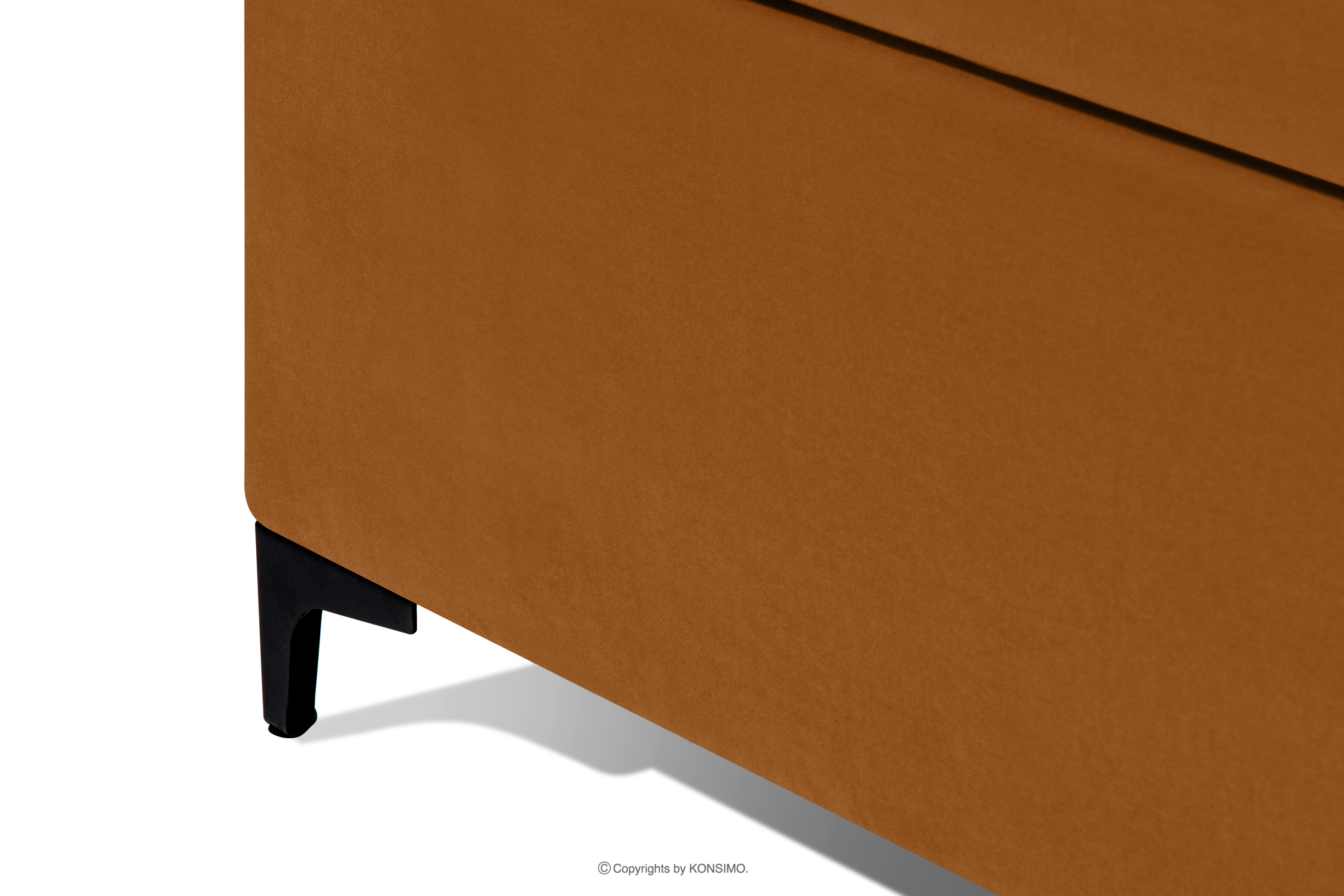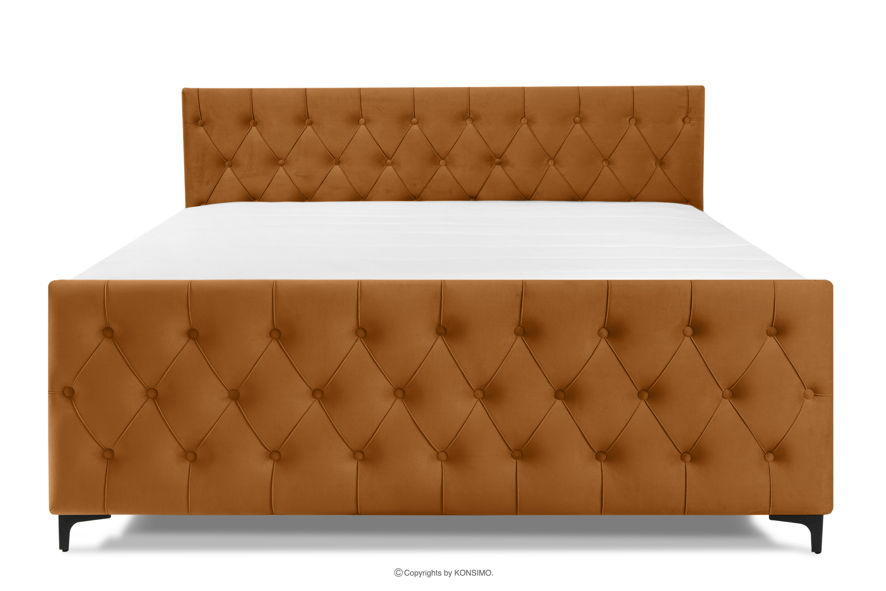Das Bett wird von vier dekorativen, von außen sichtbaren Metallfüßen getragen, die ihm einen eleganten Touch verleihen, und vier zusätzlichen Kunststoffstützen unter der Box in Schwarz sorgen für Stabilität.
