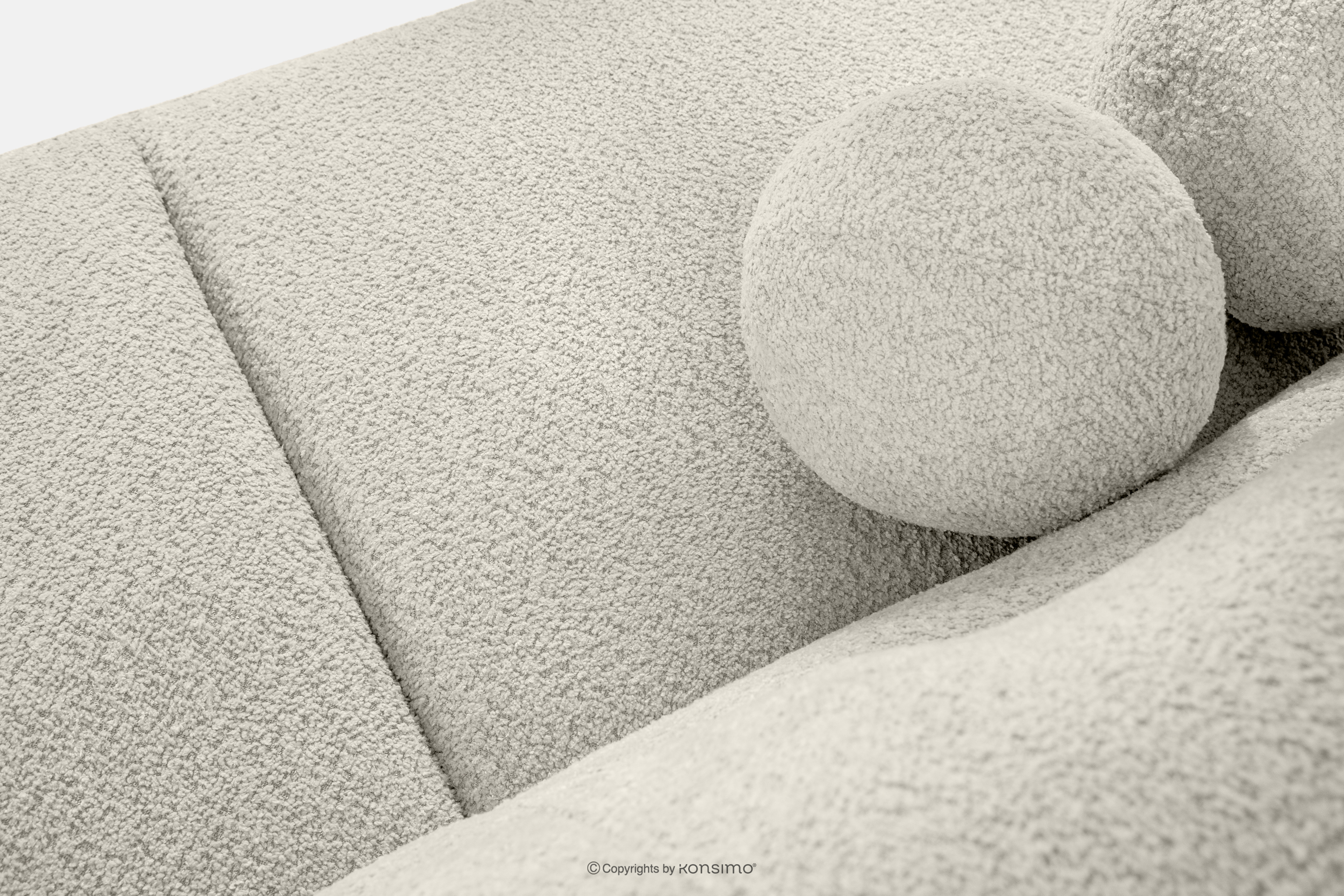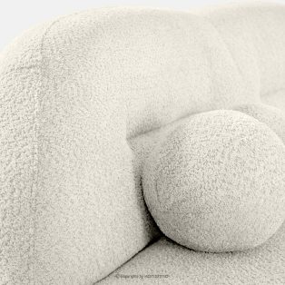 Dreisitzer-Sofa Boucle im Japandi-Stil weiß ist ein Angebot für Menschen, die modernes Design in Verbindung mit außergewöhnlichem Komfort und sorgfältiger Verarbeitung schätzen. Die weiche, abgerundete Form ist ein Blickfang und verleiht dem Innenraum ein Gefühl von Harmonie und Gemütlichkeit. Der Bezug aus modischem Bouclé-Stoff unterstreicht den eleganten und zugleich warmen Charakter des Möbelstücks – die strukturierte Oberfläche des Materials ist nicht nur optisch ansprechend, sondern auch sehr angenehm anzufassen.