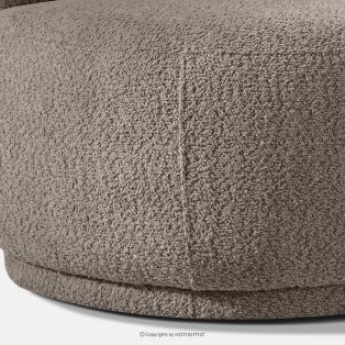 Sessel aus Bouclé-Stoff im Japandi-Stil kühles Braun ist ein Angebot für Menschen, die modernes Design in Verbindung mit außergewöhnlichem Komfort und sorgfältiger Verarbeitung schätzen. Die weiche, abgerundete Form ist ein Blickfang und verleiht dem Innenraum ein Gefühl von Harmonie und Gemütlichkeit. Der Bezug aus modischem Bouclé-Stoff unterstreicht den eleganten und zugleich warmen Charakter des Möbelstücks – die strukturierte Oberfläche des Materials ist nicht nur optisch ansprechend, sondern auch sehr angenehm anzufassen.