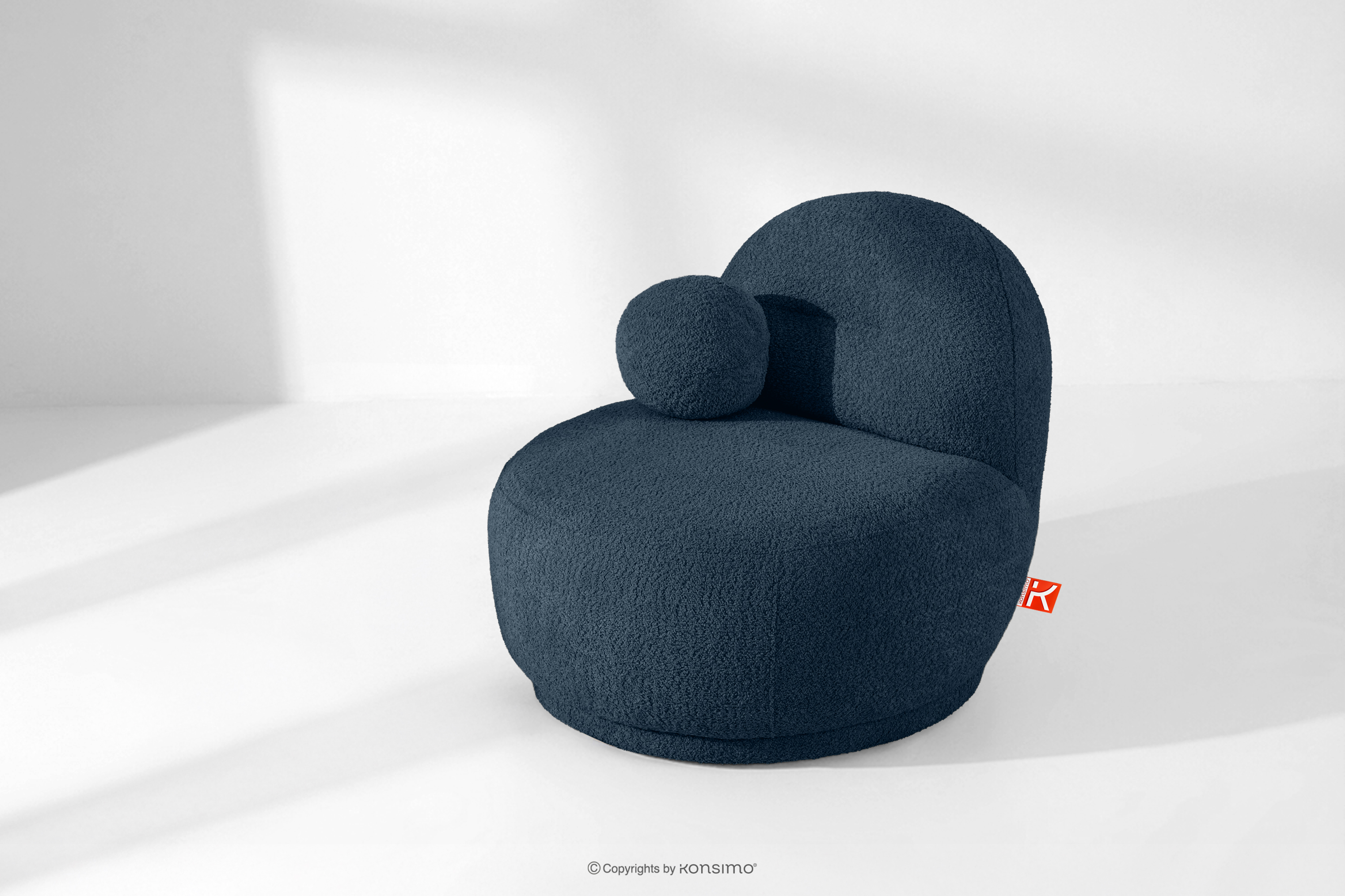 Sessel aus Bouclé-Stoff im Japandi-Stil dunkelblau ist ein Angebot für Menschen, die modernes Design in Verbindung mit außergewöhnlichem Komfort und sorgfältiger Verarbeitung schätzen. Die weiche, abgerundete Form ist ein Blickfang und verleiht dem Innenraum ein Gefühl von Harmonie und Gemütlichkeit. Der Bezug aus modischem Bouclé-Stoff unterstreicht den eleganten und zugleich warmen Charakter des Möbelstücks – die strukturierte Oberfläche des Materials ist nicht nur optisch ansprechend, sondern auch sehr angenehm anzufassen.