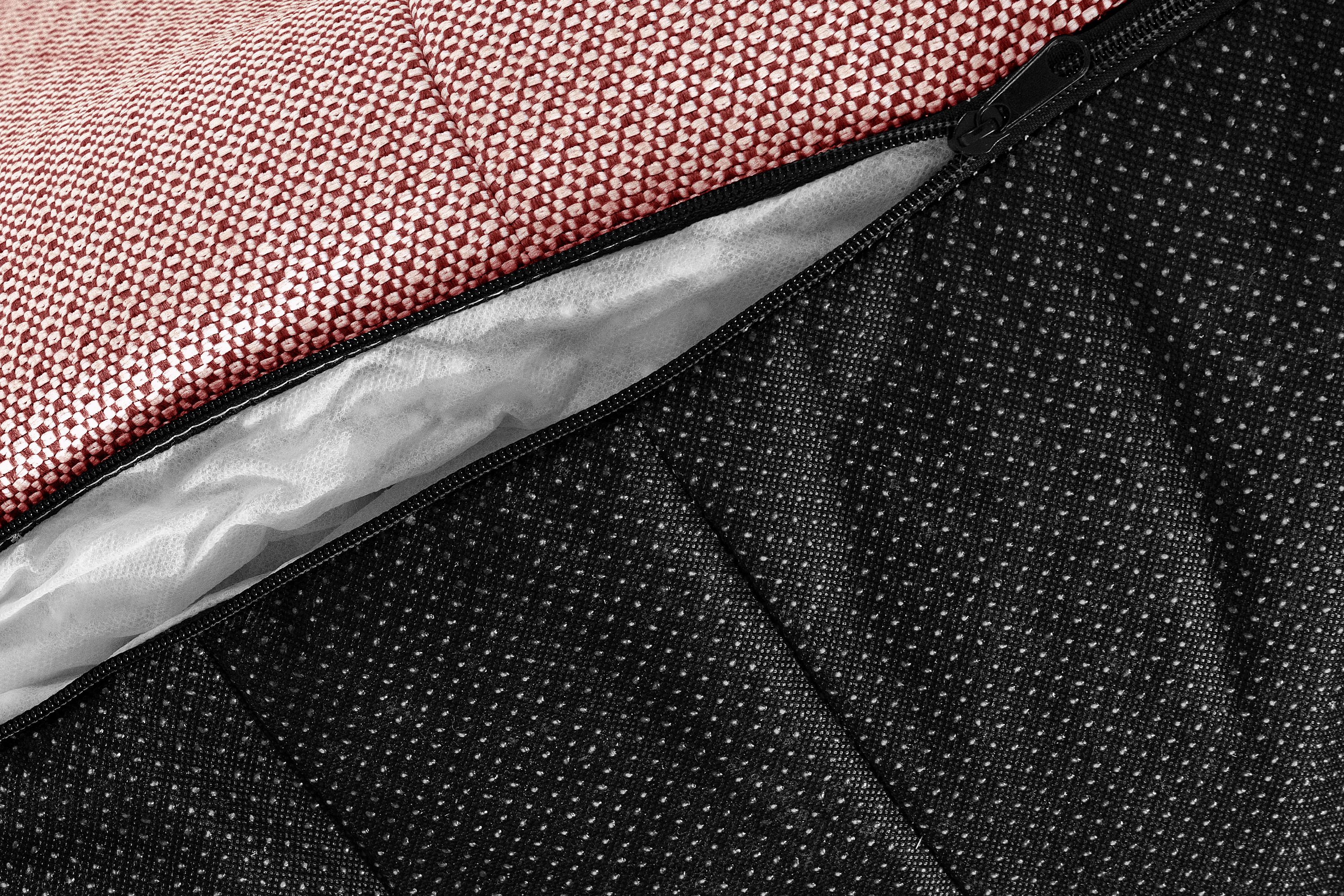 - Zusätzliche Informationen: Außenbezug aus wasserabweisendem Stoff, in die Möbelstruktur eingenäht, nach innen versteckbar und mit Reißverschluss verschließbar, Eingenähter Gummizug in der Hülle verhindert ein Verrutschen vom Möbelstück, Griff aus Polsterband zum leichteren Tragen, Unterseite des Möbelstücks aus rutschfestem Stoff
