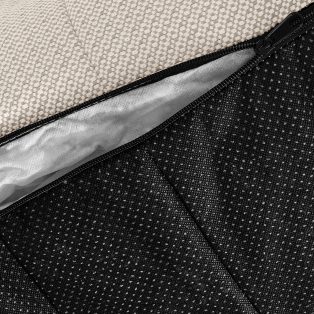 - Zusätzliche Informationen: Außenbezug aus wasserabweisendem Stoff, in die Möbelstruktur eingenäht, nach innen versteckbar und mit Reißverschluss verschließbar, Eingenähter Gummizug in der Hülle verhindert ein Verrutschen vom Möbelstück, Griff aus Polsterband zum leichteren Tragen, Unterseite des Möbelstücks aus rutschfestem Stoff