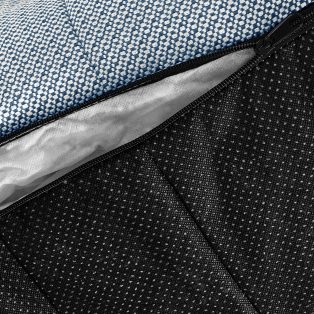 - Zusätzliche Informationen: Außenbezug aus wasserabweisendem Stoff, in die Möbelstruktur eingenäht, nach innen versteckbar und mit Reißverschluss verschließbar, Eingenähter Gummizug in der Hülle verhindert ein Verrutschen vom Möbelstück, Griff aus Polsterband zum leichteren Tragen, Unterseite des Möbelstücks aus rutschfestem Stoff