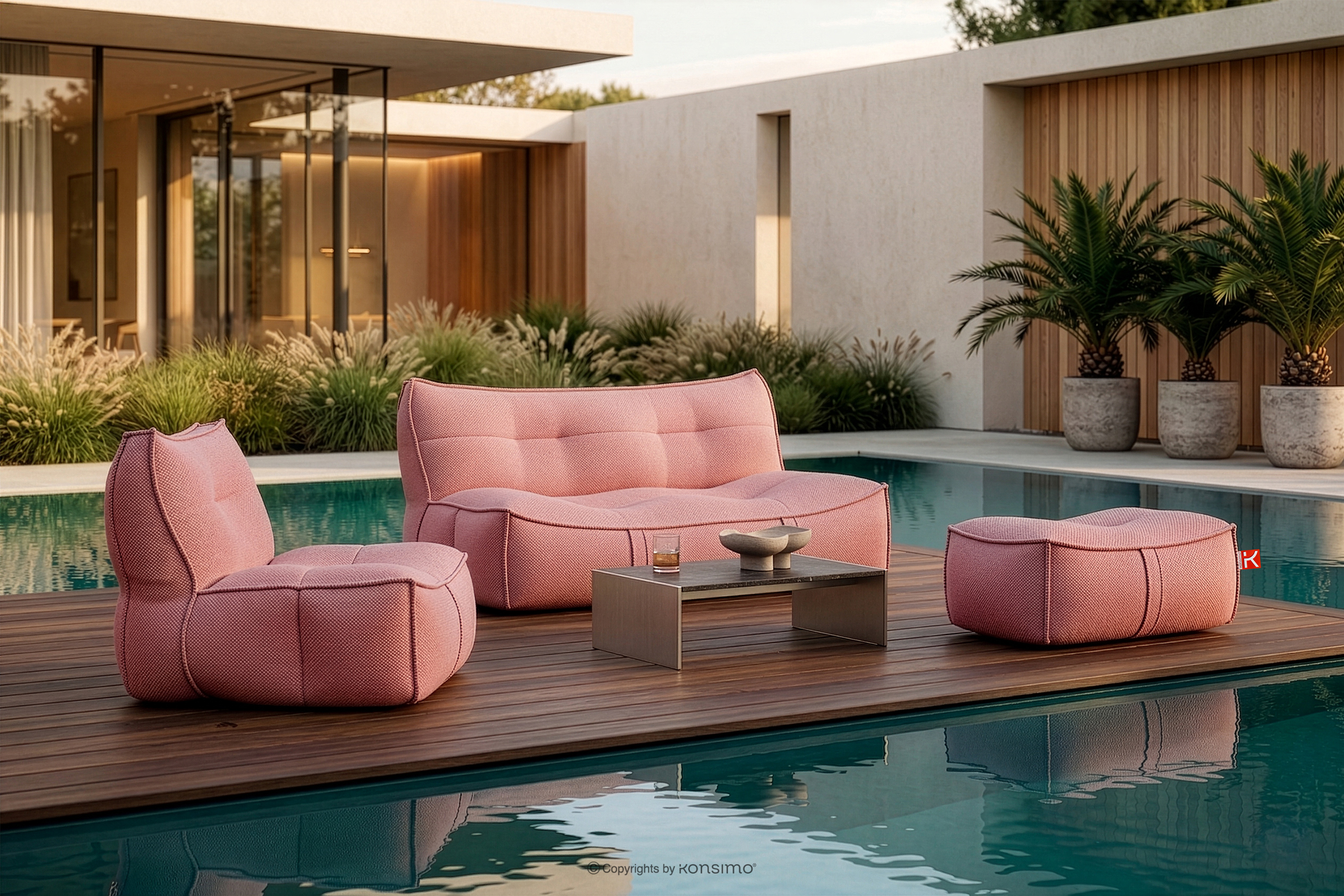 Darüber hinaus garantiert die einfache Reinigung, dass er auch nach intensiver Nutzung immer makellos aussieht. Um die Hygiene und Ihre Gesundheit zu gewährleisten, wurde ein Material mit antibakteriellen Eigenschaften verwendet. Dank seiner Witterungsbeständigkeit können Sie sicher sein, dass das Material seine Eigenschaften und Ästhetik unter dem Einfluss von Sonne, Regen oder anderen äußeren Einflüssen nicht verliert und auch den Zigaretten-Test erfolgreich bestanden hat. Die weiche Sitzfläche lädt zum Entspannen ein, passt sich Ihrer Körperform an und bietet unvergleichlichen Komfort. Jedes Detail wurde durchdacht, um Ihnen Seelenfrieden und viele Jahre problemlosen Gebrauch zu garantieren. Damit ist die Kollektion LOVIA der ideale Ort zum Entspannen auf der Terrasse, im Garten oder auf dem Balkon, und das Design in Verbindung mit der Funktionalität setzt neue Maßstäbe in der luxuriösen Außenausstattung.