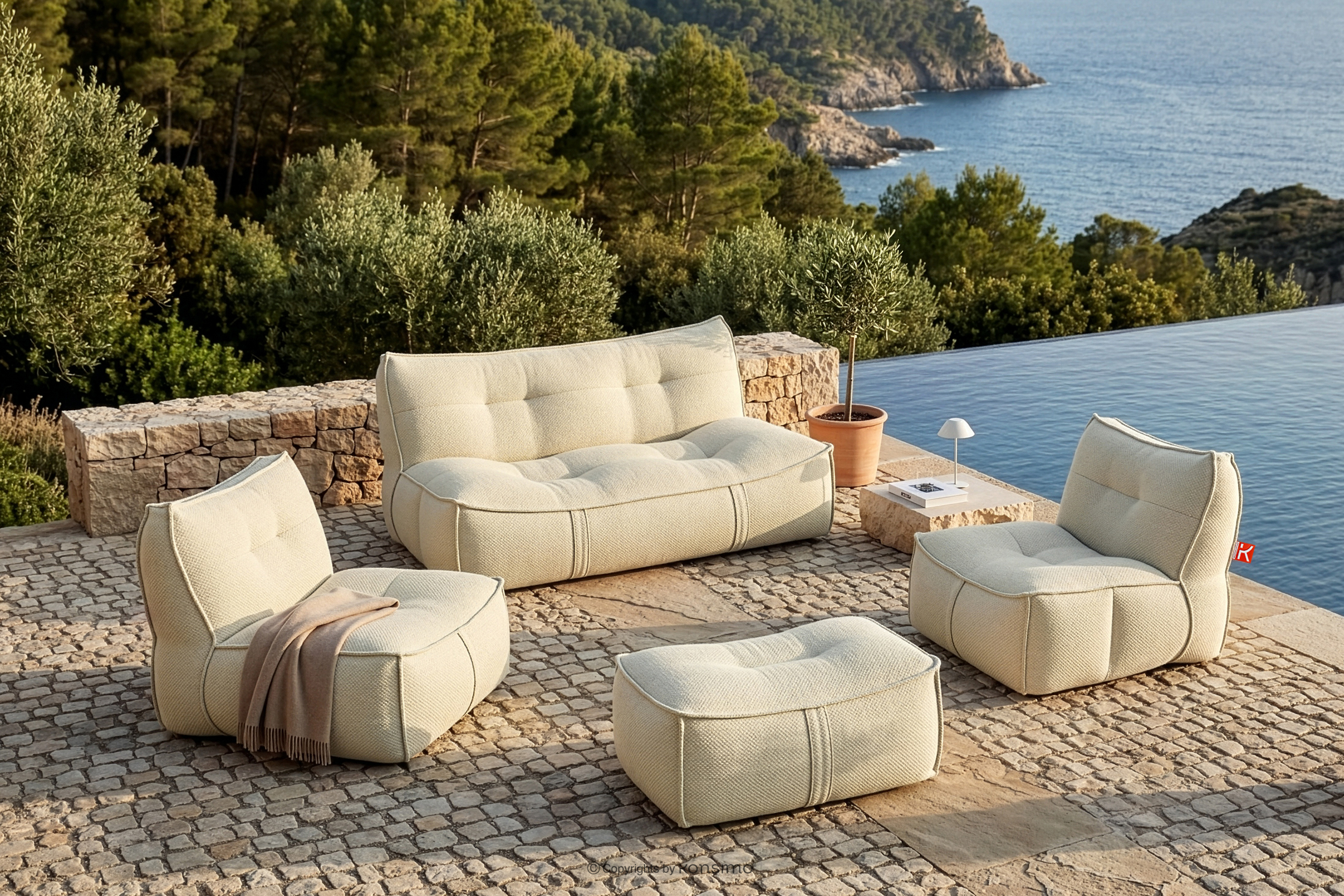 Vergessen Sie Ihre Bedenken hinsichtlich der Verwendung im Freien – der Stoff ist flüssigkeitsabweisend, sodass kleine Verschmutzungen leicht zu entfernen sind und verschüttete Getränke kein Problem mehr darstellen. Darüber hinaus garantiert die einfache Reinigung, dass er auch nach intensiver Nutzung immer makellos aussieht. Um die Hygiene und Ihre Gesundheit zu gewährleisten, wurde ein Material mit antibakteriellen Eigenschaften verwendet. Dank seiner Witterungsbeständigkeit können Sie sicher sein, dass das Material seine Eigenschaften und Ästhetik unter dem Einfluss von Sonne, Regen oder anderen äußeren Einflüssen nicht verliert und auch den Zigaretten-Test erfolgreich bestanden hat. Die weiche Sitzfläche lädt zum Entspannen ein, passt sich Ihrer Körperform an und bietet unvergleichlichen Komfort. Jedes Detail wurde durchdacht, um Ihnen Seelenfrieden und viele Jahre problemlosen Gebrauch zu garantieren. Damit ist die Kollektion LOVIA der ideale Ort zum Entspannen auf der Terrasse, im Garten oder auf dem Balkon, und das Design in Verbindung mit der Funktionalität setzt neue Maßstäbe in der luxuriösen Außenausstattung.