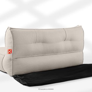 - Zusätzliche Informationen: Außenbezug aus wasserabweisendem Stoff, in die Möbelstruktur eingenäht, nach innen versteckbar und mit Reißverschluss verschließbar, Eingenähter Gummizug in der Hülle verhindert ein Verrutschen vom Möbelstück, Griff aus Polsterband zum leichteren Tragen, Unterseite des Möbelstücks aus rutschfestem Stoff