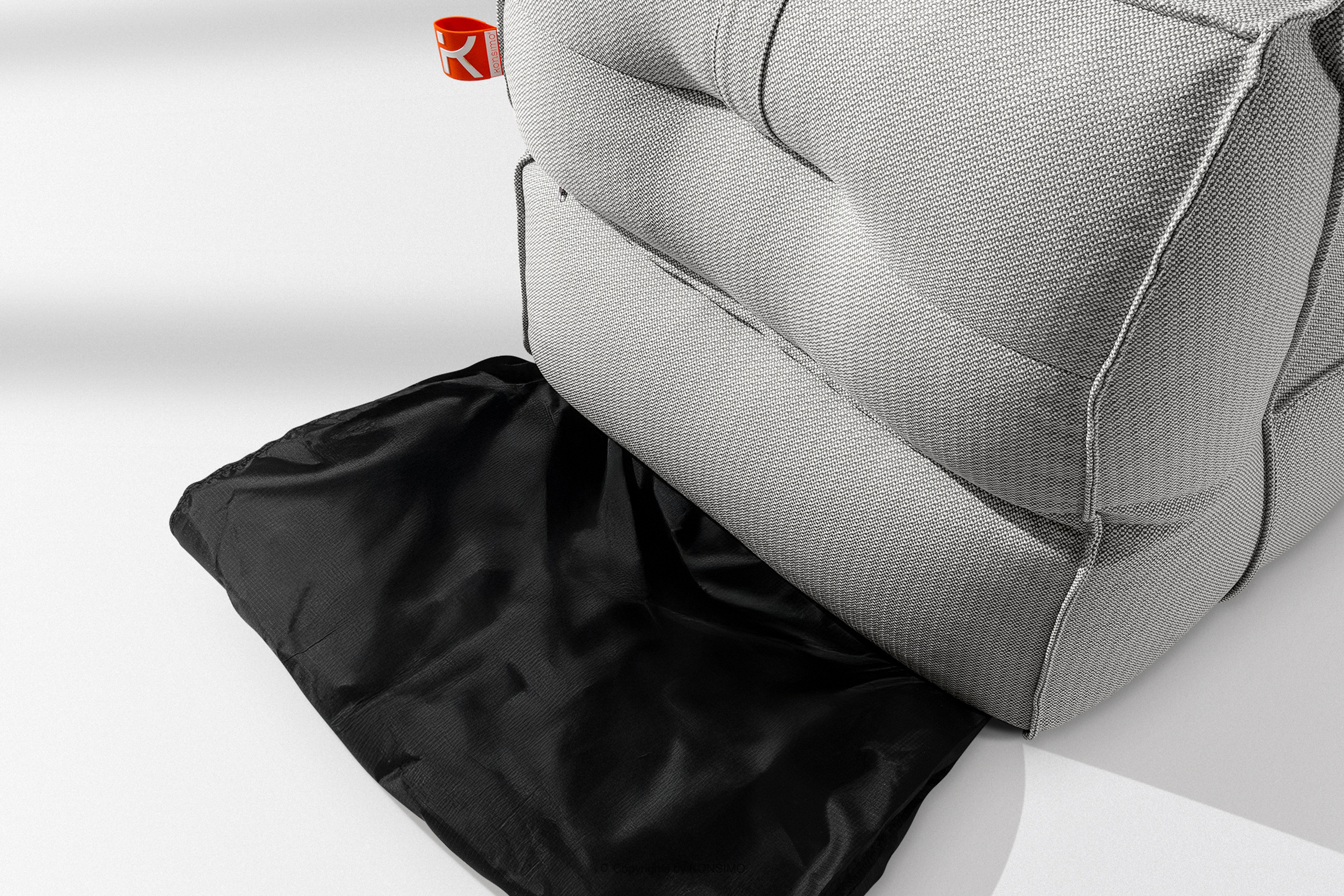 - Zusätzliche Informationen: Außenbezug aus wasserabweisendem Stoff, in die Möbelstruktur eingenäht, nach innen versteckbar und mit Reißverschluss verschließbar, Eingenähter Gummizug in der Hülle verhindert ein Verrutschen vom Möbelstück, Griff aus Polsterband zum leichteren Tragen, Unterseite des Möbelstücks aus rutschfestem Stoff