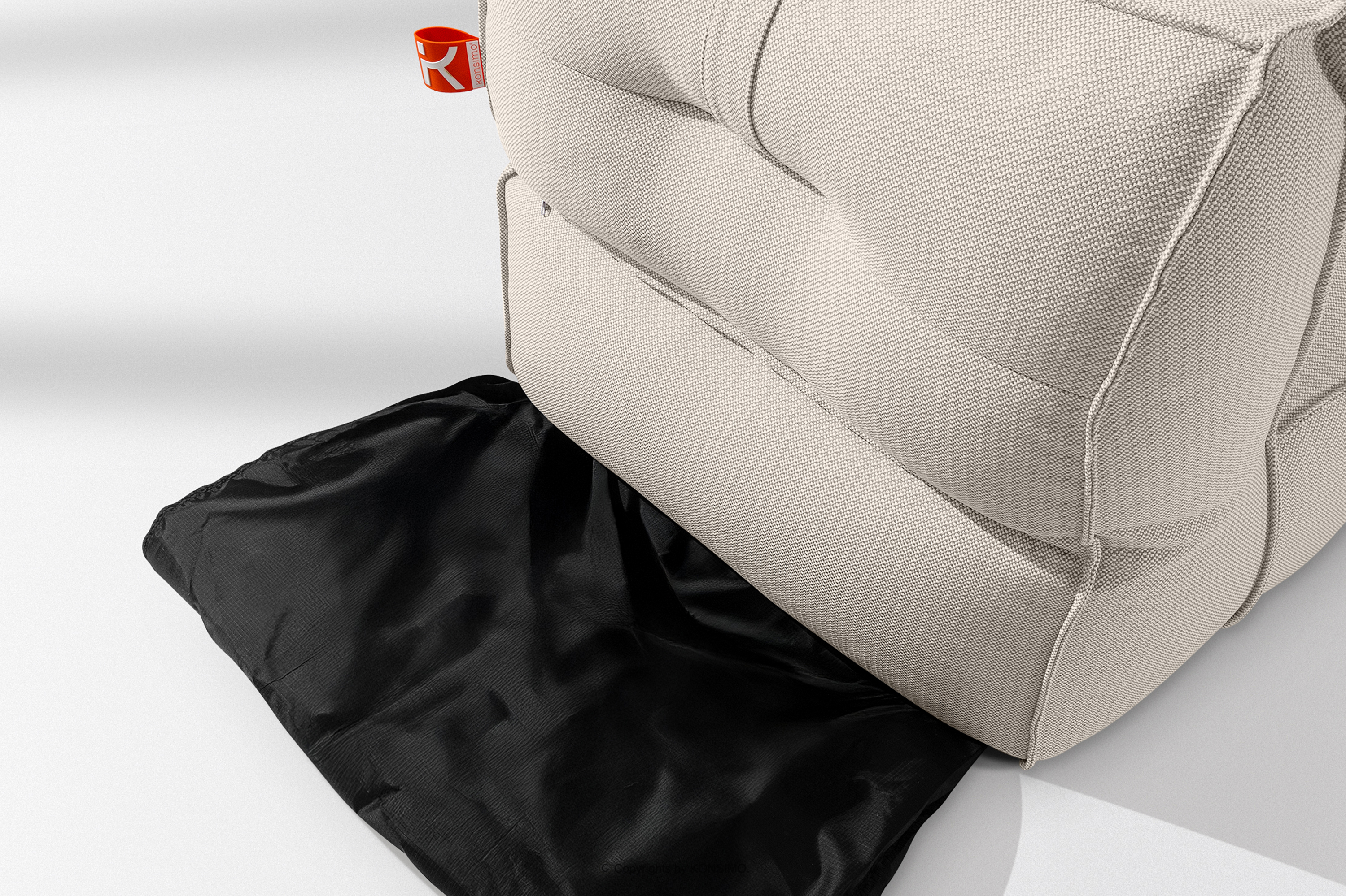 - Zusätzliche Informationen: Außenbezug aus wasserabweisendem Stoff, in die Möbelstruktur eingenäht, nach innen versteckbar und mit Reißverschluss verschließbar, Eingenähter Gummizug in der Hülle verhindert ein Verrutschen vom Möbelstück, Griff aus Polsterband zum leichteren Tragen, Unterseite des Möbelstücks aus rutschfestem Stoff