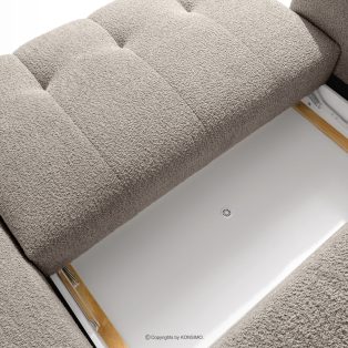 Das innovative DL-Federsystem sorgt für eine außergewöhnliche Haltbarkeit und Elastizität des Sitzes. Durch die Verwendung einer Wellenunterfederung vom Typ B in Kombination mit 14 cm dickem HR-Schaumstoff 30/120 garantiert das Möbelstück eine gleichmäßige Liegequalität.Ob Sie einen Platz für ein Nickerchen am Nachmittag, einen Filmabend oder Treffen mit Freunden suchen, dieses Ecksofa bietet Platz, der zum Entspannen einlädt. Die Verwendung hochwertiger Materialien garantiert, dass das Möbelstück über viele Jahre hinweg sein makelloses Aussehen behält und zum Mittelpunkt jedes Wohnzimmers wird.