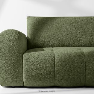 Ecksofa im Japandi-Stil aus Bouclé in Oliv, rechts verleiht dem Interieur einen Hauch von Luxus und Gemütlichkeit. Die einzigartige Struktur des Stoffes schafft subtile Muster, die wunderschön mit dem natürlichen Licht harmonieren und dem Möbelstück Tiefe und Charakter verleihen. Dieses Ecksofa ist mit einem luxuriösen Bouclé-Stoff bezogen und besticht durch seine Weichheit und seine angenehme Haptik.