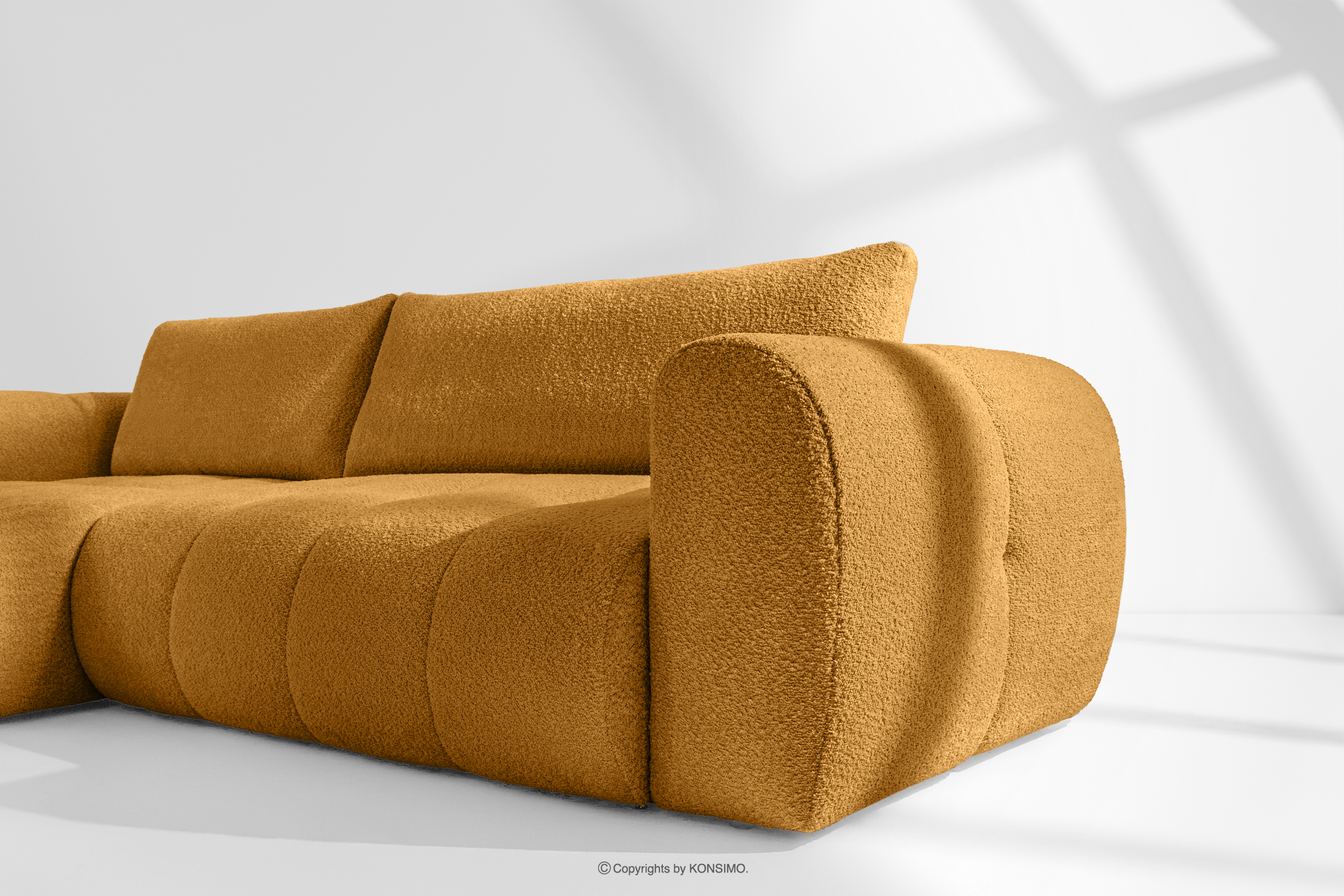 für das Produkt Ecksofa Boucle im Japandi-Stil honigfarben links