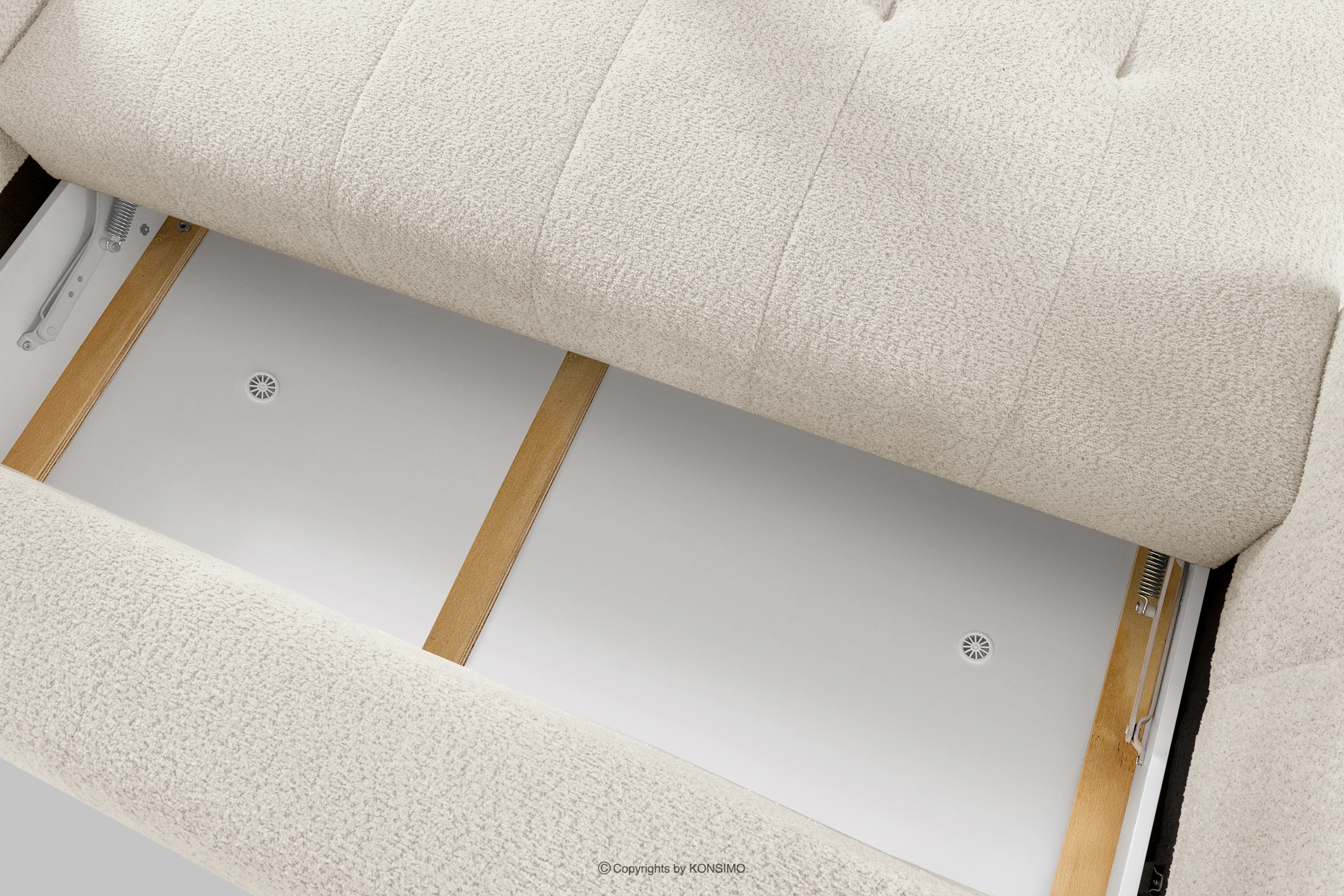 Das innovative DL-Federsystem sorgt für außergewöhnliche Haltbarkeit und Elastizität der Sitzfläche. Dank der Verwendung von Wellenunterfederung vom Typ B in Kombination mit 14 cm HR 30/120 Schaumstoff garantiert das Möbelstück eine gleichmäßige Schlafqualität. Ganz gleich, ob Sie einen Platz für ein Mittagsschläfchen, einen Filmabend oder Treffen mit Freunden suchen, die LIRA-Polstermöbel bieten einen Raum, der zum Entspannen einlädt. Die Verwendung hochwertigster Materialien garantiert, dass das Möbelstück über viele Jahre hinweg sein makelloses Aussehen behält und zum Mittelpunkt jedes Wohnzimmers wird.