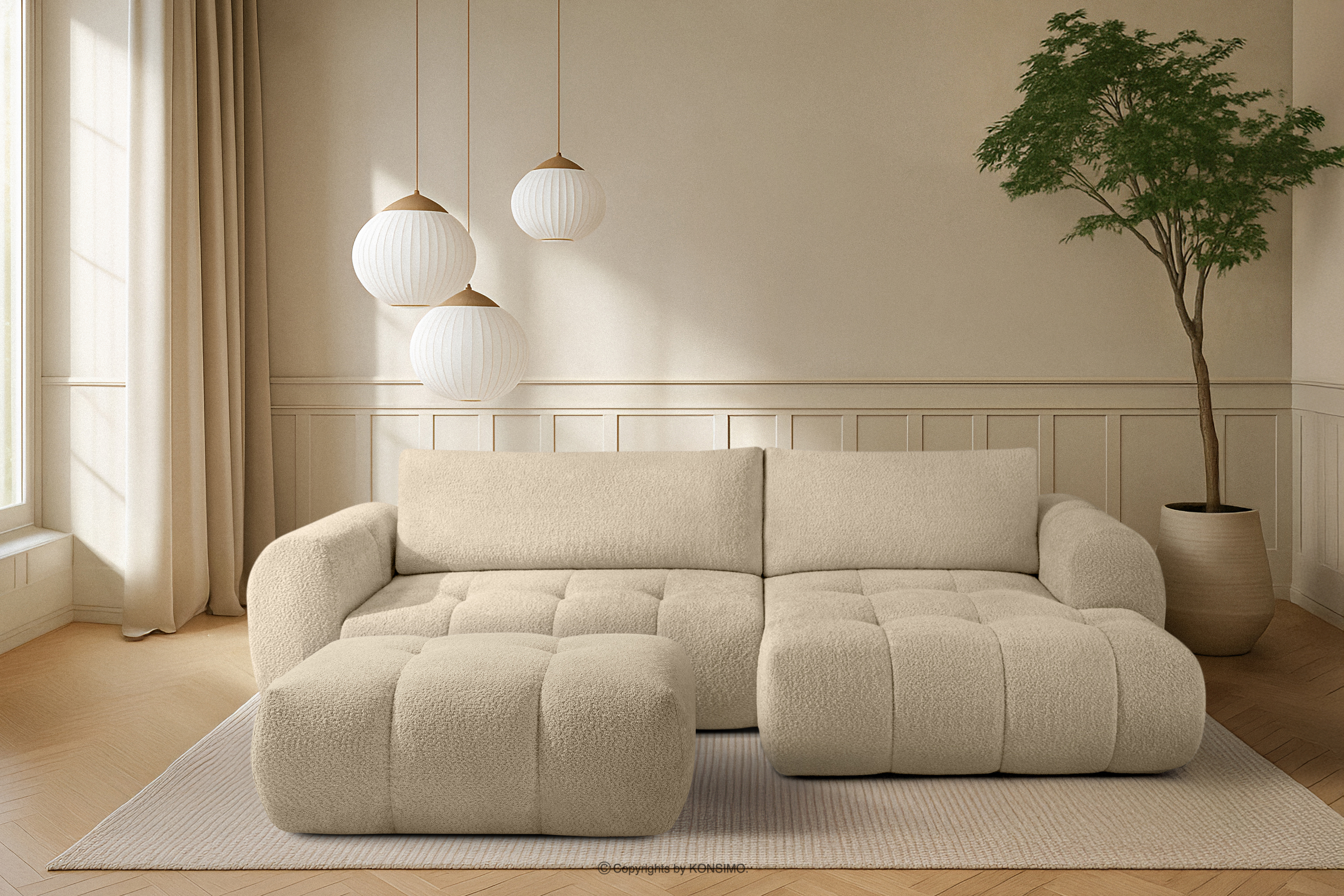 LIRA Mehr aus der Kollektion Narożnik prawy i puf w tkaninie boucle jasny beżowy- Farbe hellbeige