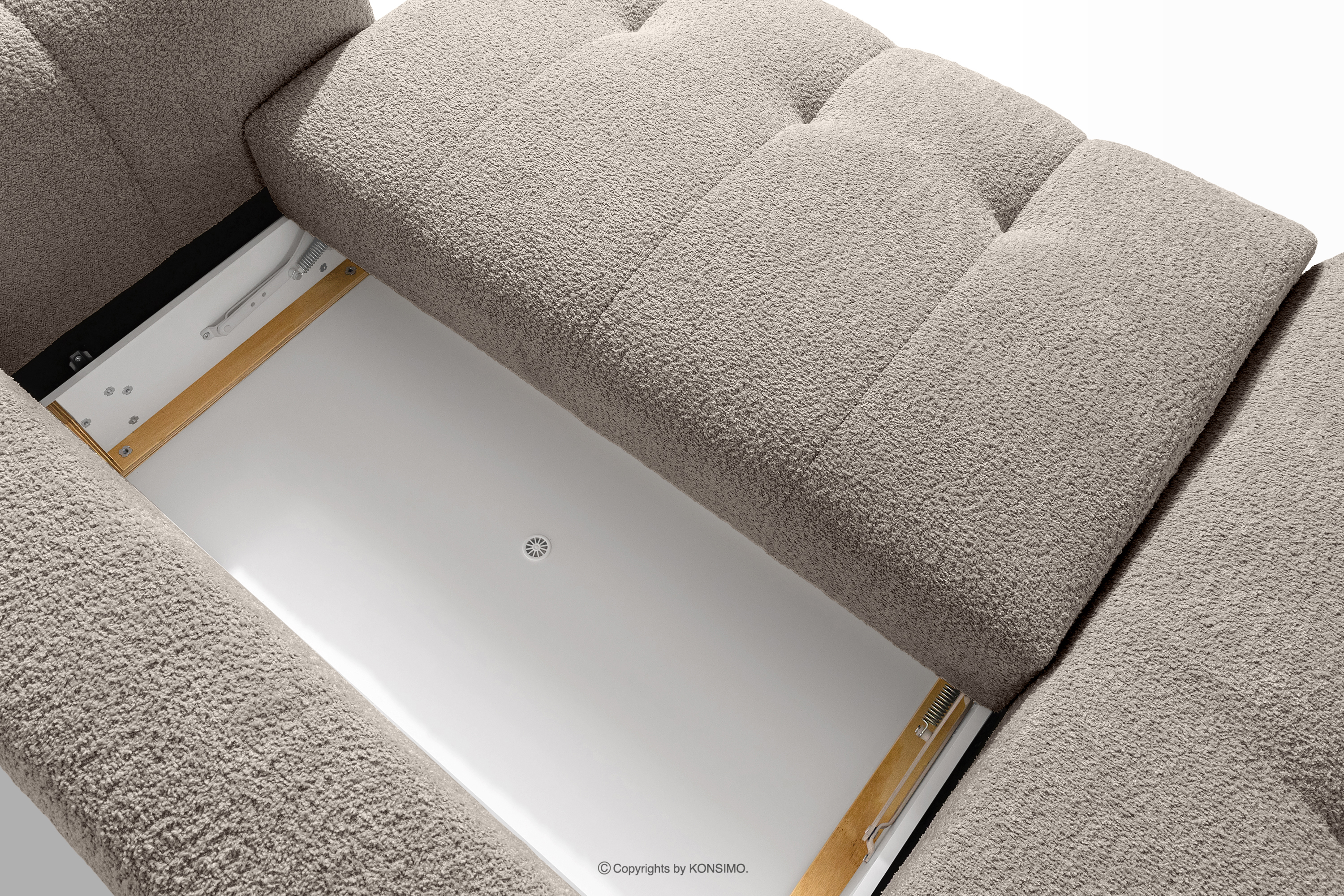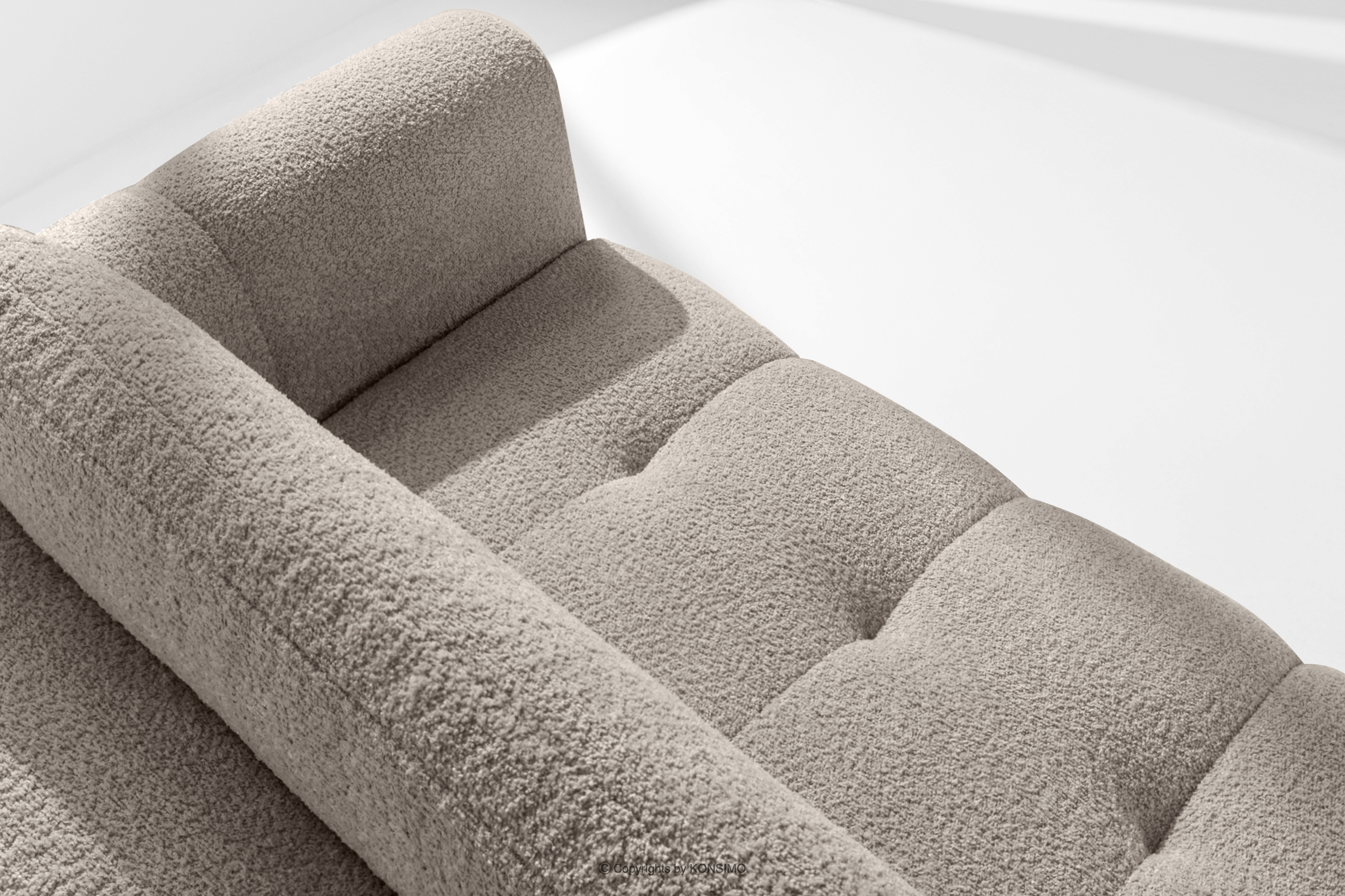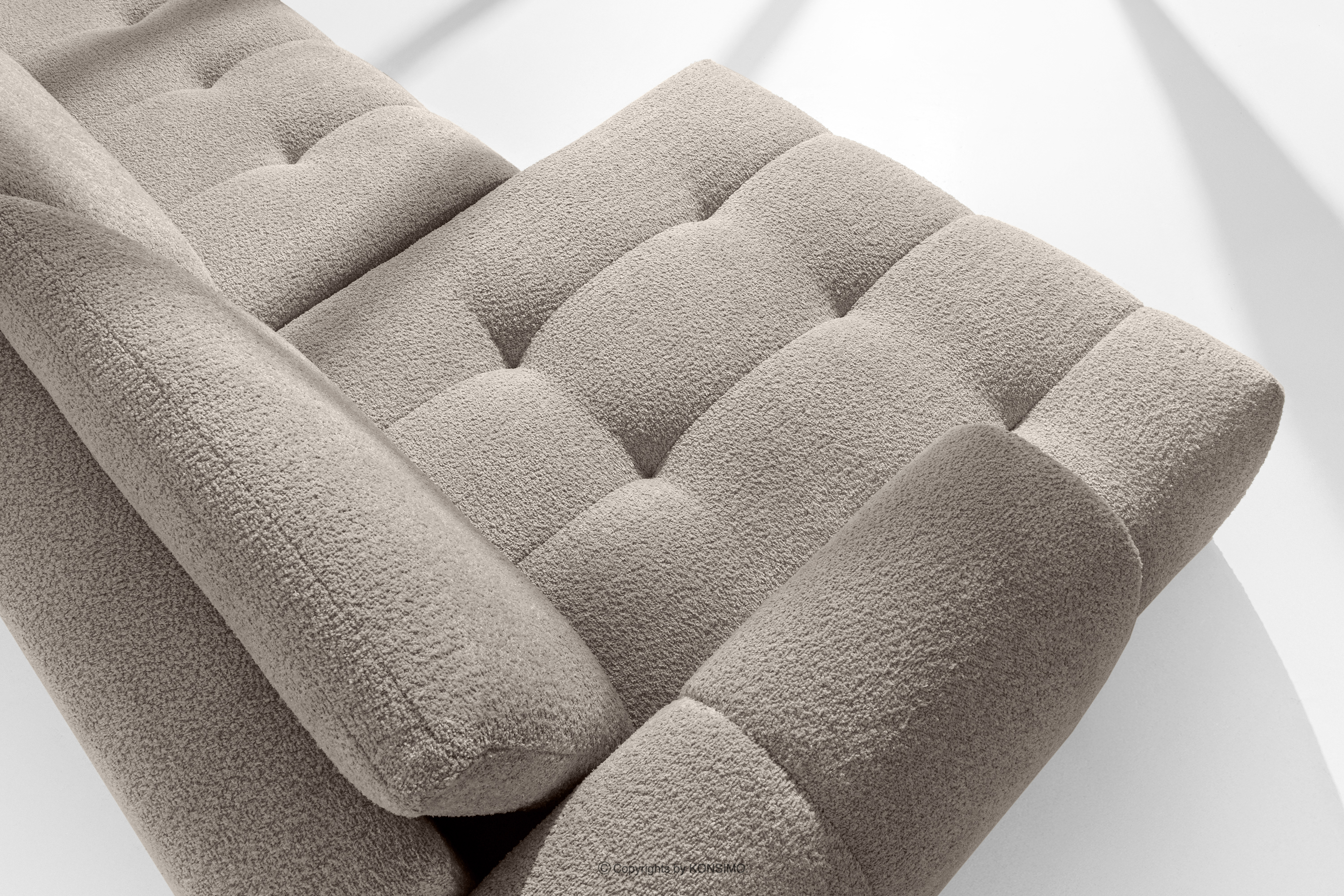 für das Produkt Narożnik prawy i puf w tkaninie boucle szary