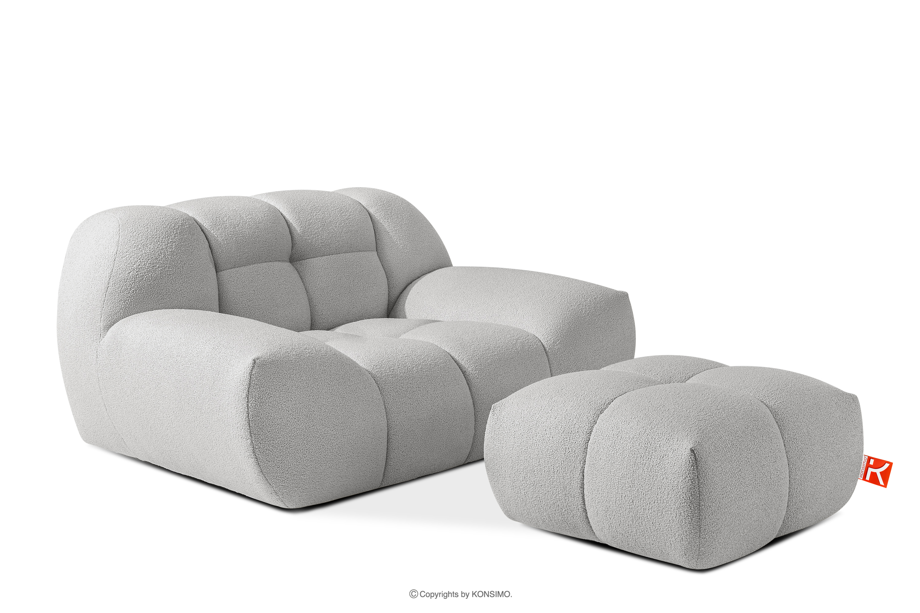 Gesteppter Sitzhocker im modernen Stil hellgrau es handelt sich nicht nur um Möbel, sondern um eine Manifestation von Stil, Komfort und Innovation, die für die anspruchsvollsten Nutzer entwickelt wurde. Das auffälligste Merkmal ist die innovative „Bubble”-Form, die den Möbeln ein einzigartiges, weiches Aussehen verleiht. Diese einzigartige Silhouette ist kein Zufallsprodukt, sondern das Ergebnis einer speziellen, äußerst aufwendigen Technologie zum Formen und Zuschneiden des Schaumstoffs.