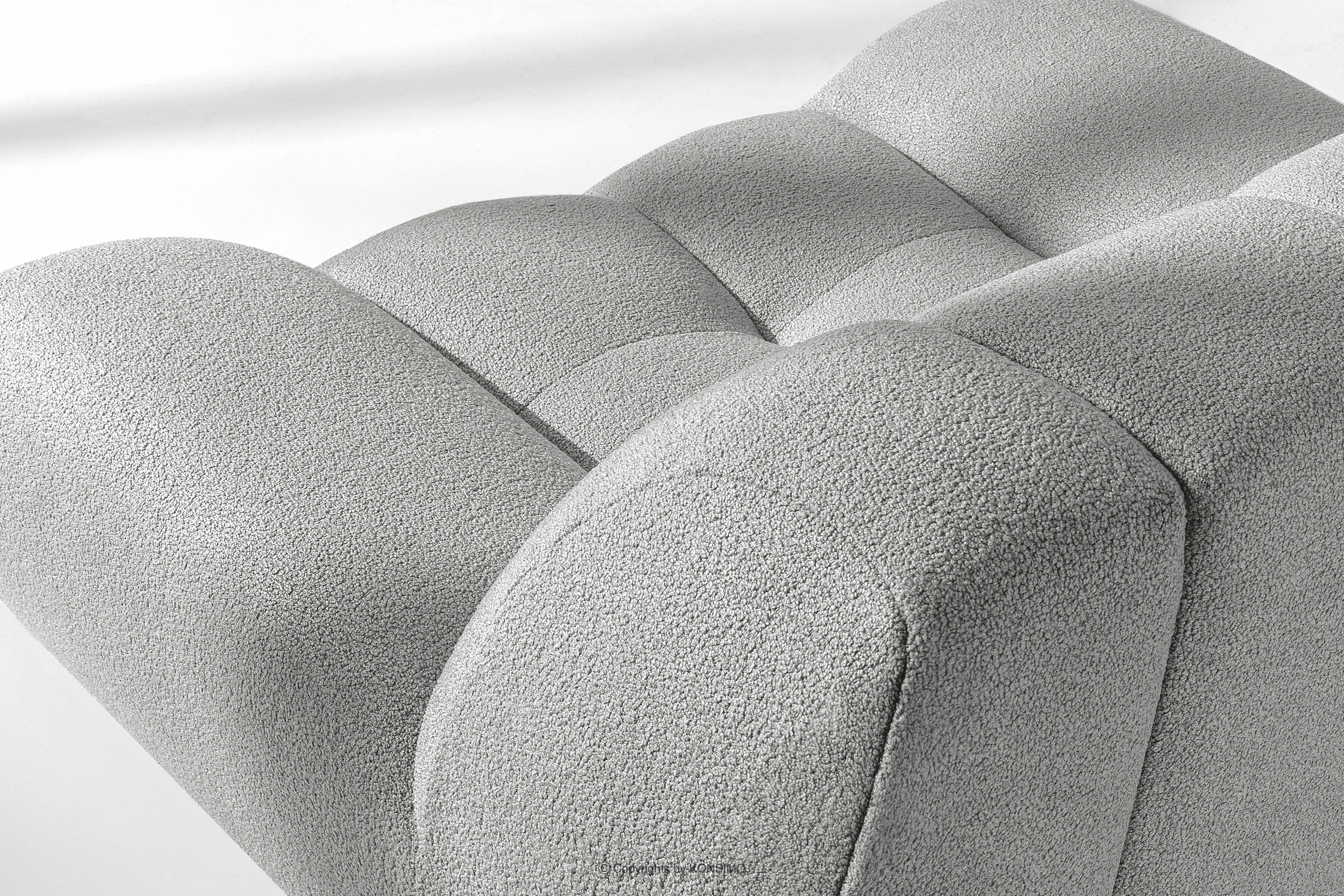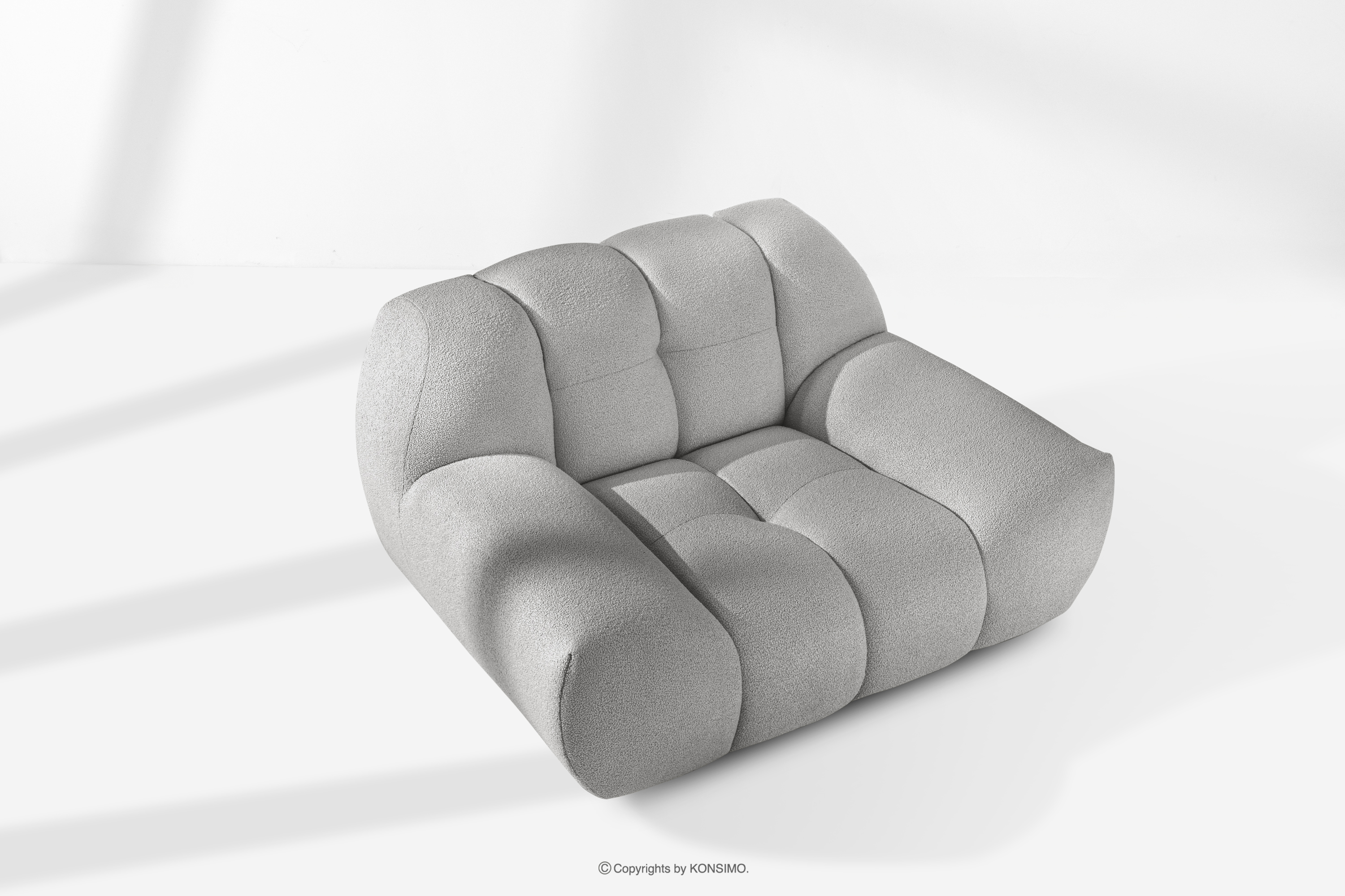 Gesteppter Sessel im modernen Stil hellgrau ist nicht nur Möbel, sondern eine Manifestation von Stil, Komfort und Innovation, die für die anspruchsvollsten Nutzer geschaffen wurde. Diese Kollektion fügt sich perfekt in die harmonische Ästhetik von Japandi ein und verwandelt jeden Innenraum in eine Oase der Ruhe und Raffinesse. Das auffälligste Merkmal ist die innovative „Bubble”-Form, die für einen einzigartigen, weichen Look sorgt.